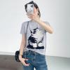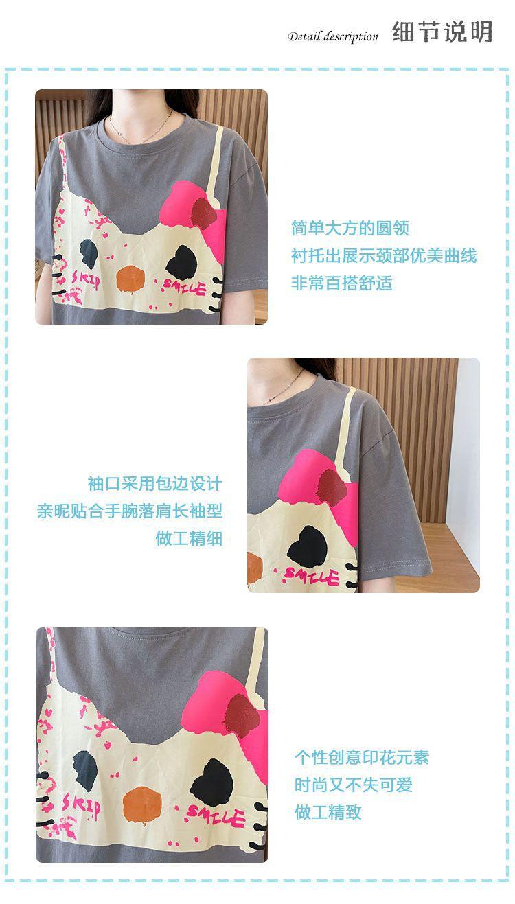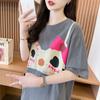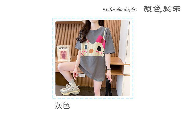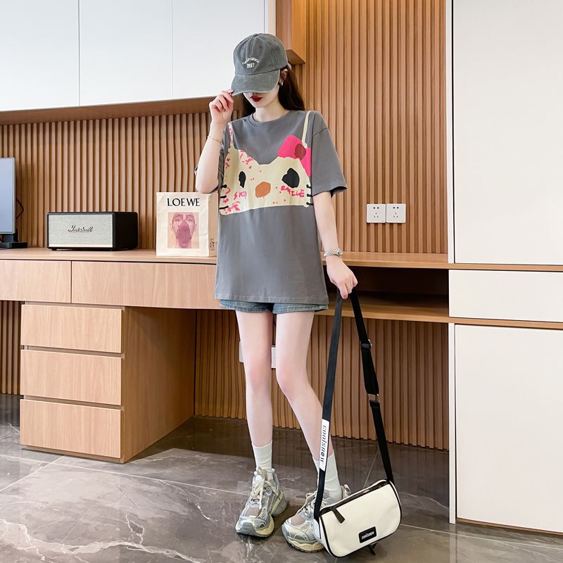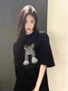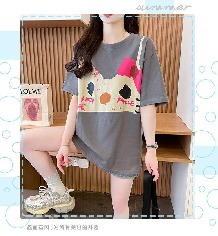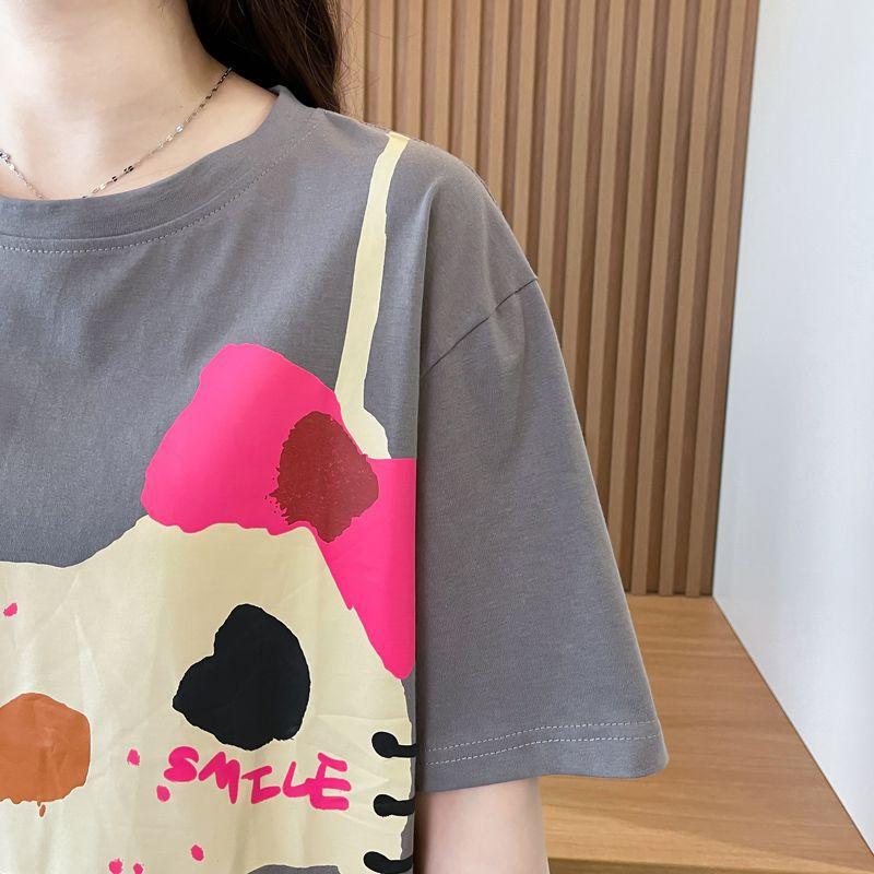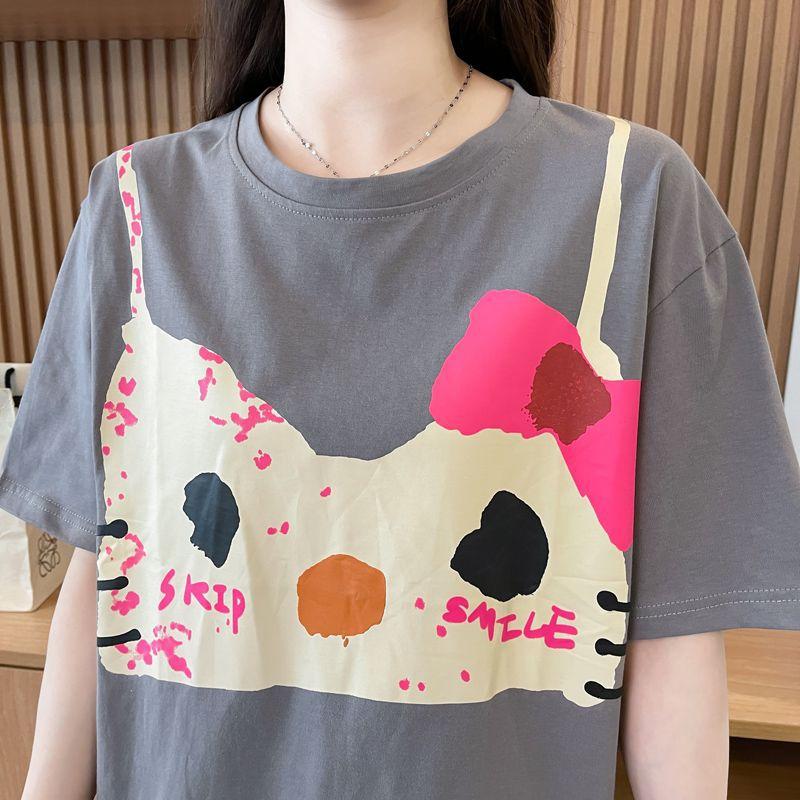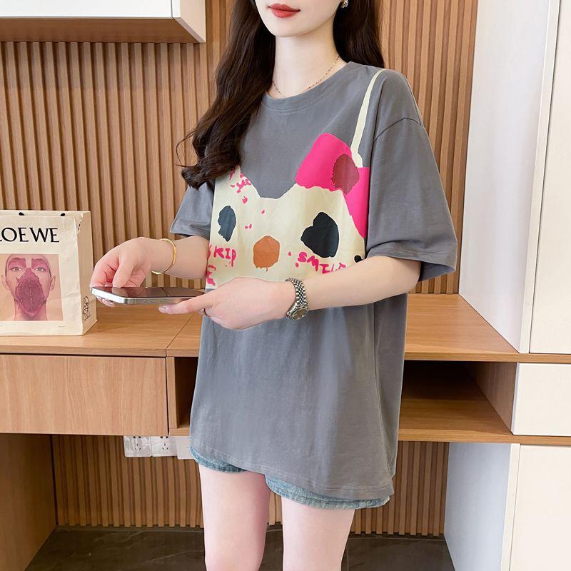 2025 Nuevo Estilo Verano Camiseta Estampado Gato Americano Diseño Celebridad de Internet Dibujo Animado Algodón Suelto Versátil Top de Manga Corta