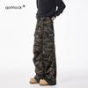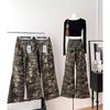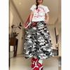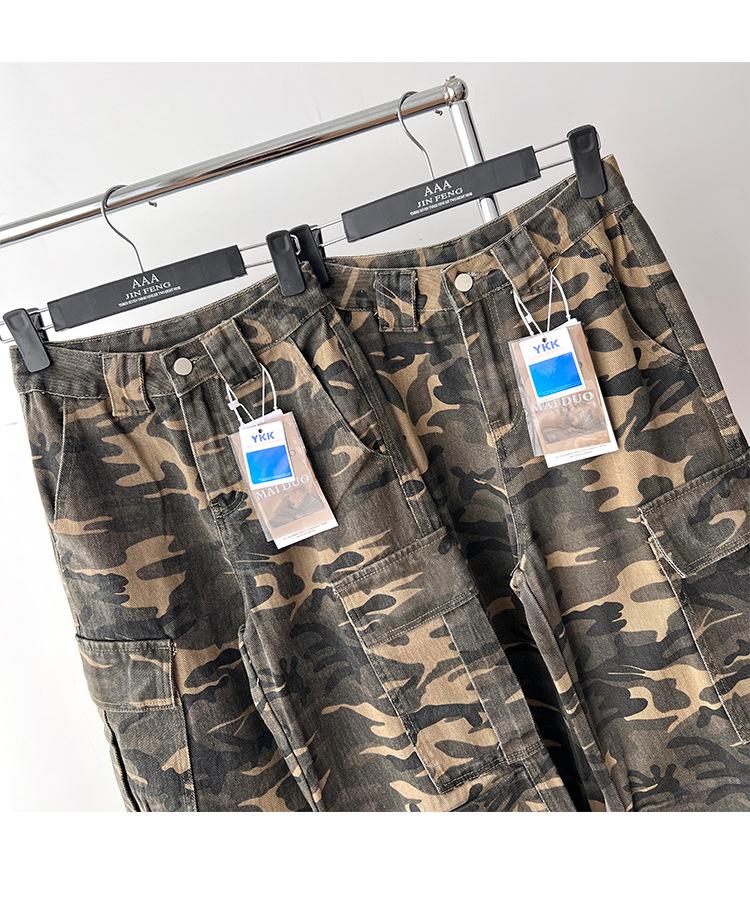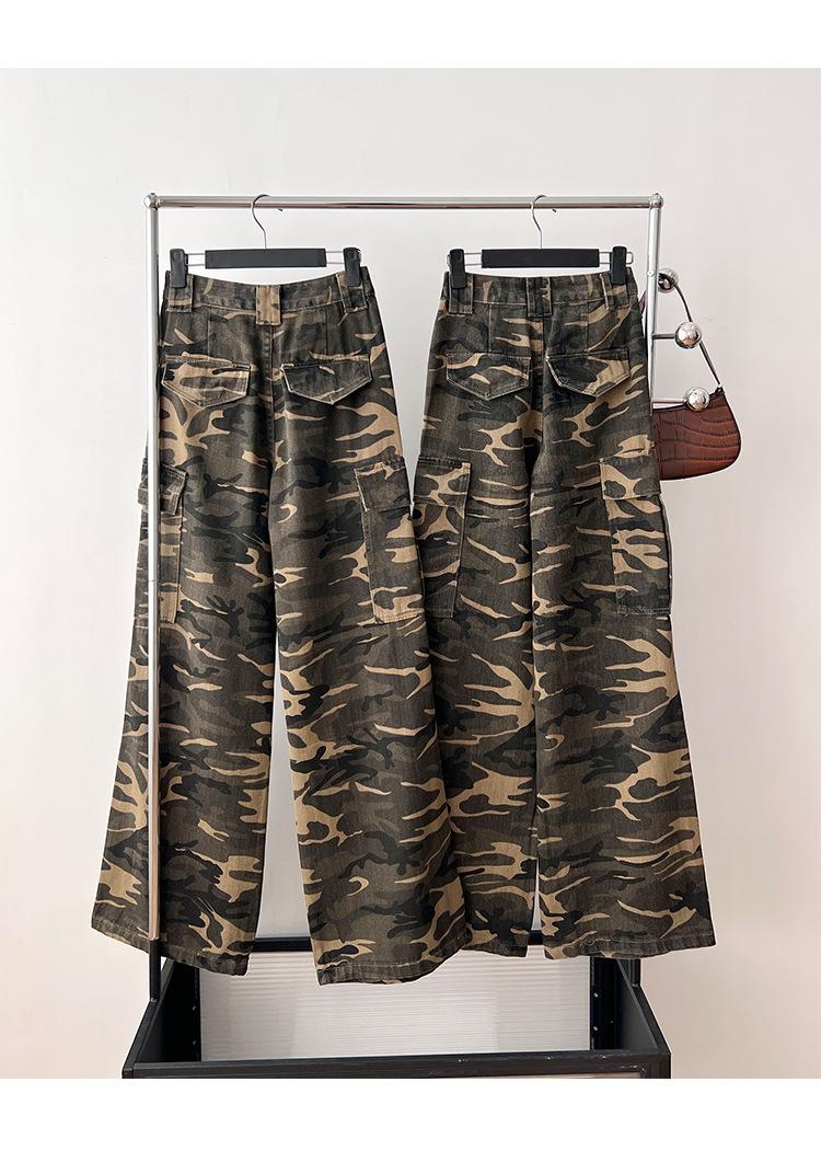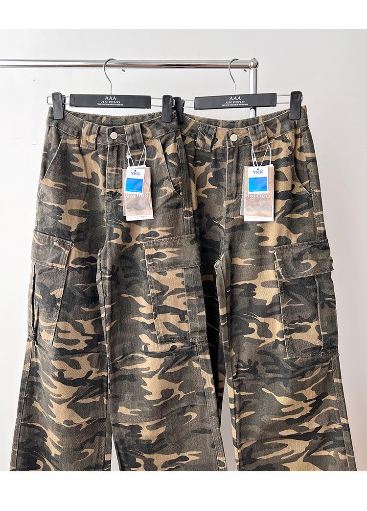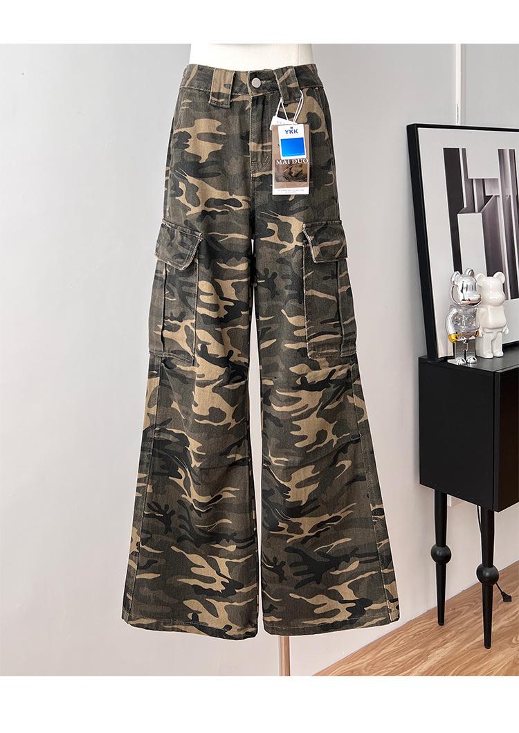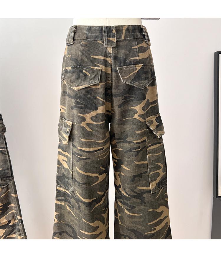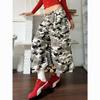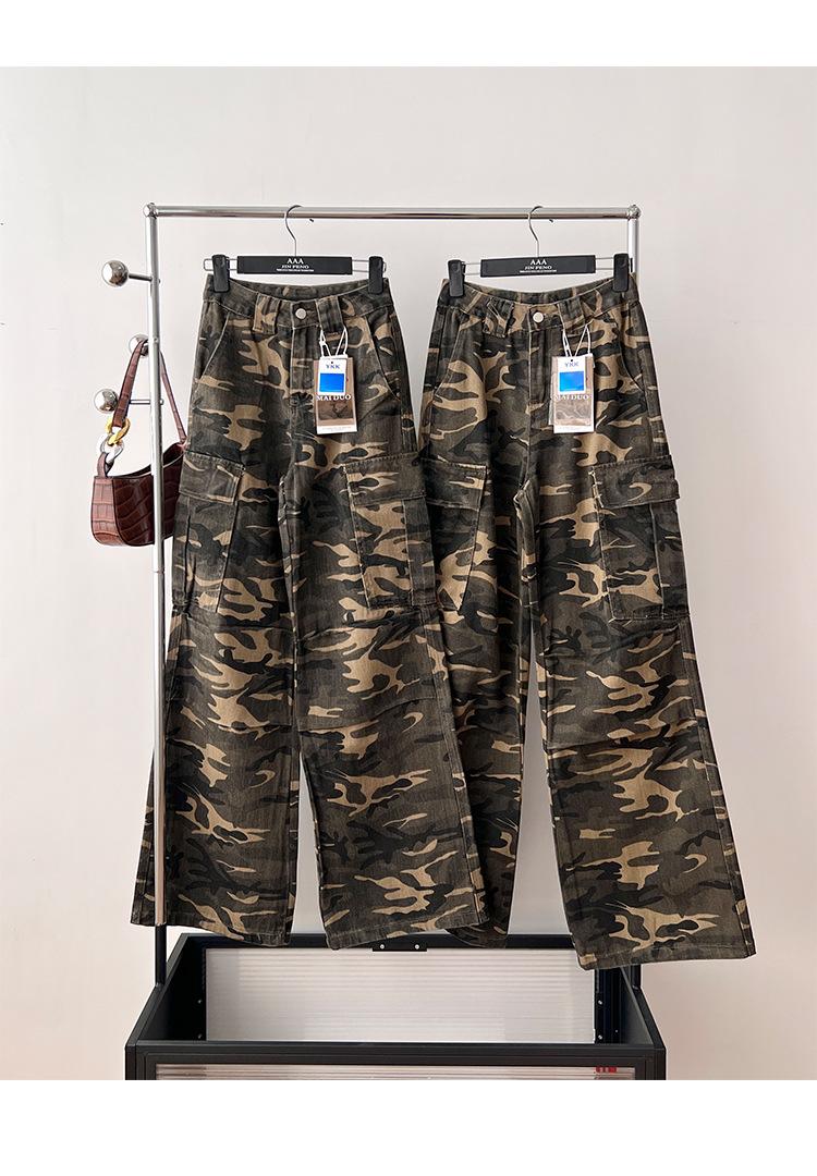 Pantalones Cargo Camuflaje de Diseño Lavado Retro Americano para Mujeres Altas, Pantalones Casuales de Pierna Recta Holgados Multibolsillo de Pierna Ancha