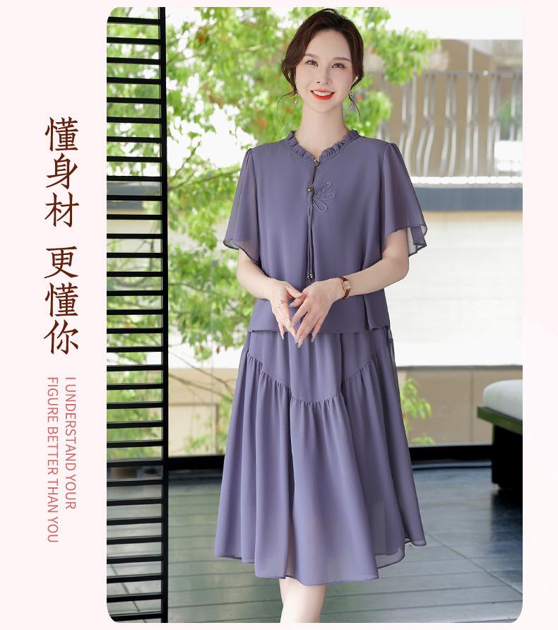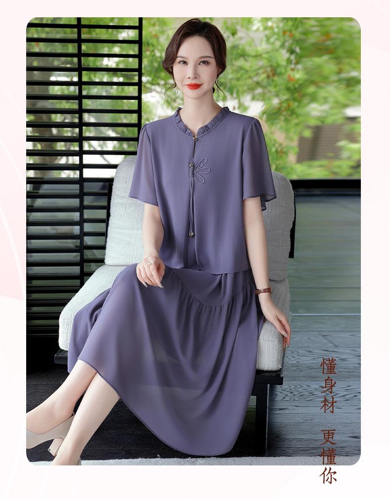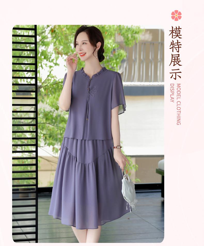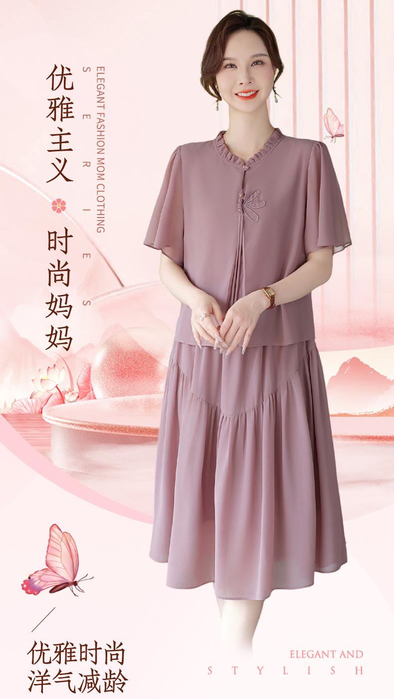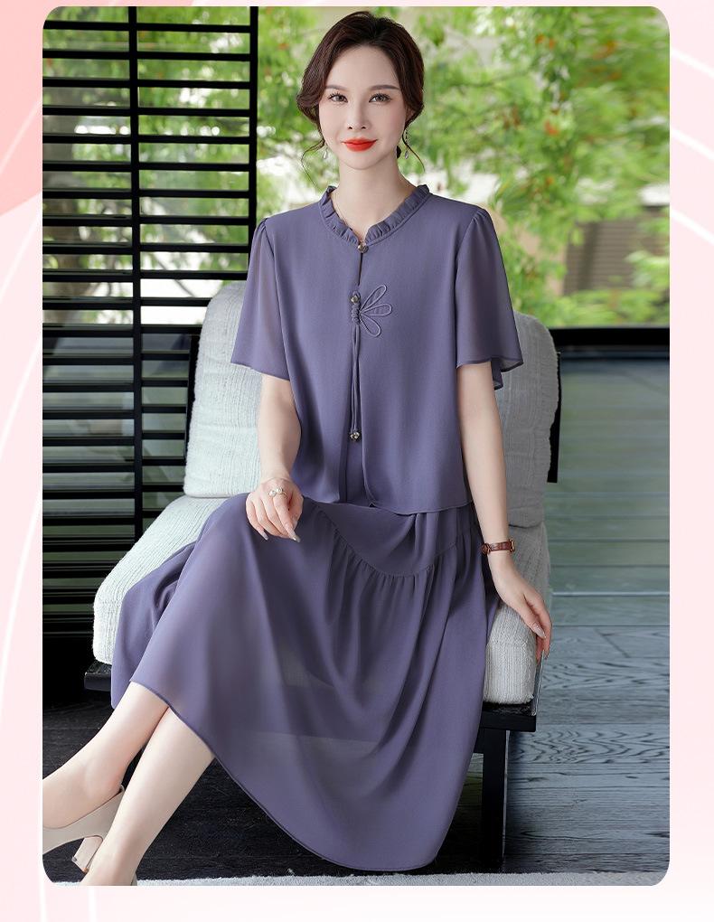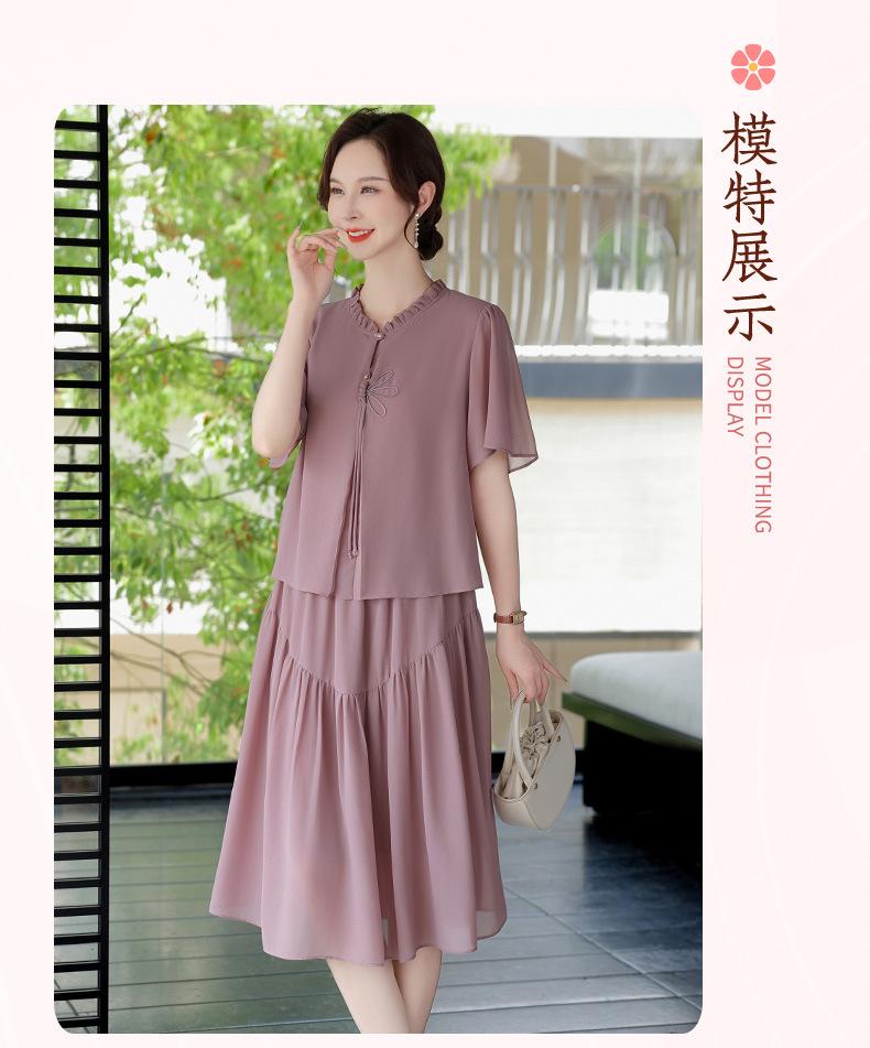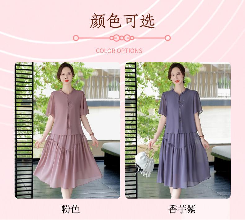 Traje de Verano para Mamá de Estilo Occidental Falda Nuevo Estilo Chino 2025 Nuevo Vestido de Gasa de Verano para Mujeres de Mediana Edad y Mayores