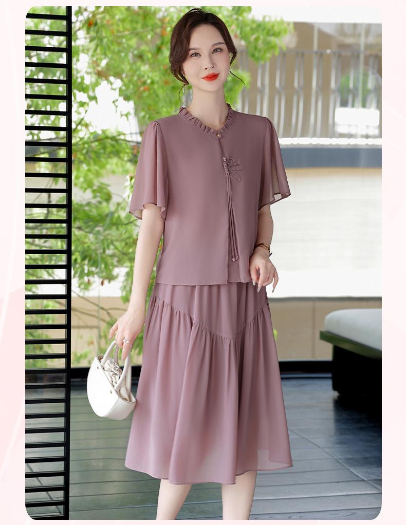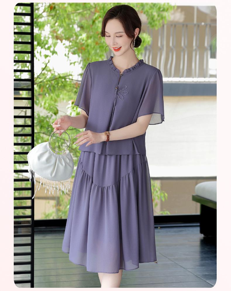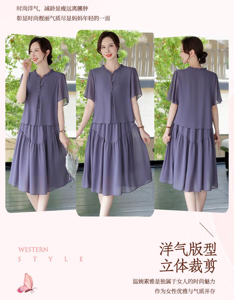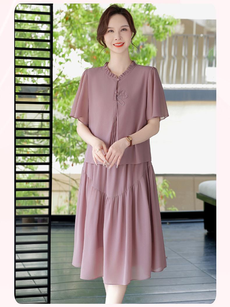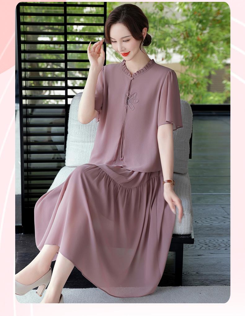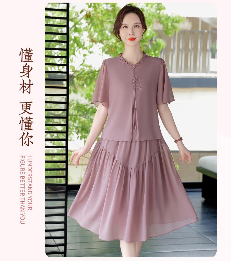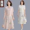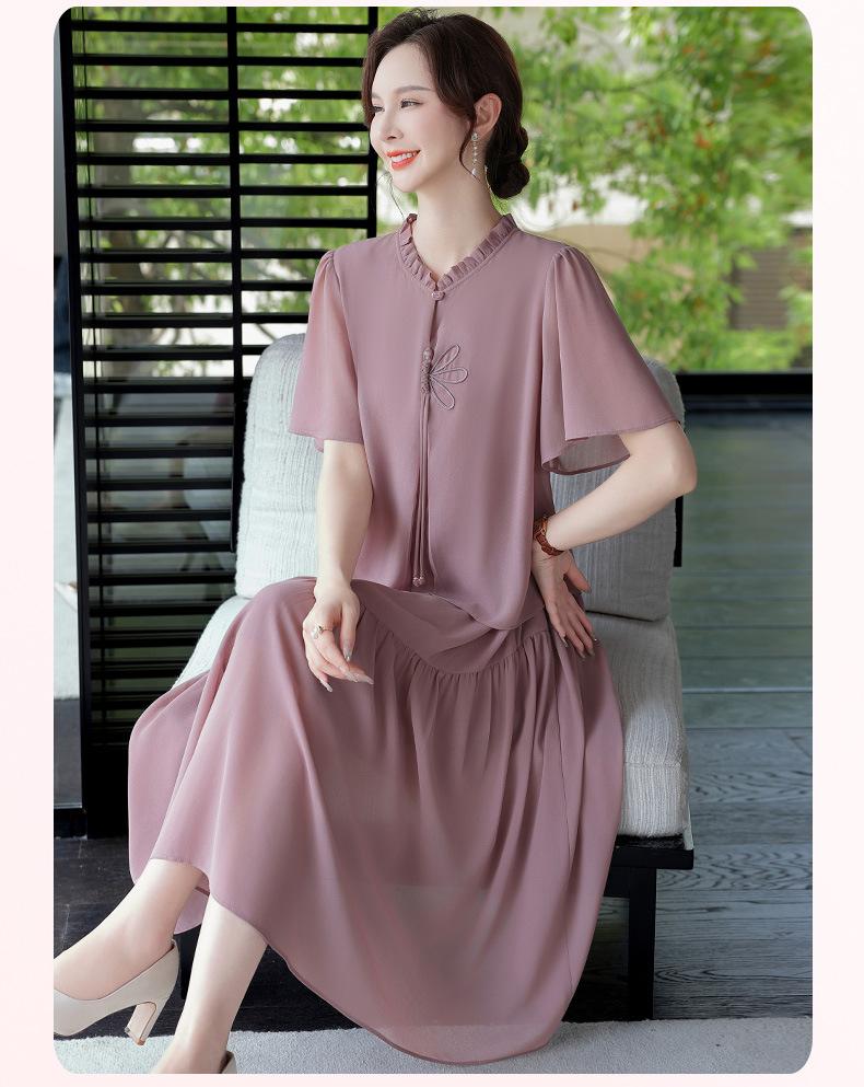 Traje de Verano para Mamá de Estilo Occidental Falda Nuevo Estilo Chino 2025 Nuevo Vestido de Gasa de Verano para Mujeres de Mediana Edad y Mayores