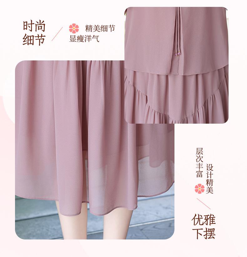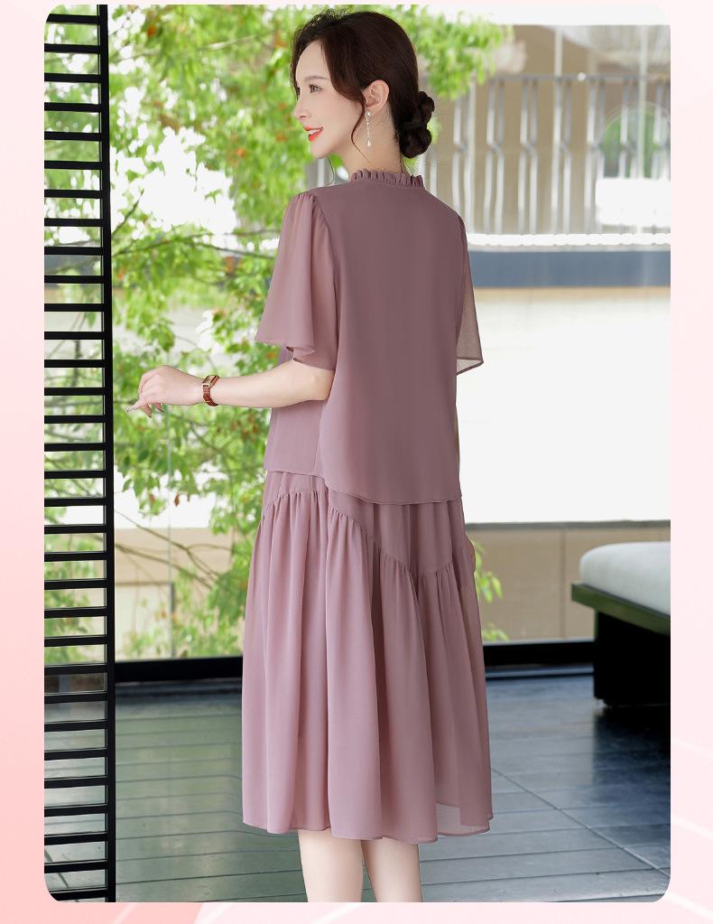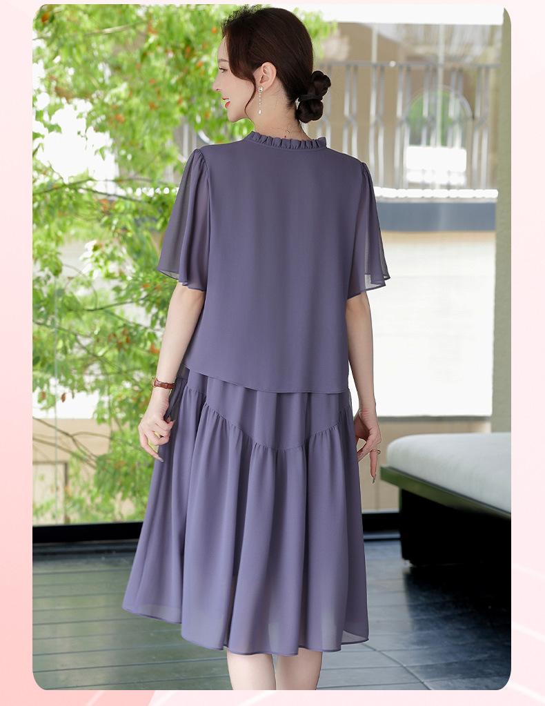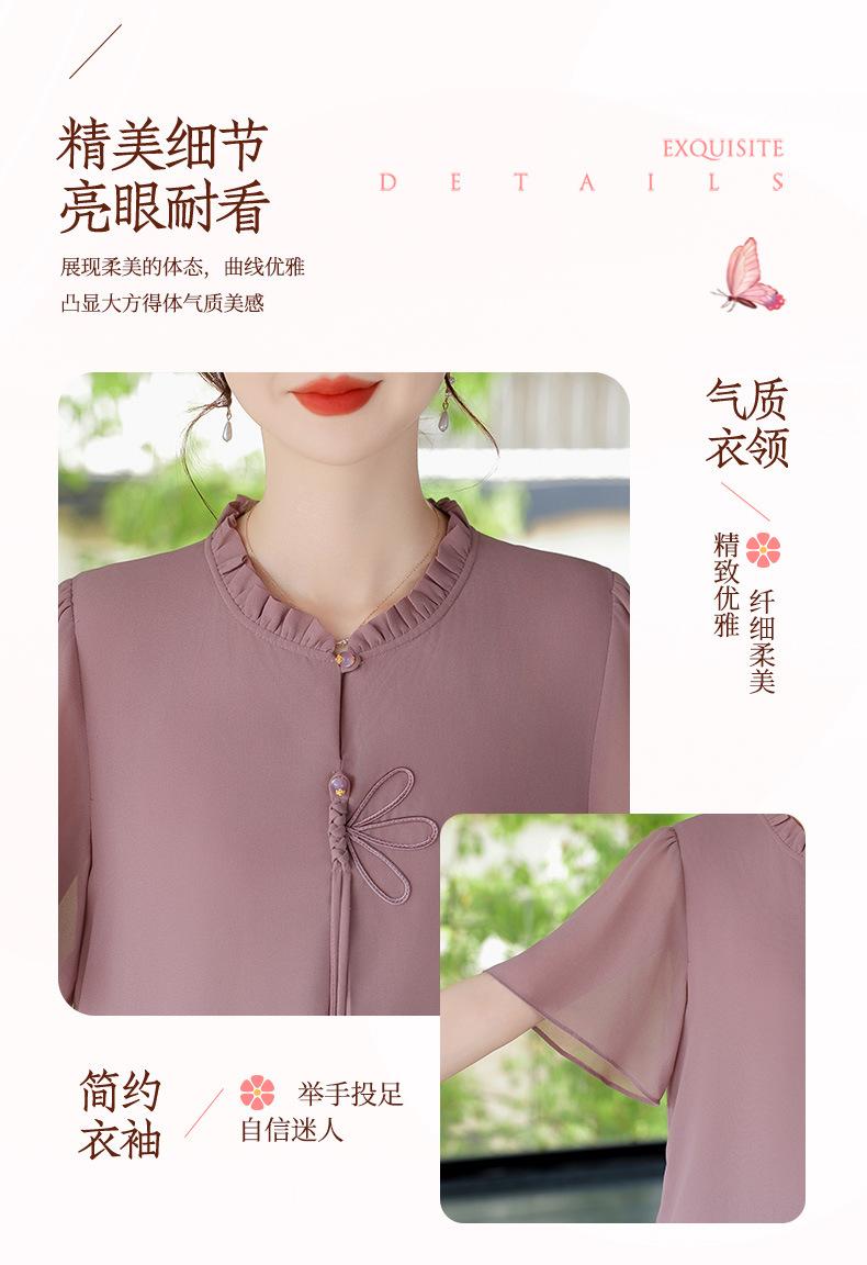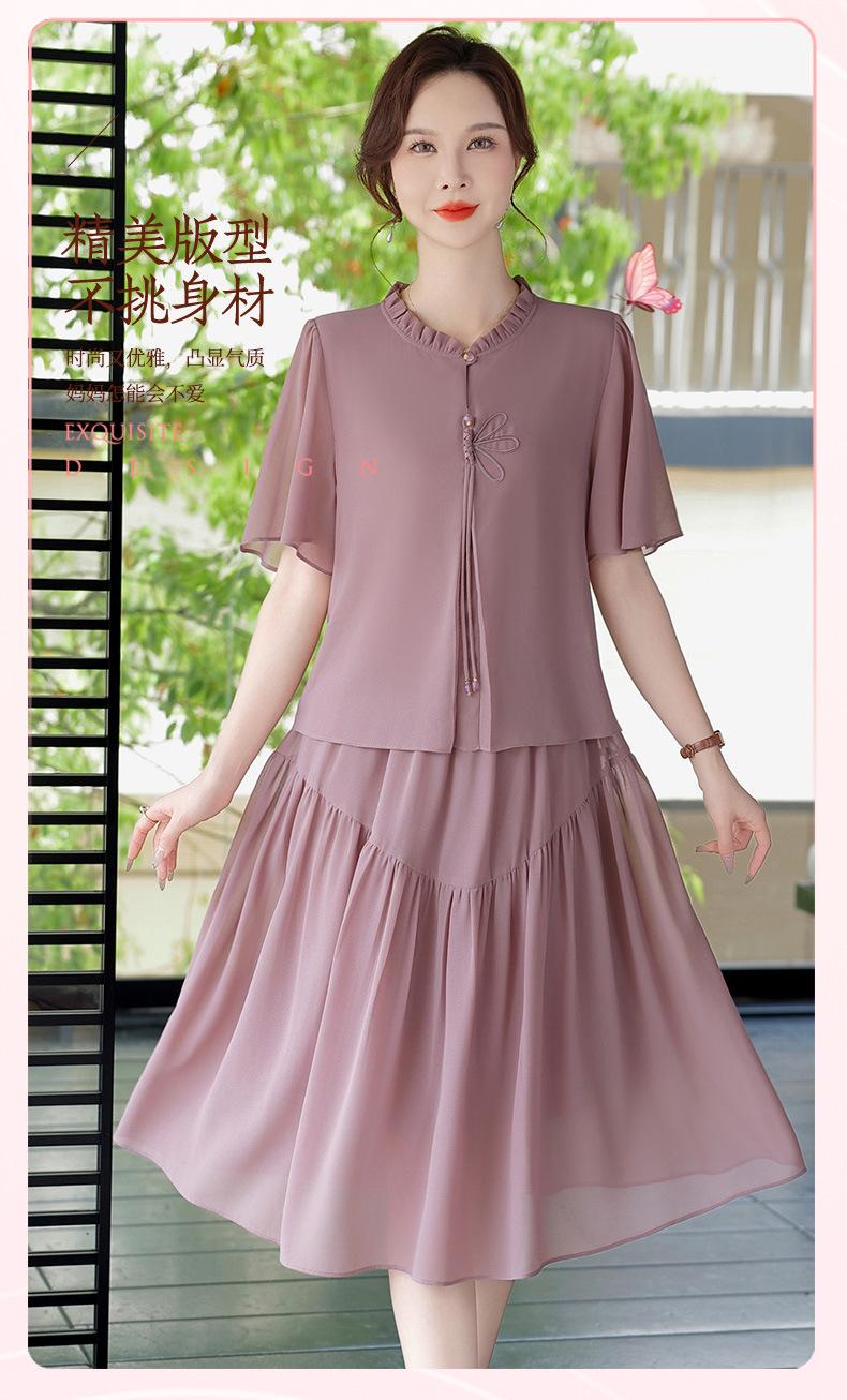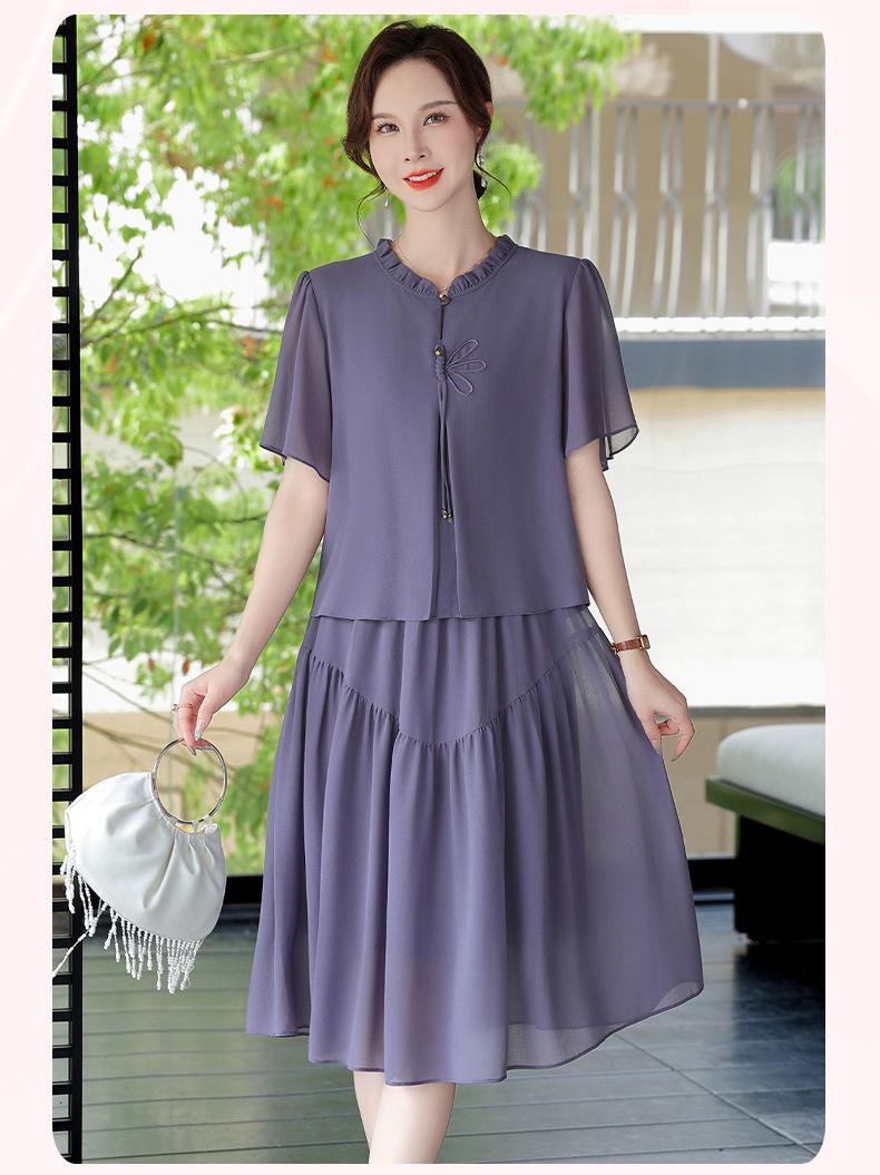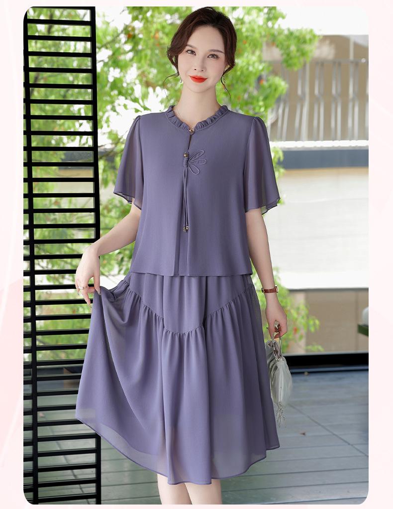 Traje de Verano para Mamá de Estilo Occidental Falda Nuevo Estilo Chino 2025 Nuevo Vestido de Gasa de Verano para Mujeres de Mediana Edad y Mayores