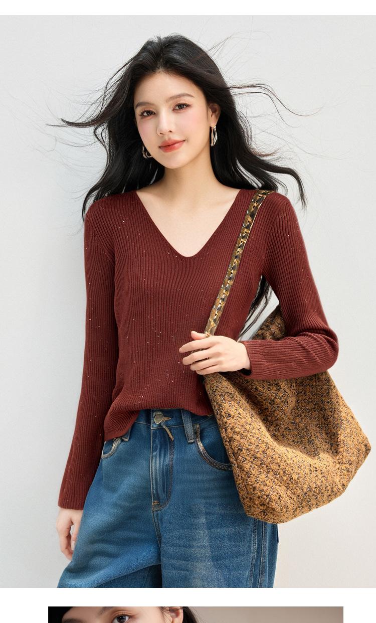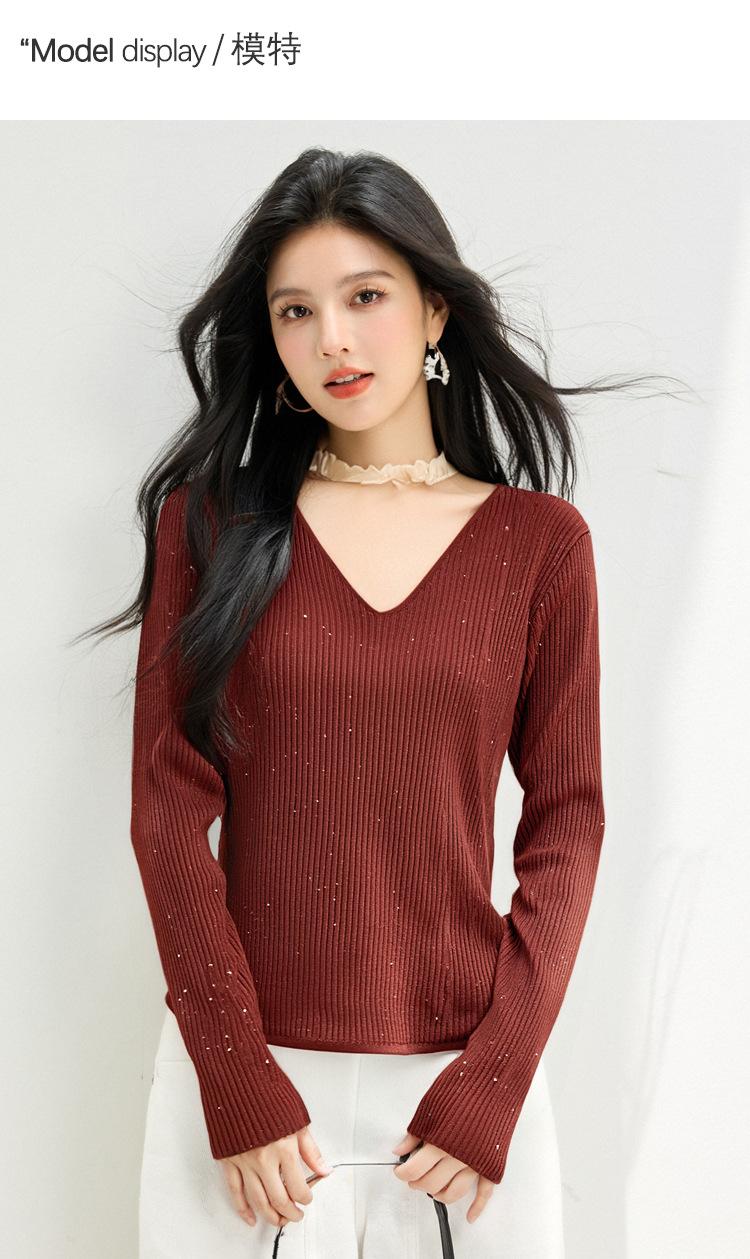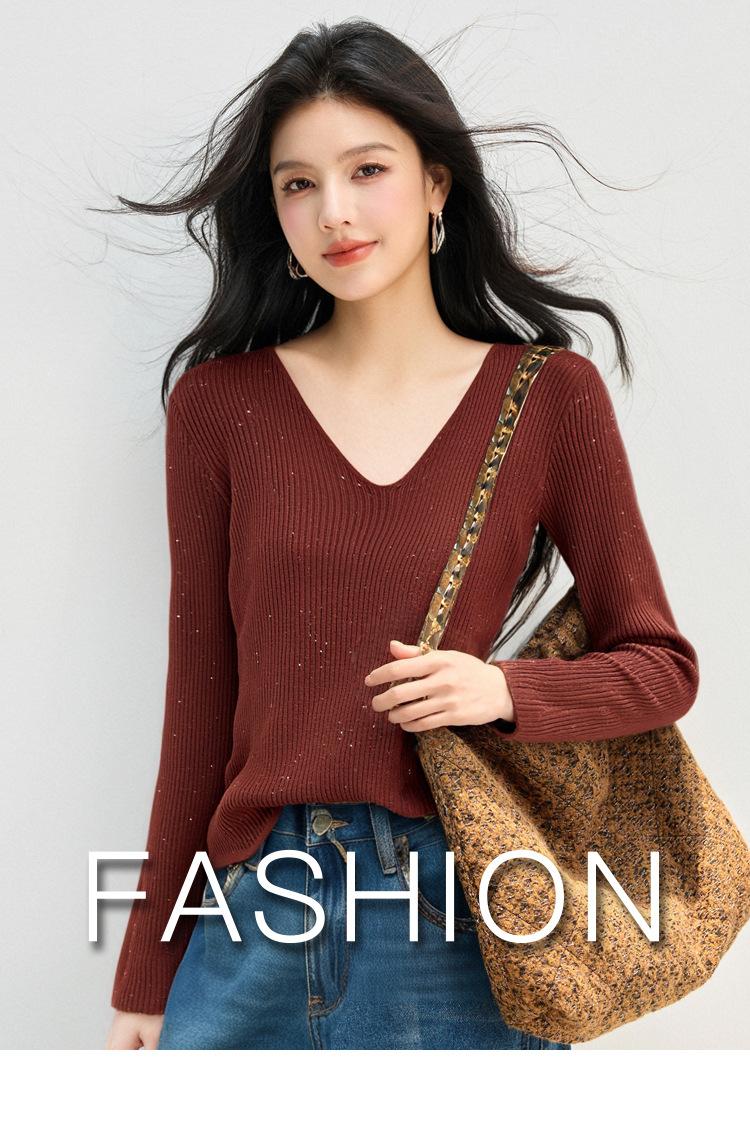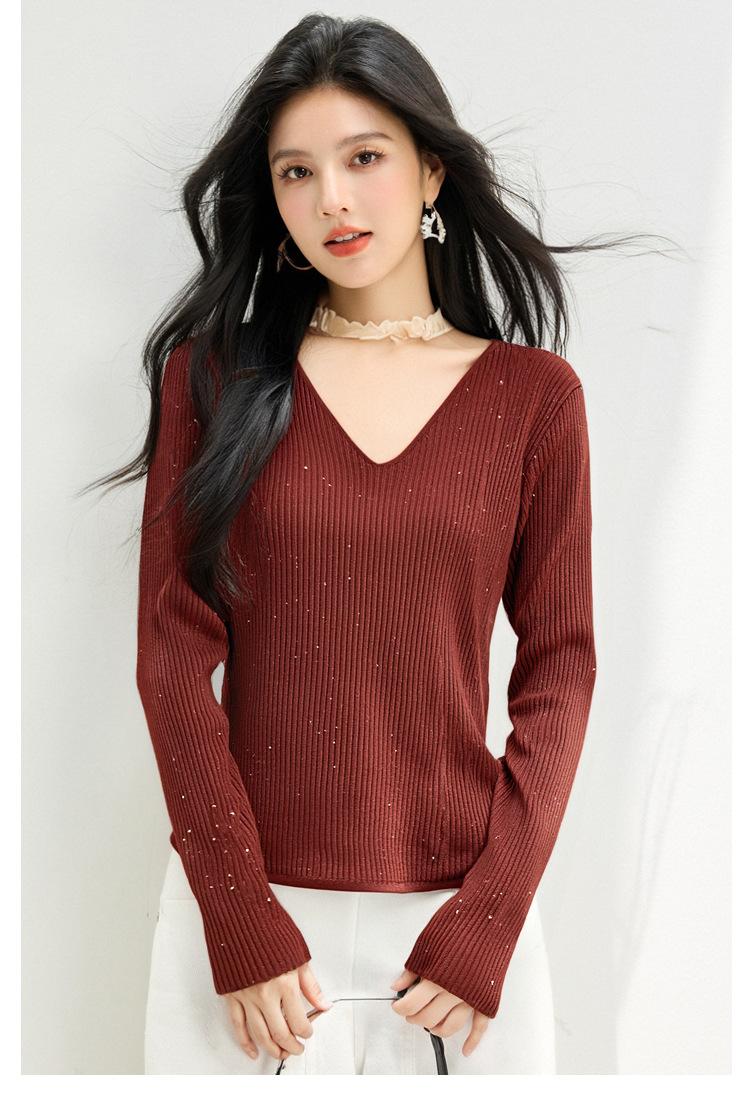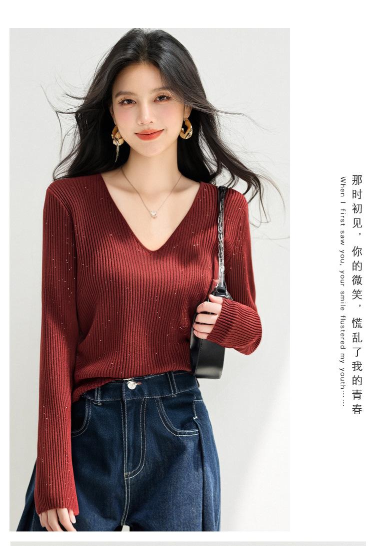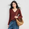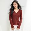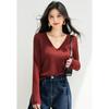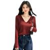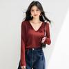 Estilo Coreano Temperamento Tejido Cuello en V Otoño 2025 Nueva Ropa de Mujer Suave Adelgazante Bodycon Moda Top Rojo A5490
