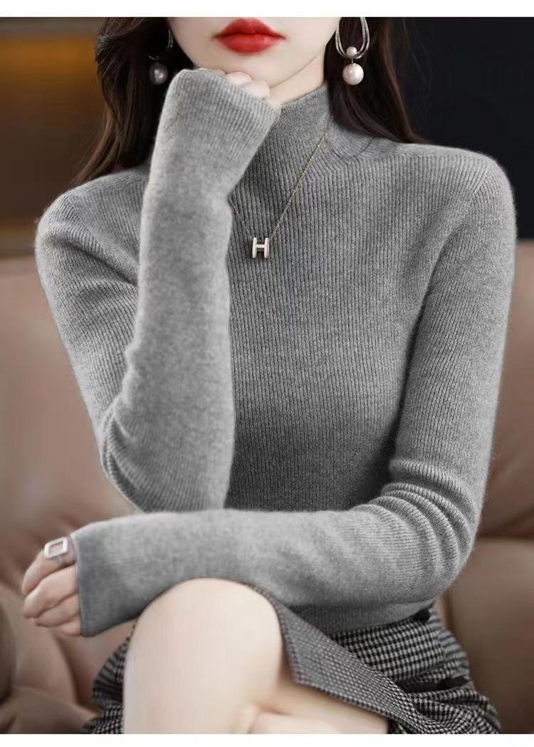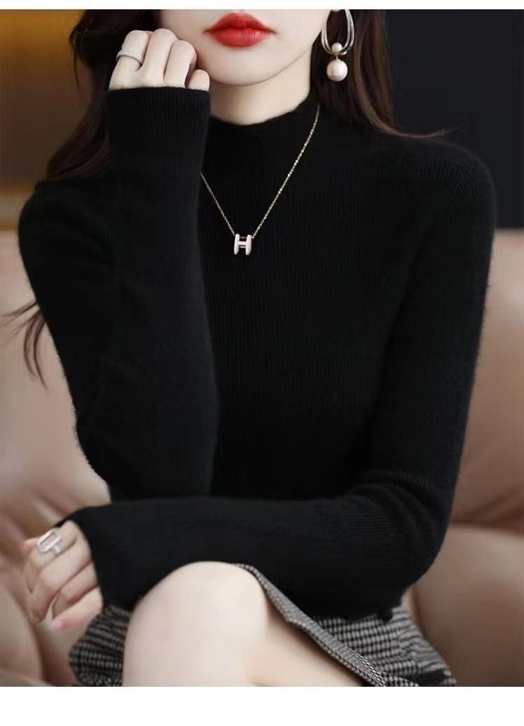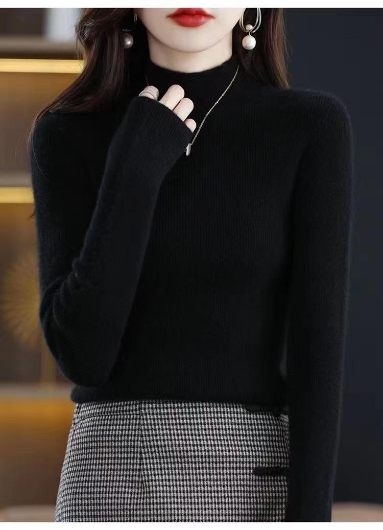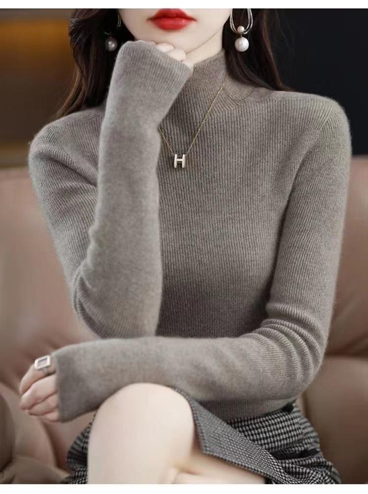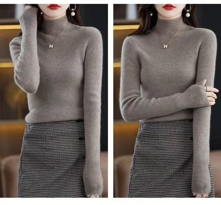 Suéter de cuello alto medio para mujer 2024 otoño e invierno nuevo suéter color sólido interior top ajustado versátil estilo occidental camisa base