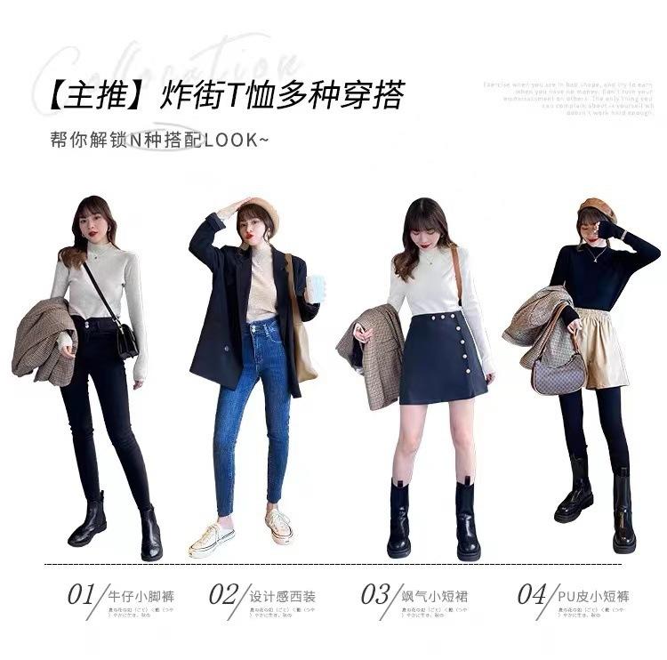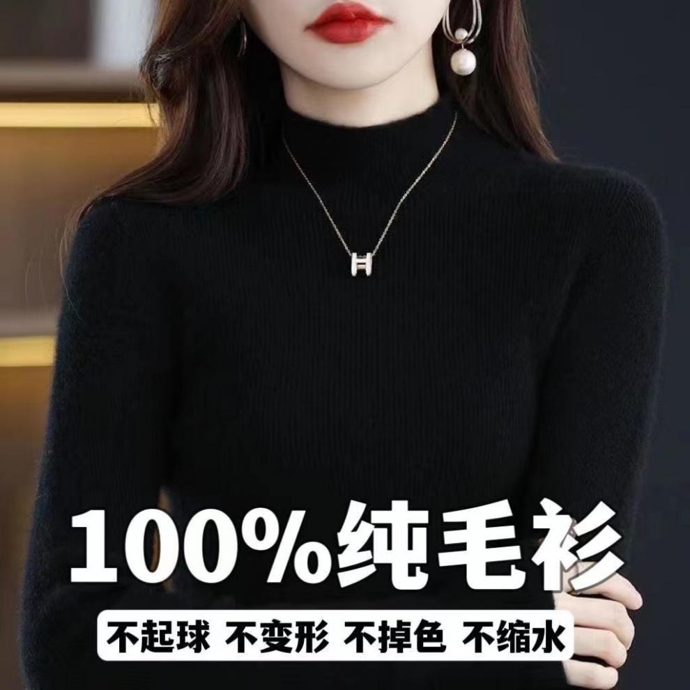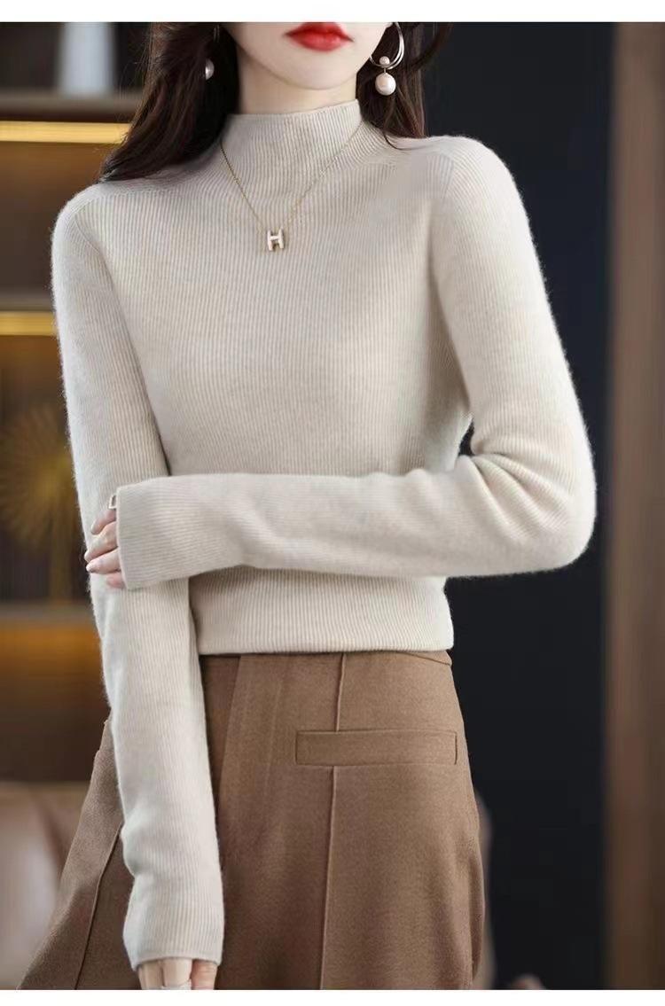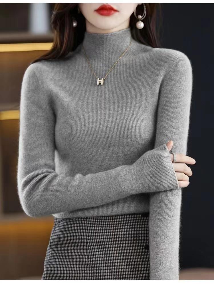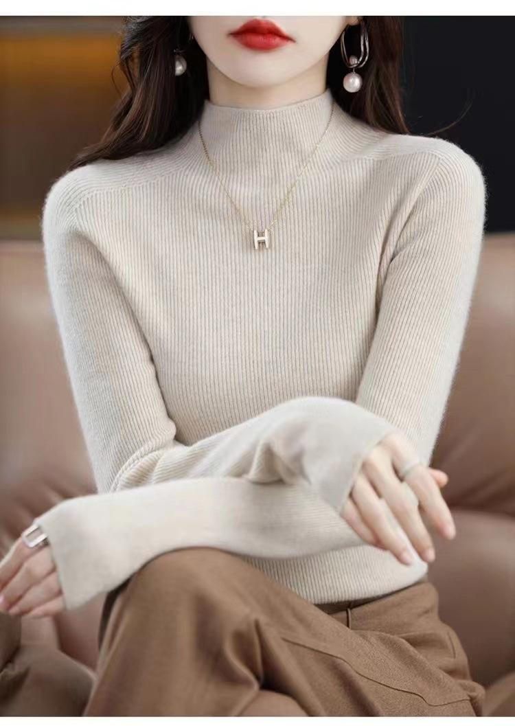 Suéter de cuello alto medio para mujer 2024 otoño e invierno nuevo suéter color sólido interior top ajustado versátil estilo occidental camisa base
