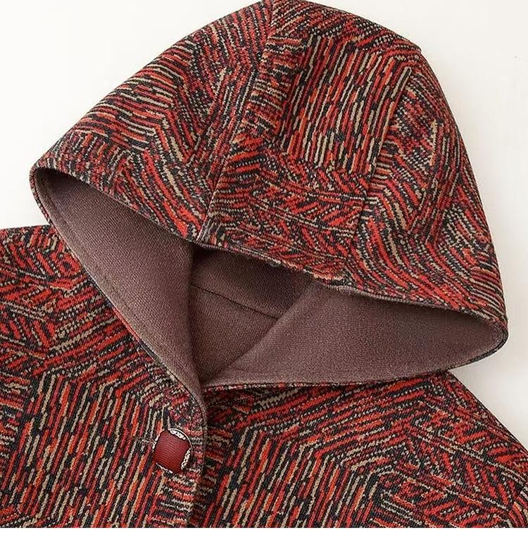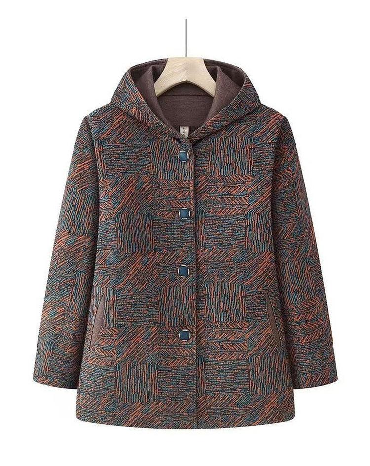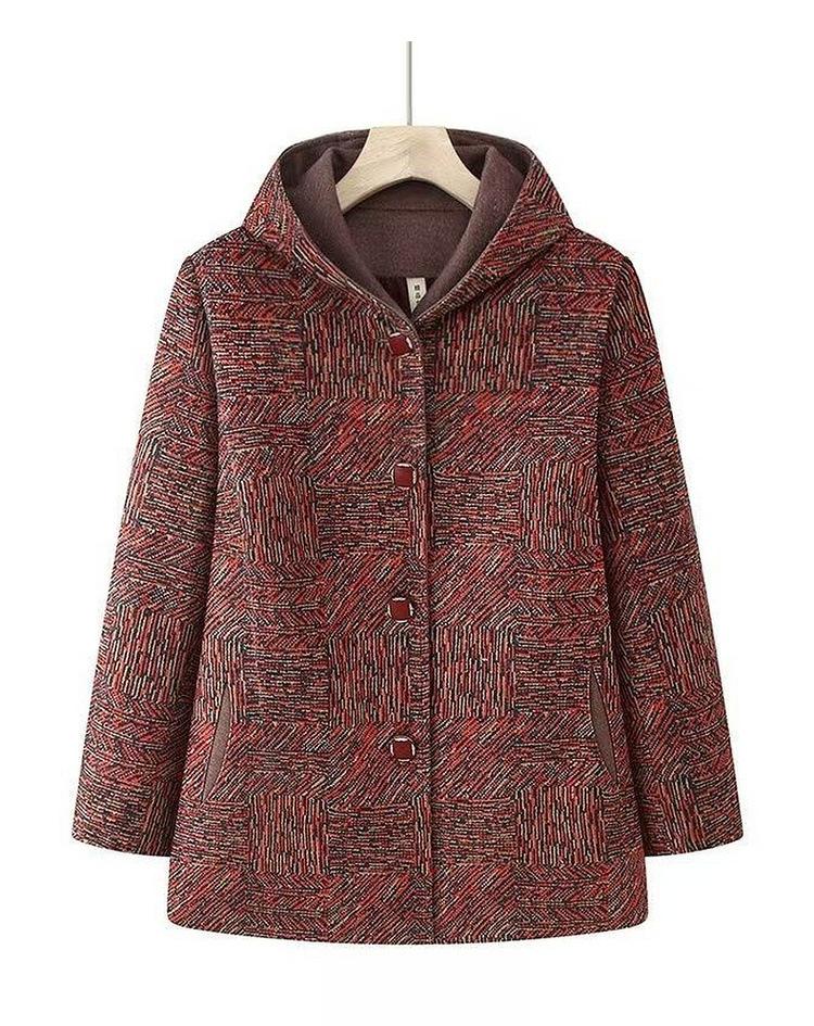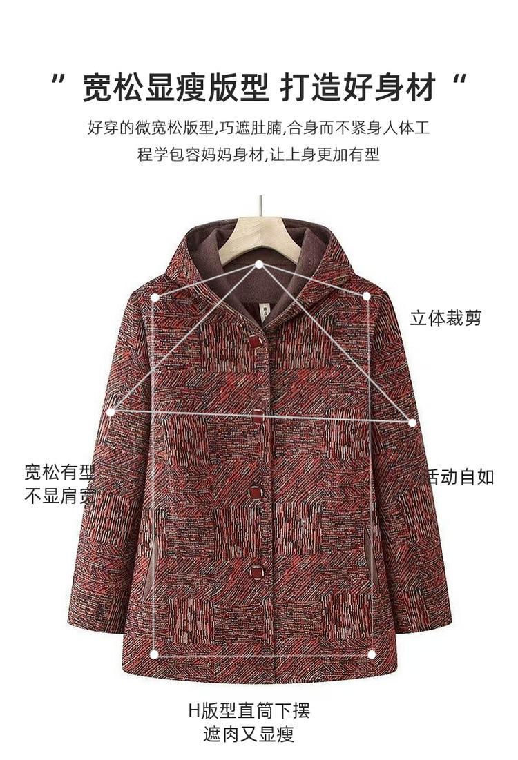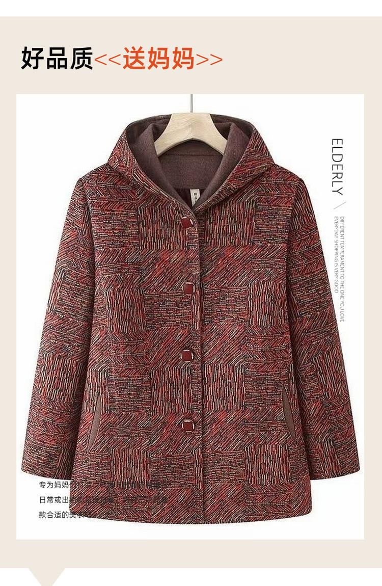 Abrigo de lana cálido con solapa de otoño e invierno más terciopelo, ropa para personas mayores de talla grande para mujeres mayores, conjunto de abuela, top de lana grueso