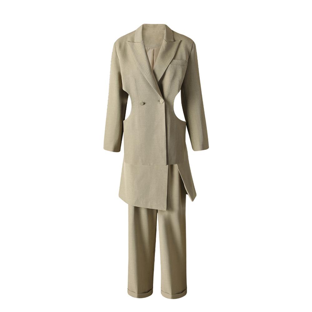 Elegante Traje Desestructurado de Alta Gama para Mujer, Nuevo Blazer Calado de Otoño con Pantalón Falda Patchwork Desmontable