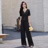 Yellow green top, Yellow-green culottes, Black top, Black culottes