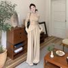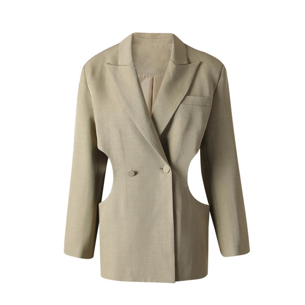 Gabardina retro de estilo británico de silueta pequeña para mujer, otoño, nueva personalidad, abertura, cuello alto, ropa exterior casual de alta gama