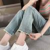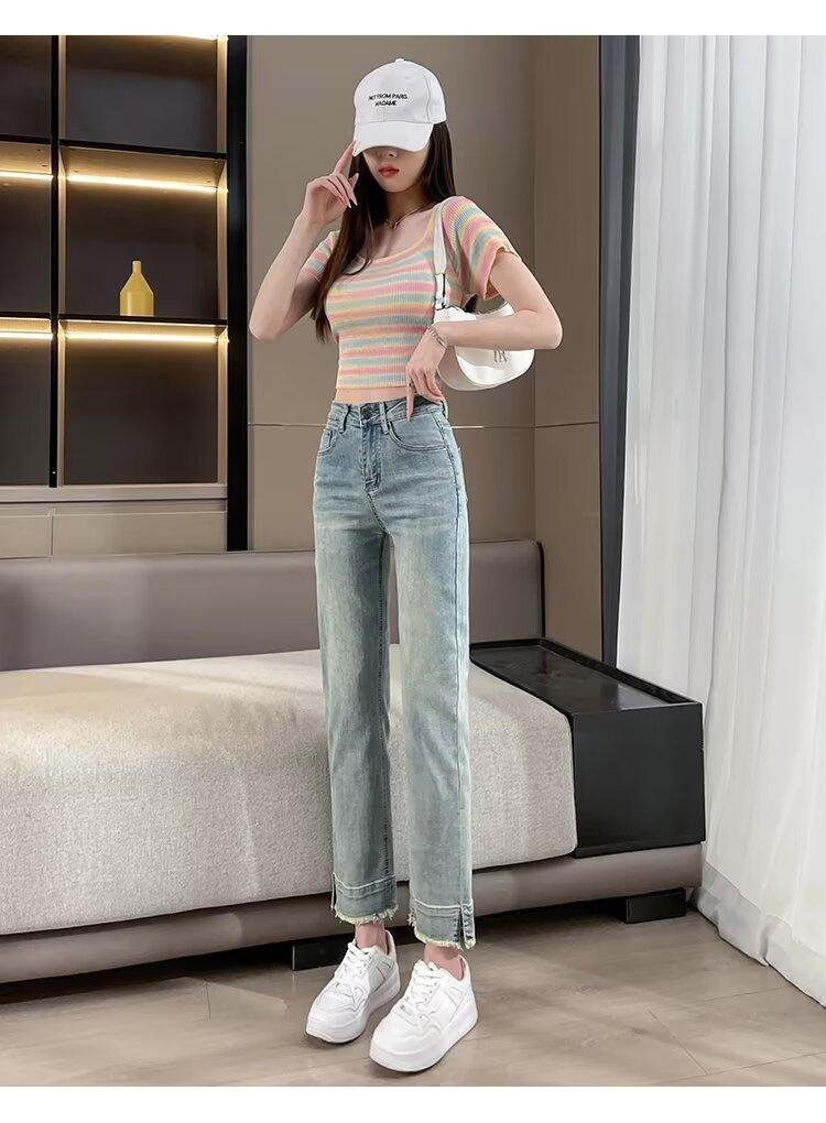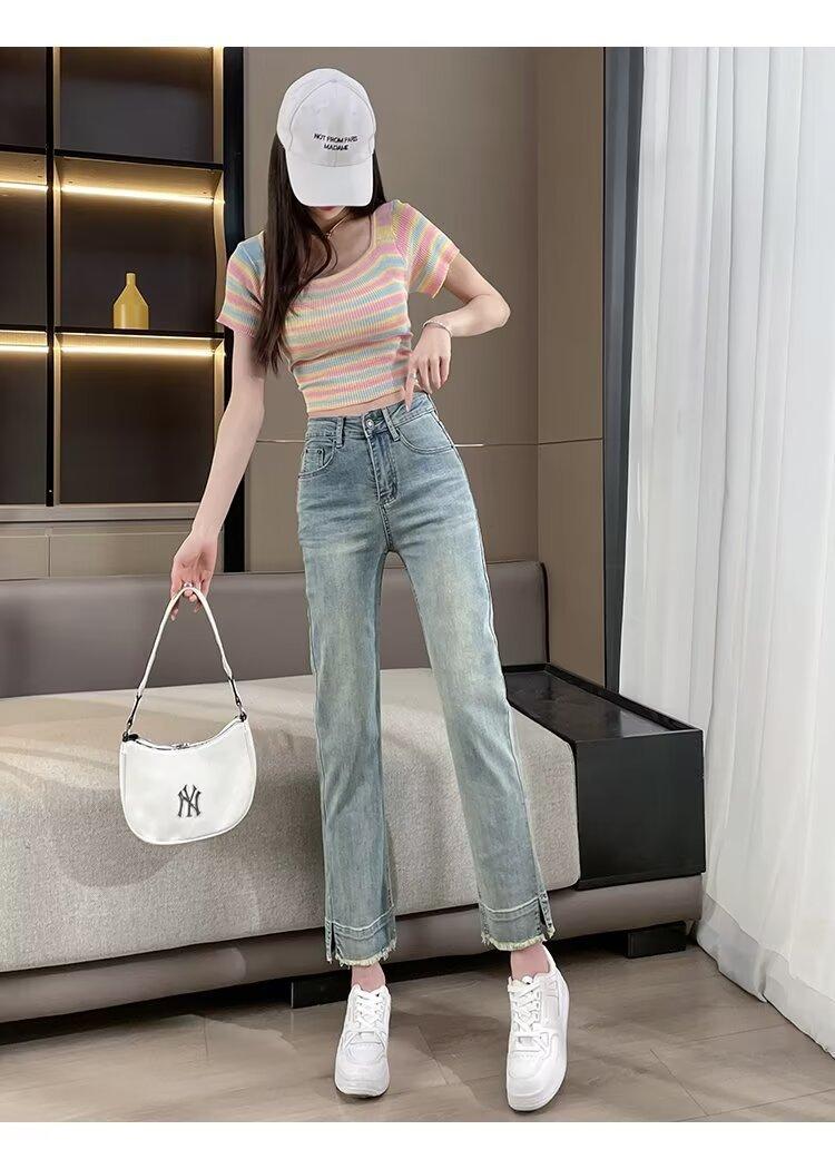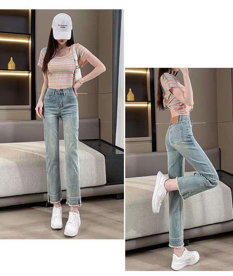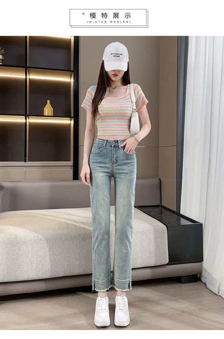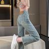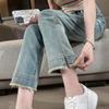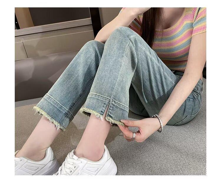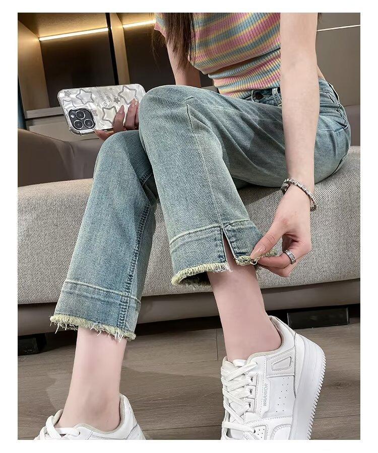 Jeans Acampanados Retro Petite de Cintura Alta para Mujer, Estilo Delgado de Verano 2025 Nuevo Pantalón Campana Corto Ajustado