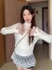 Tejido de Punto con Encaje Coreano de Cuello Alto Medio para Mujer Otoño e Invierno Ajustado Ropa Interior de Alta Gama Manga Larga Lust Pura Top