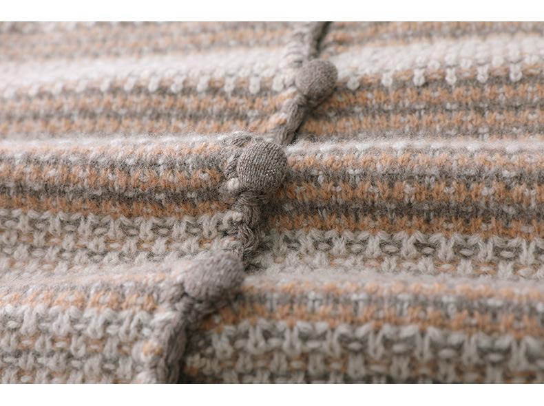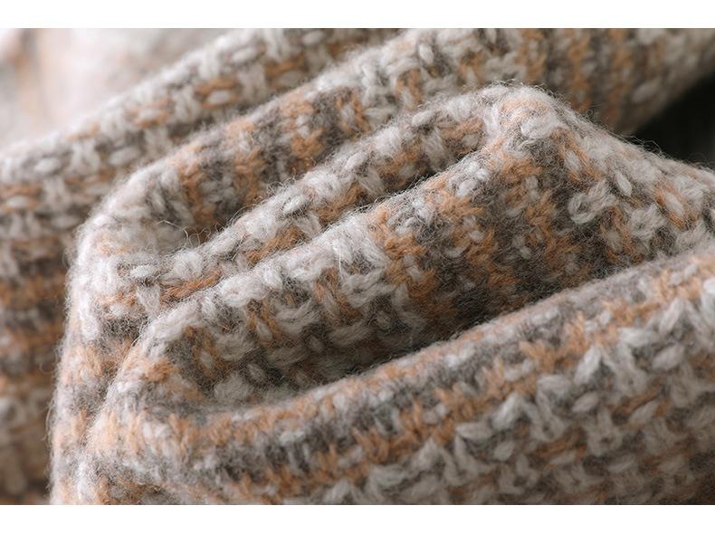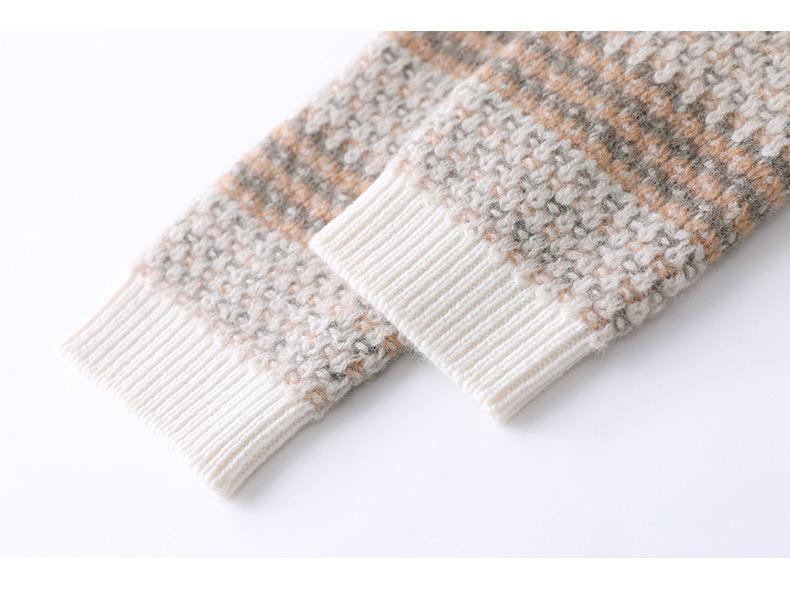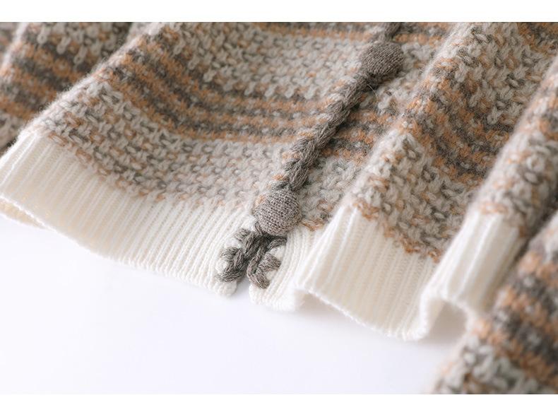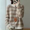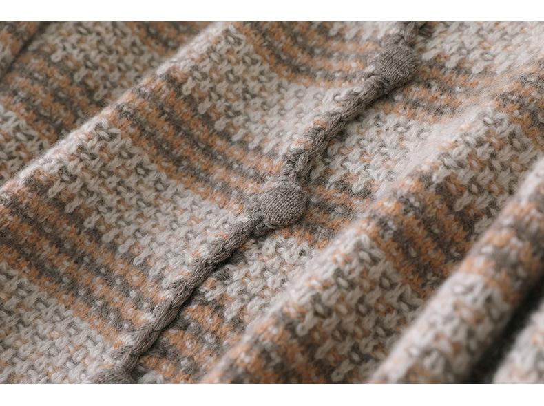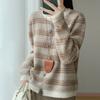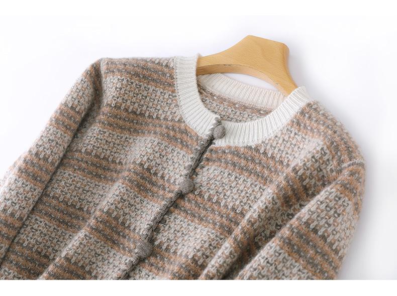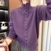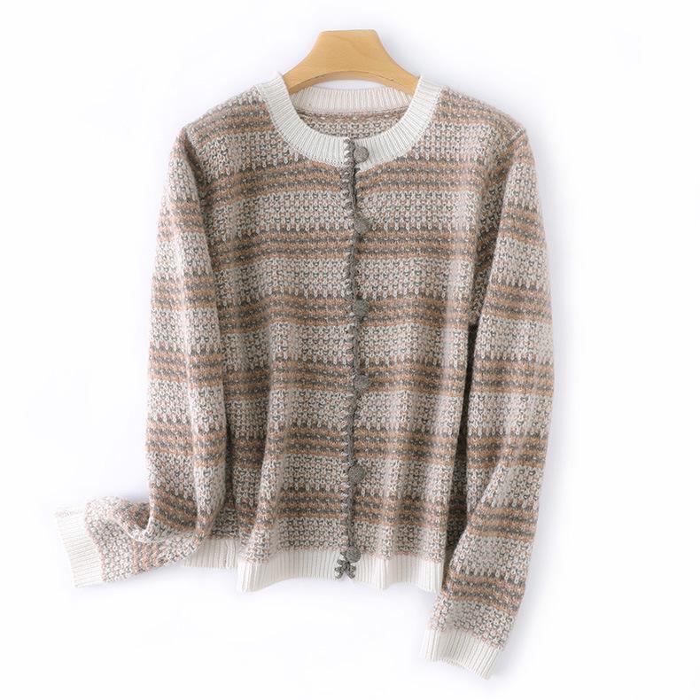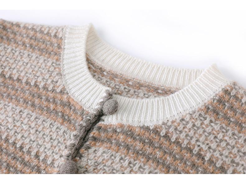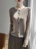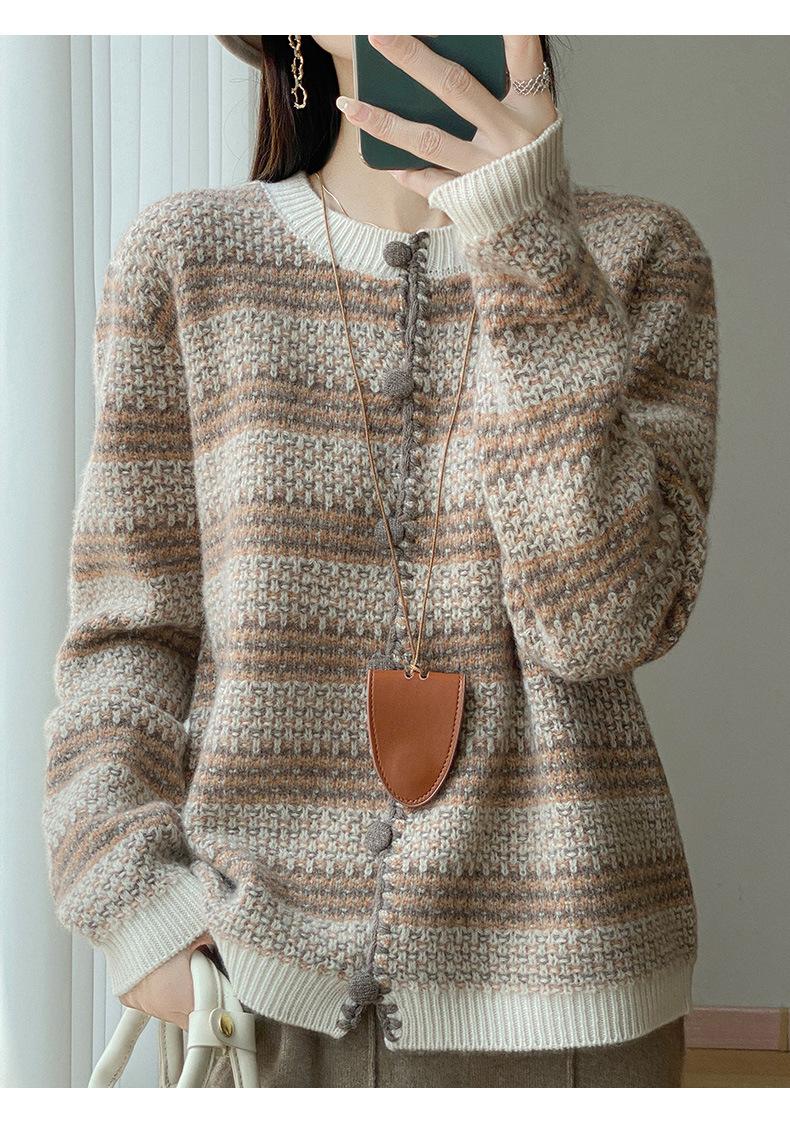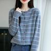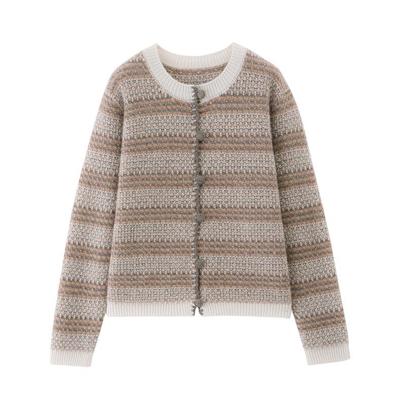 Cárdigan de Punto de Lana Pura de Cuello Redondo Nuevo Otoño/Invierno 2025 Manga Larga Mujer Bloque de Color Suelto Versátil Top Prenda Exterior