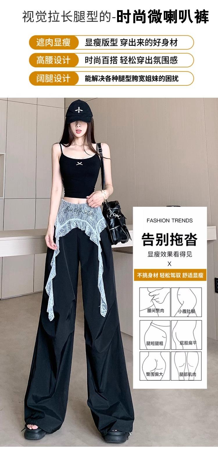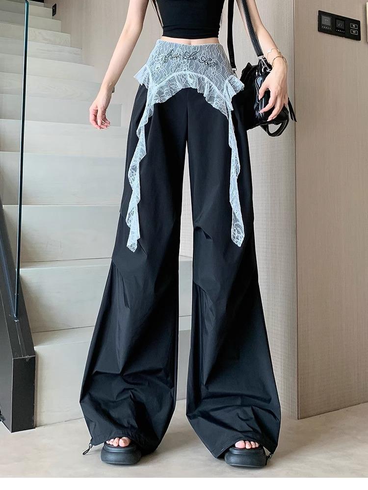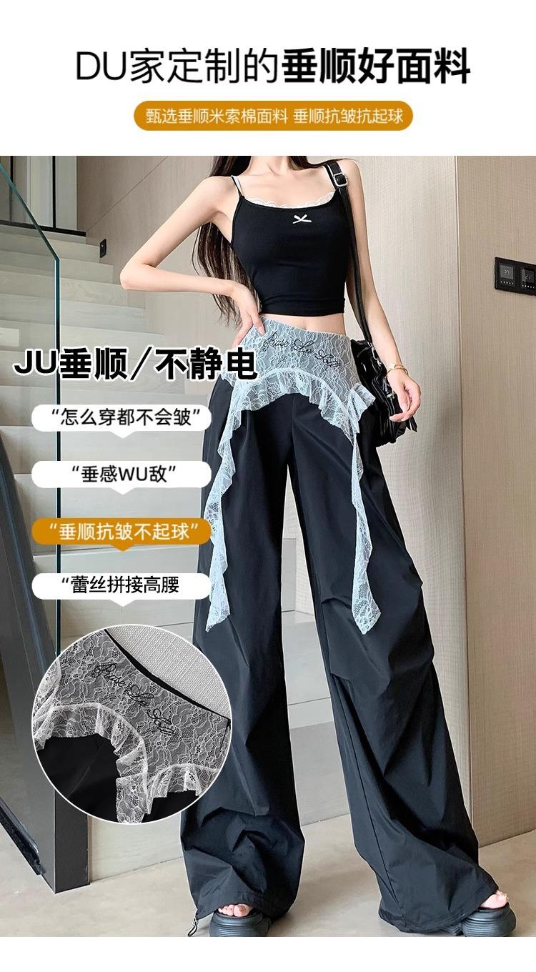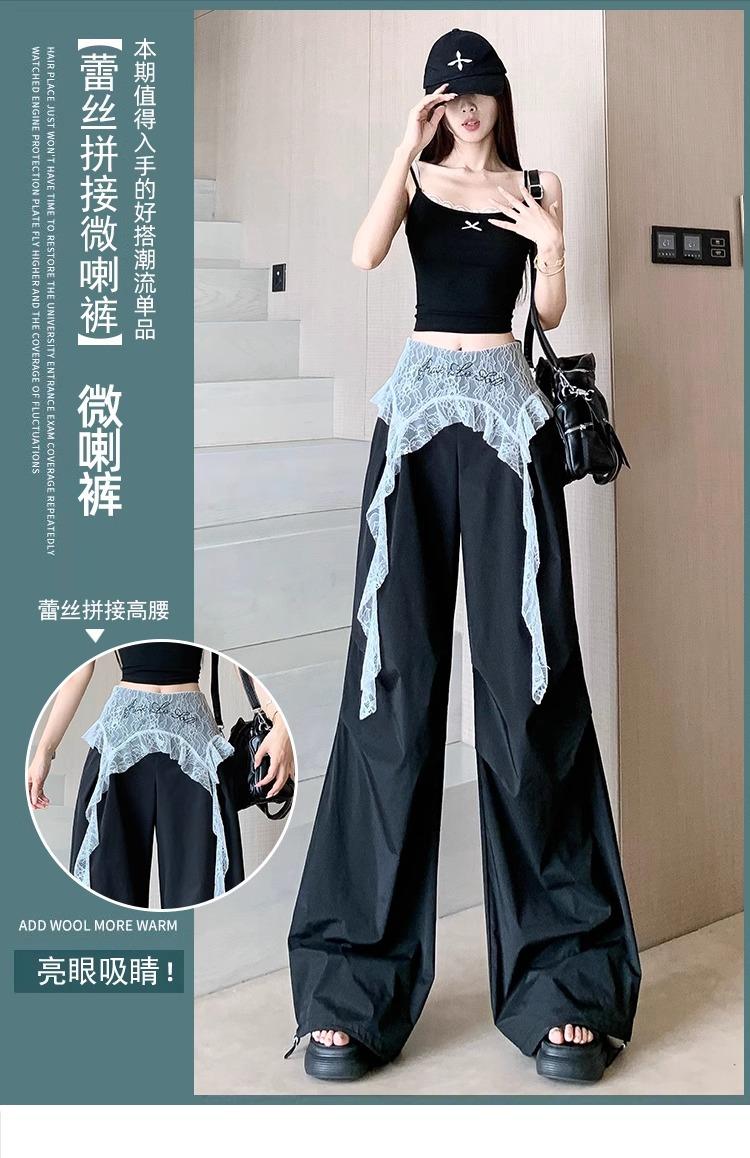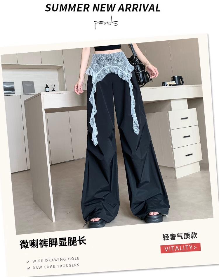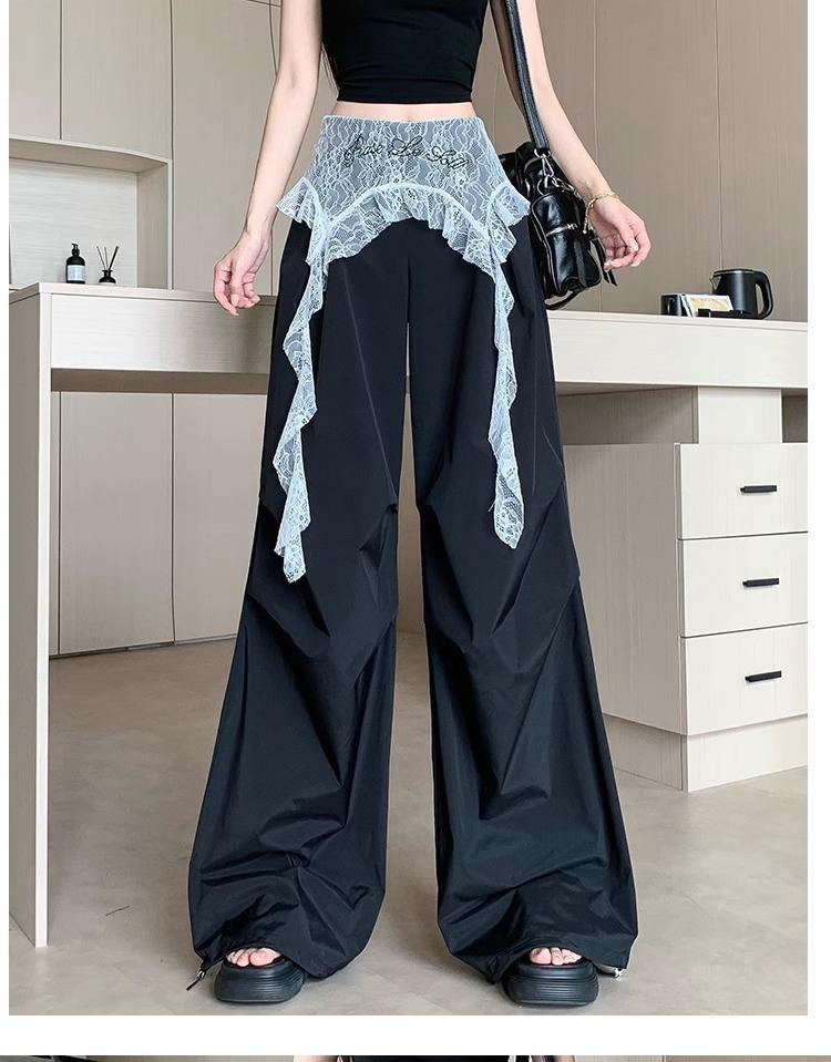 2025 Nuevo Verano Versátil Encaje Patchwork Suelto Casual Falso Dos Piezas Cargo Pierna Ancha Pantalones Largos Tendencia de Mujer
