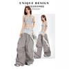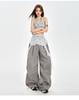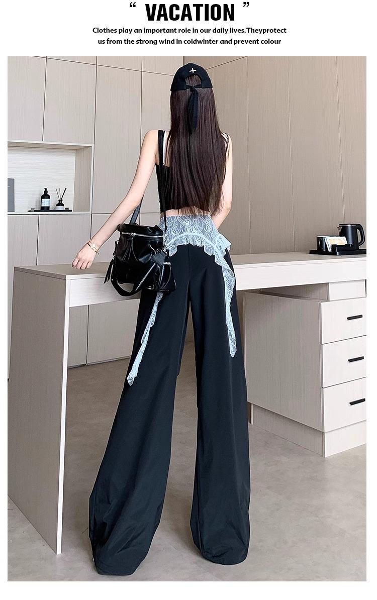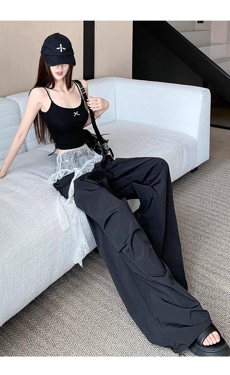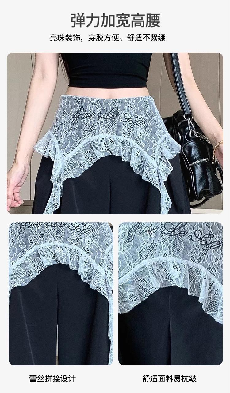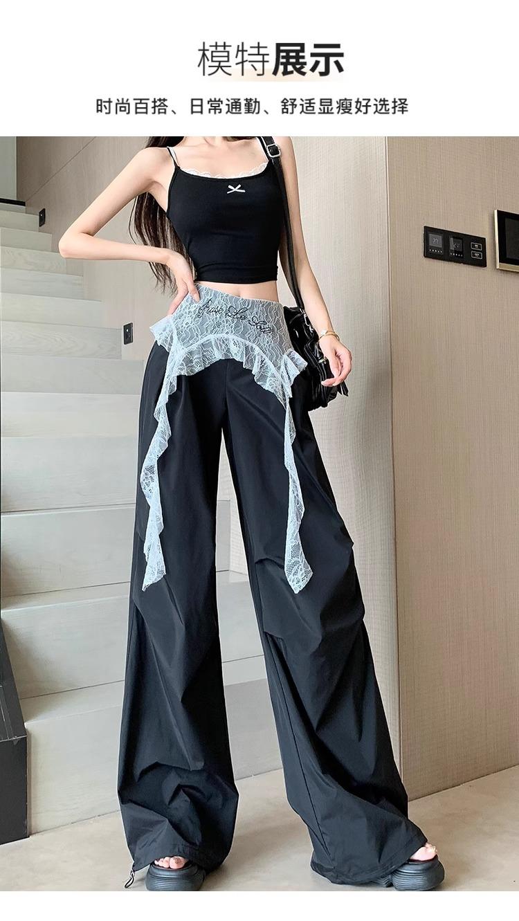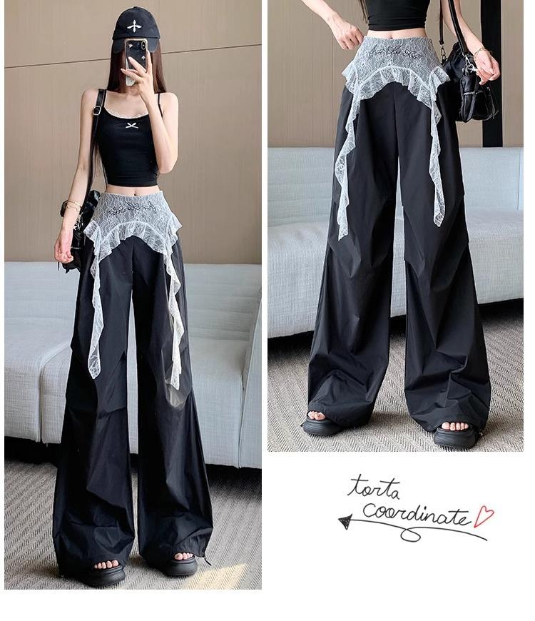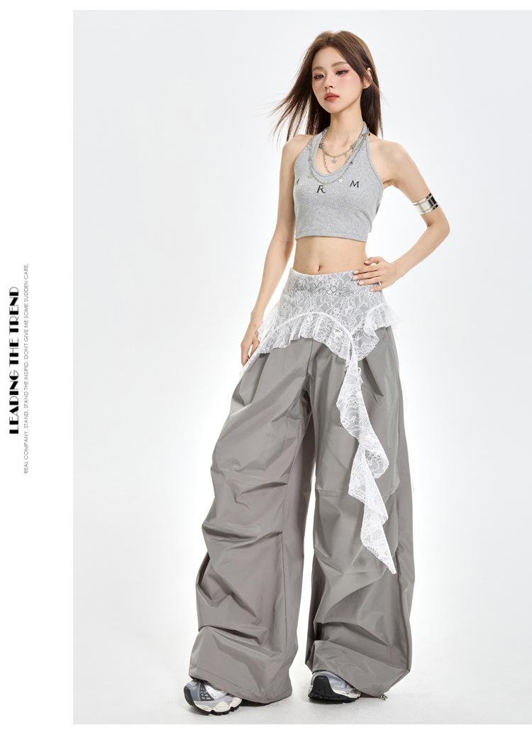 2025 Nuevo Verano Versátil Encaje Patchwork Suelto Casual Falso Dos Piezas Cargo Pierna Ancha Pantalones Largos Tendencia de Mujer