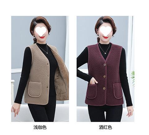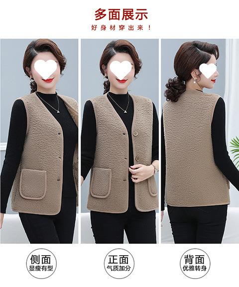 Chaleco forrado de polar para mujer, otoño e invierno, ropa para mujeres de mediana edad y mayores, chaleco cálido, ropa de abuela, chaqueta sin mangas, ropa exterior