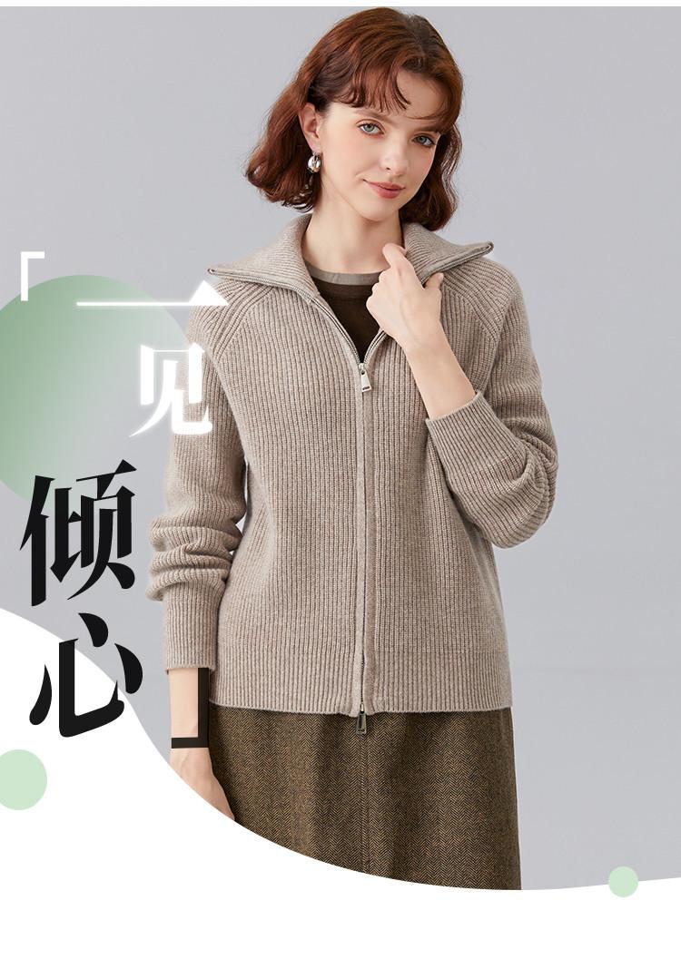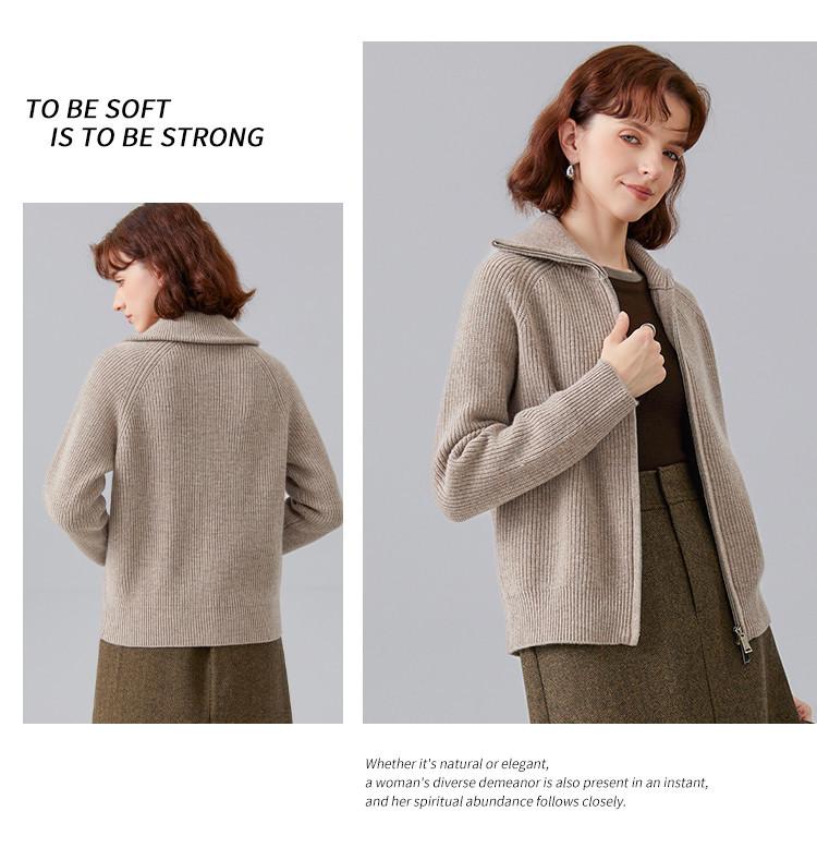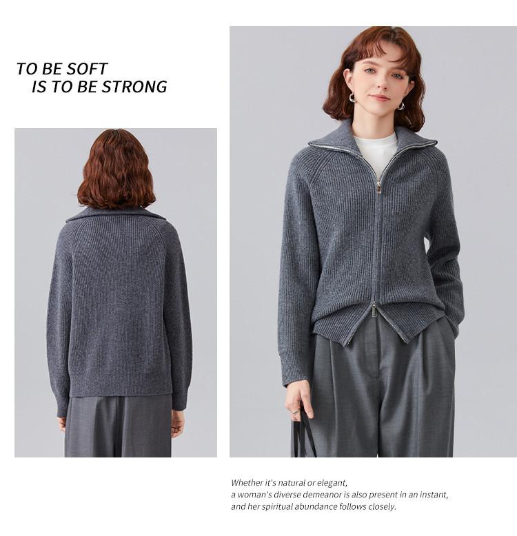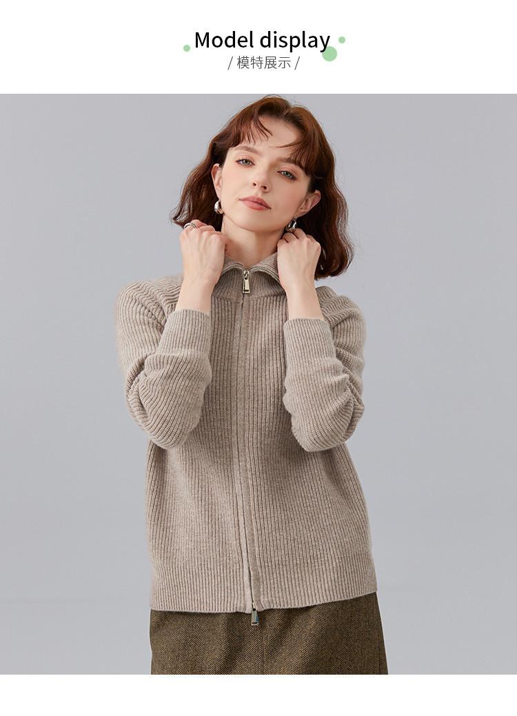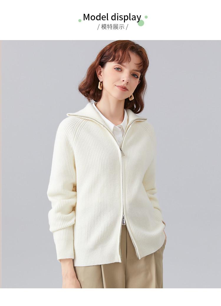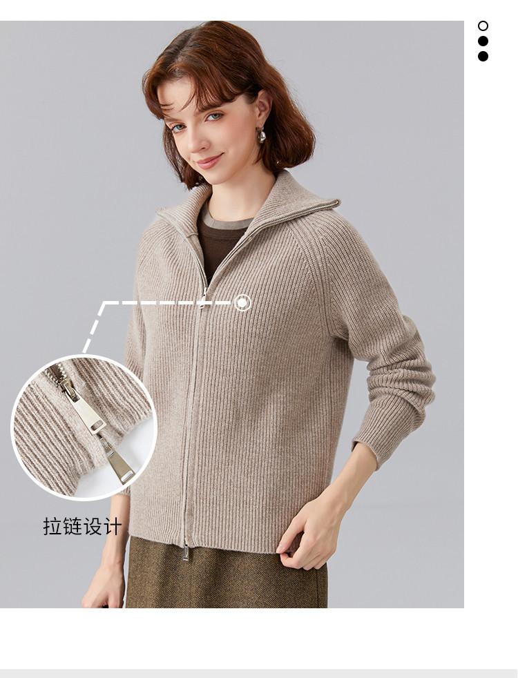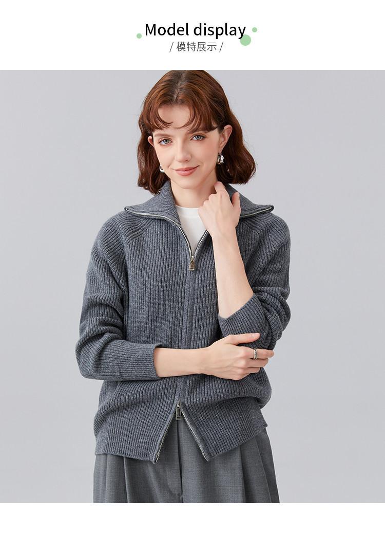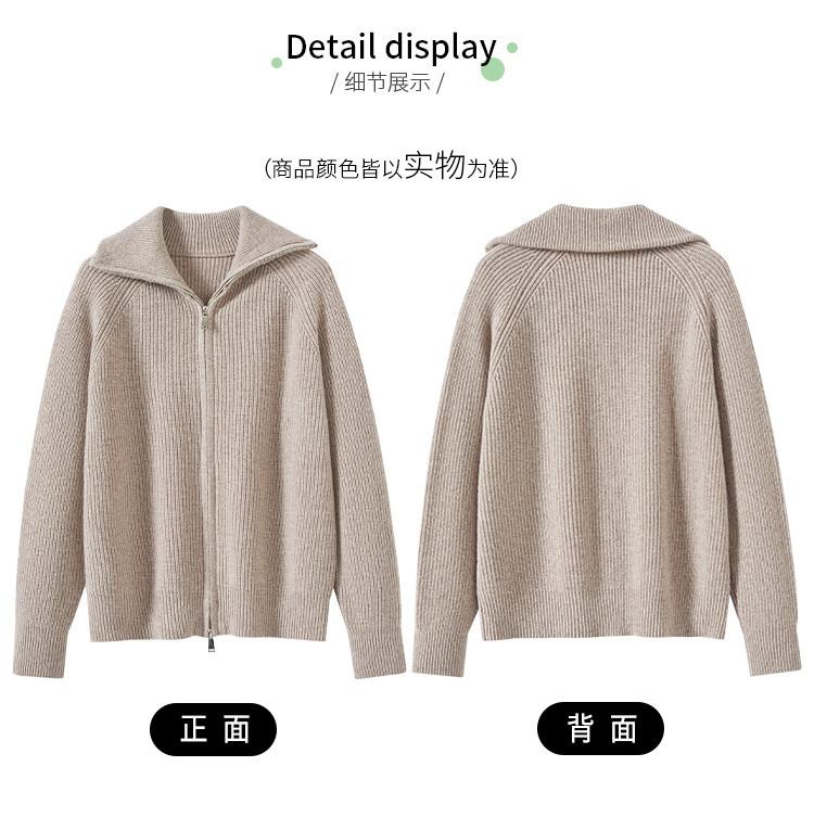 Suéter 100% Lana Otoño e Invierno Tejido Cárdigan con Cremallera Manga Larga Casual Solapa Moda Versátil Chaqueta de Punto para Mujer