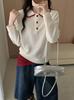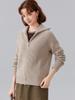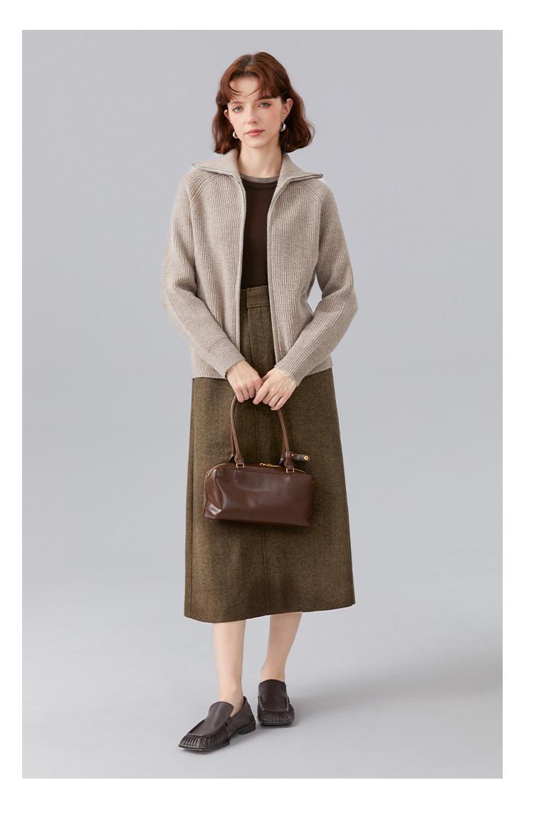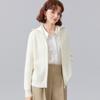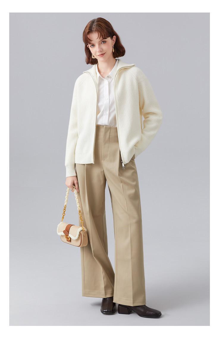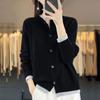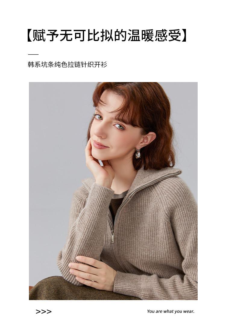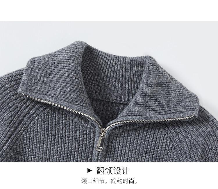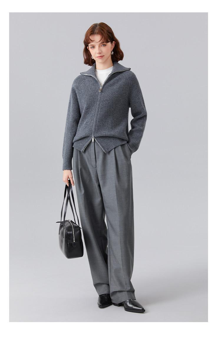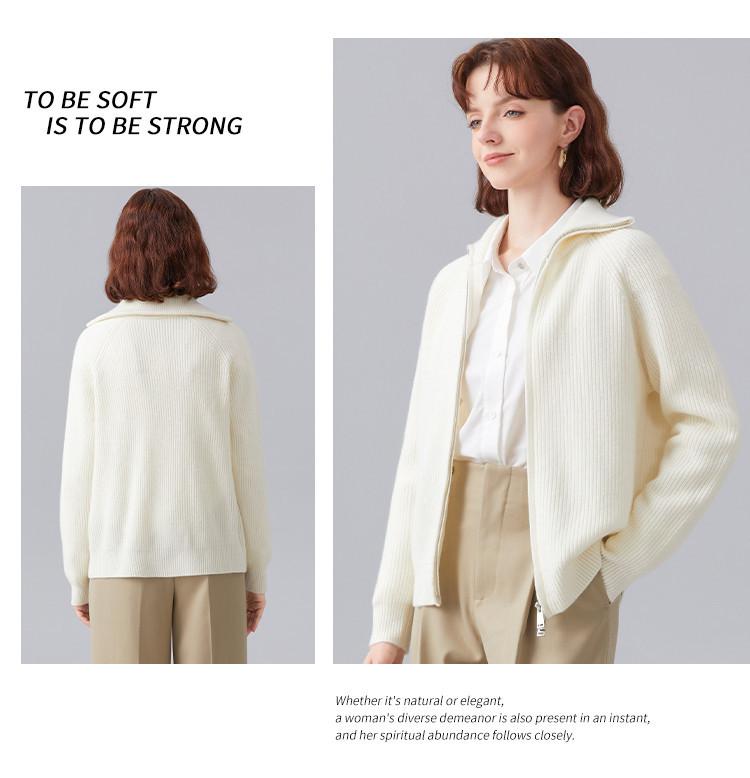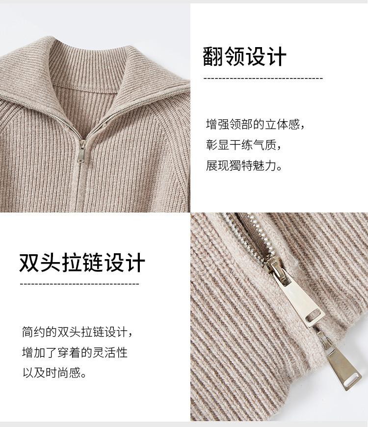 Suéter 100% Lana Otoño e Invierno Tejido Cárdigan con Cremallera Manga Larga Casual Solapa Moda Versátil Chaqueta de Punto para Mujer