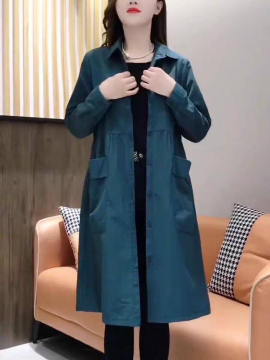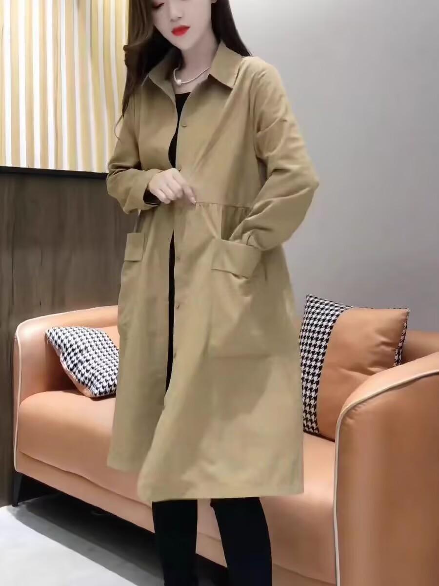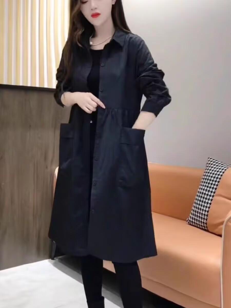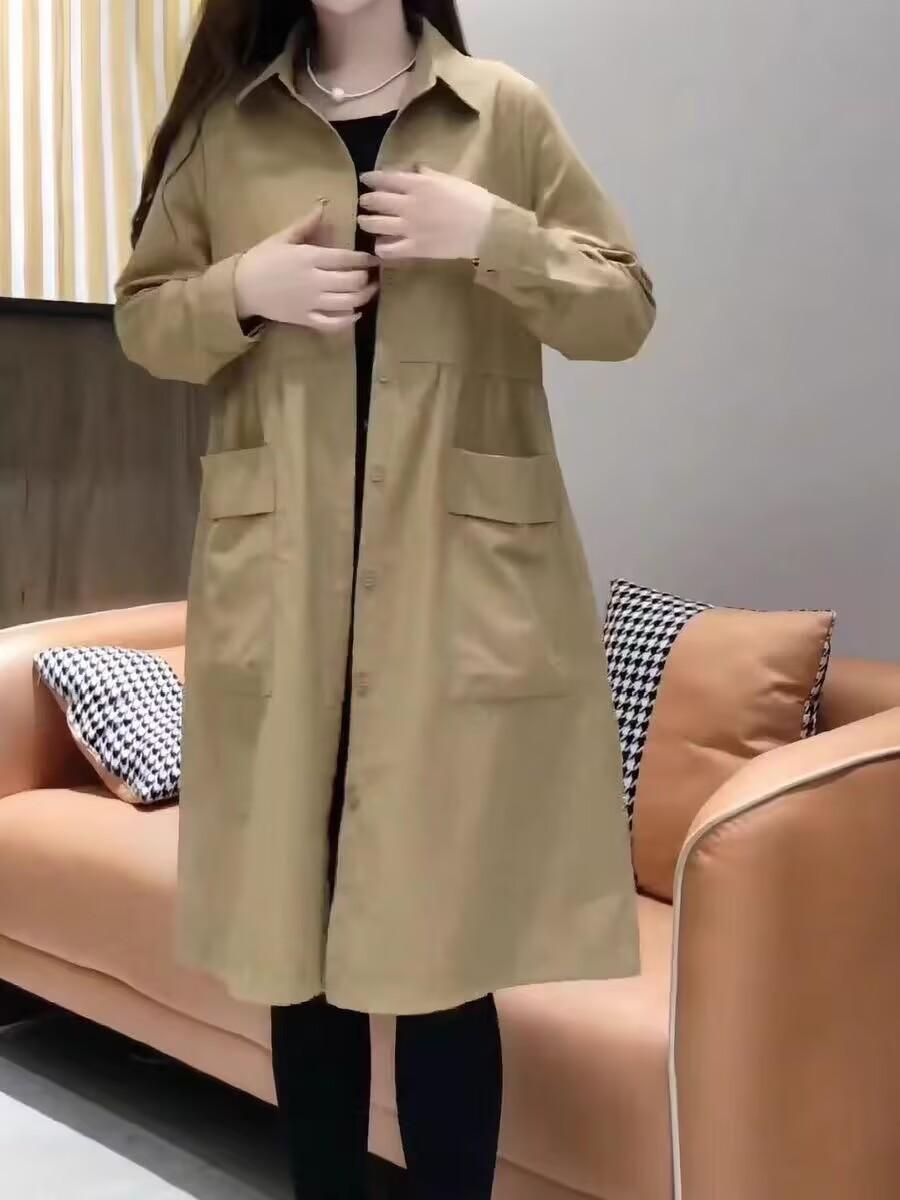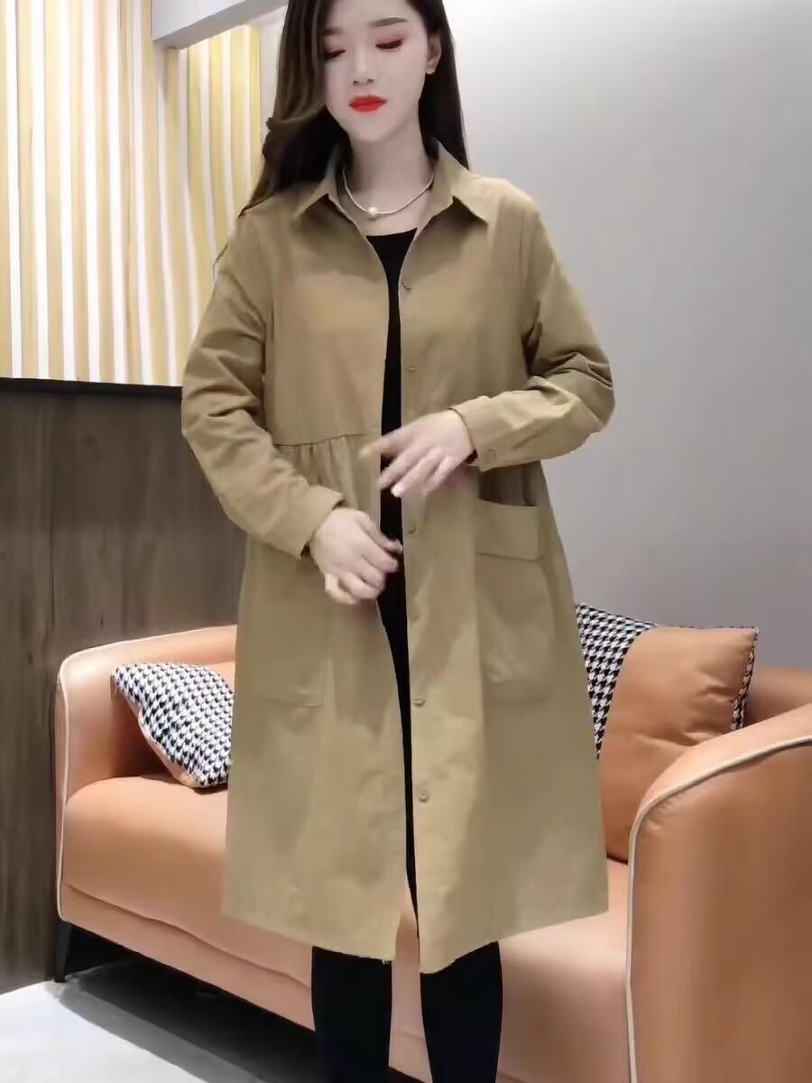 Abrigo trench de camisa de color sólido de longitud media 2025 nuevo estilo coreano suelto moda estilo extranjero versátil abrigo delgado para mujer moderno