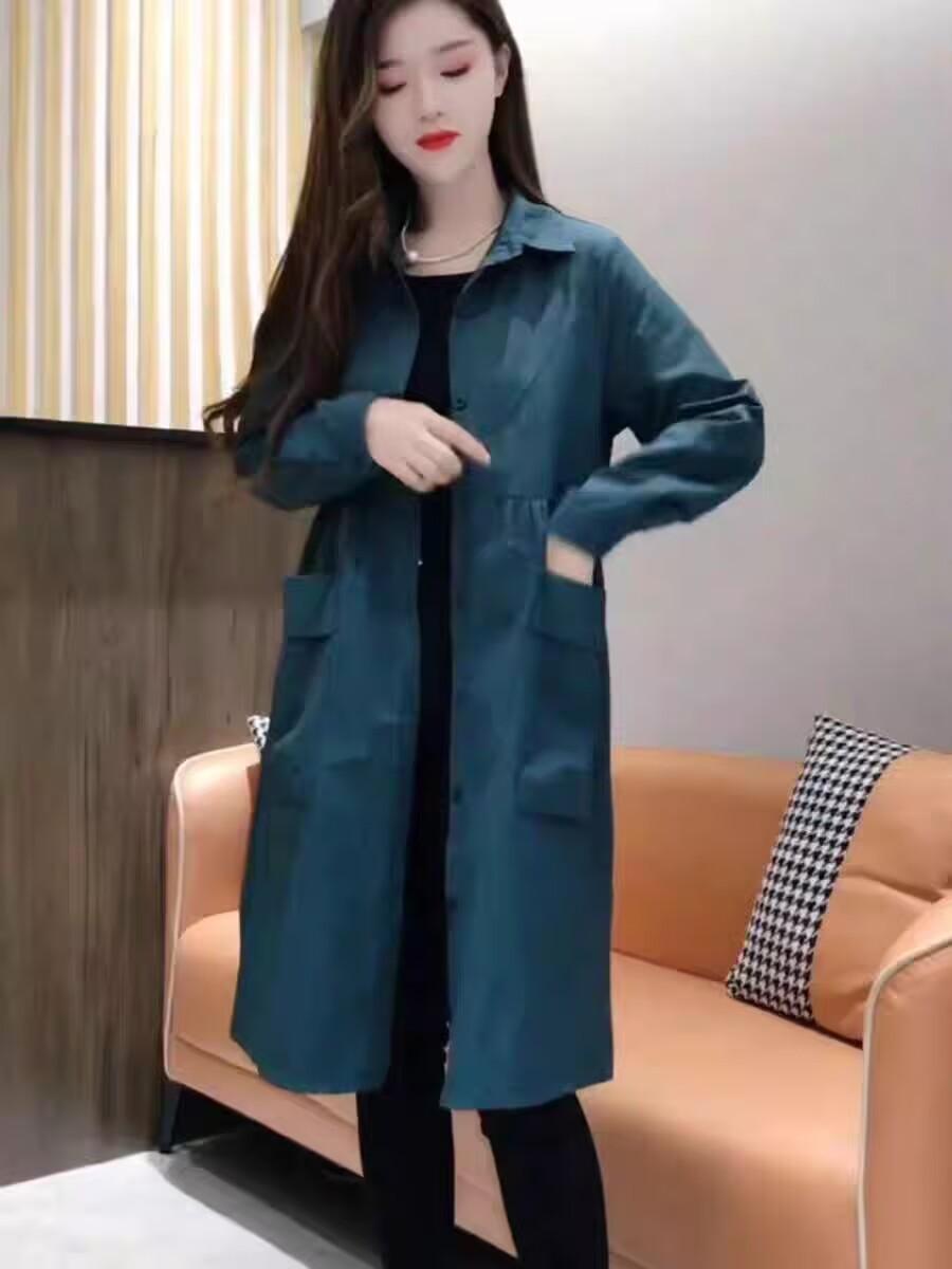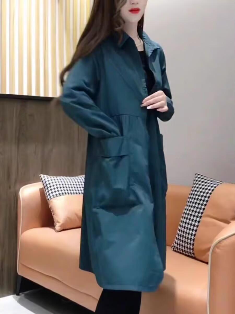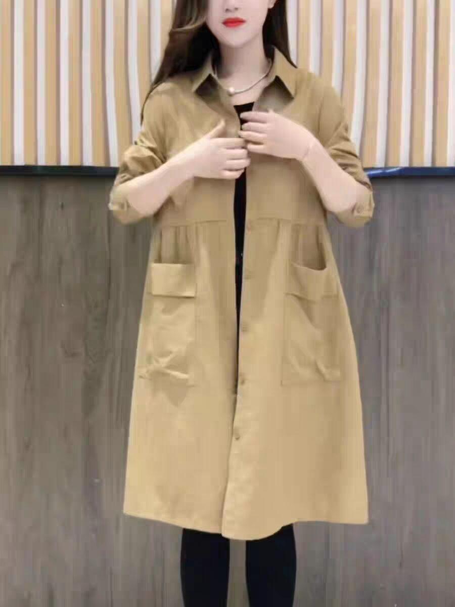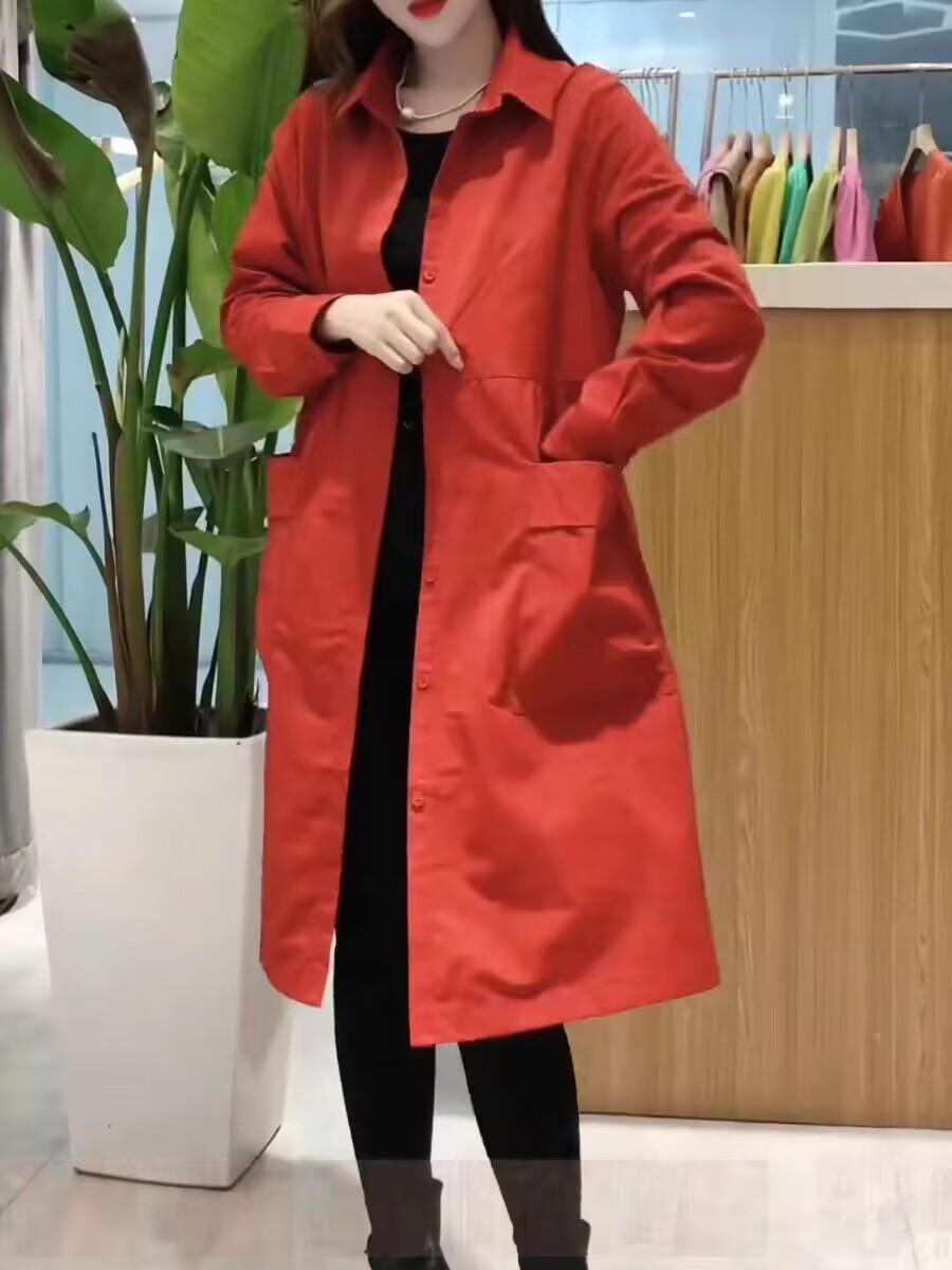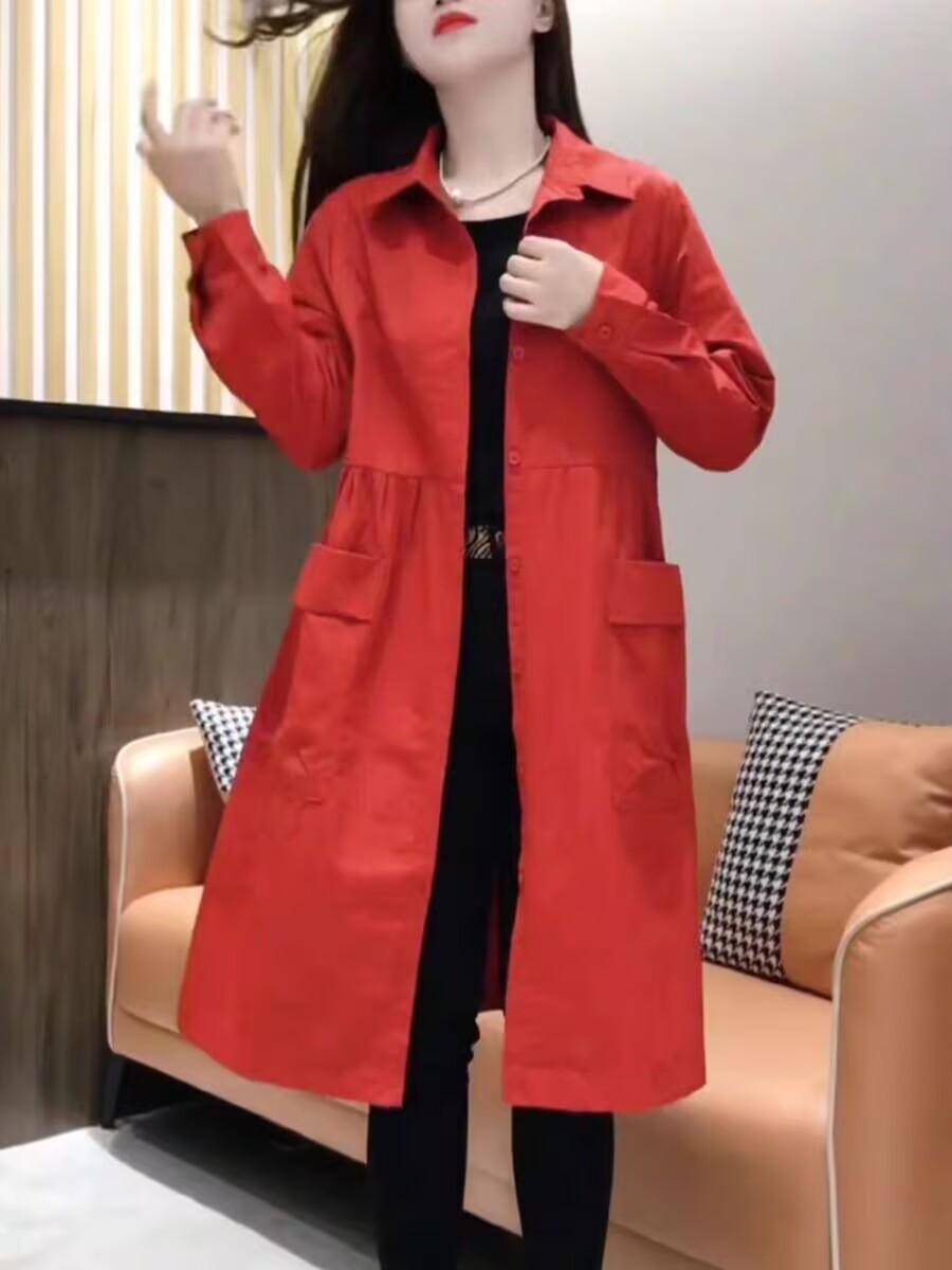 Abrigo trench de camisa de color sólido de longitud media 2025 nuevo estilo coreano suelto moda estilo extranjero versátil abrigo delgado para mujer moderno