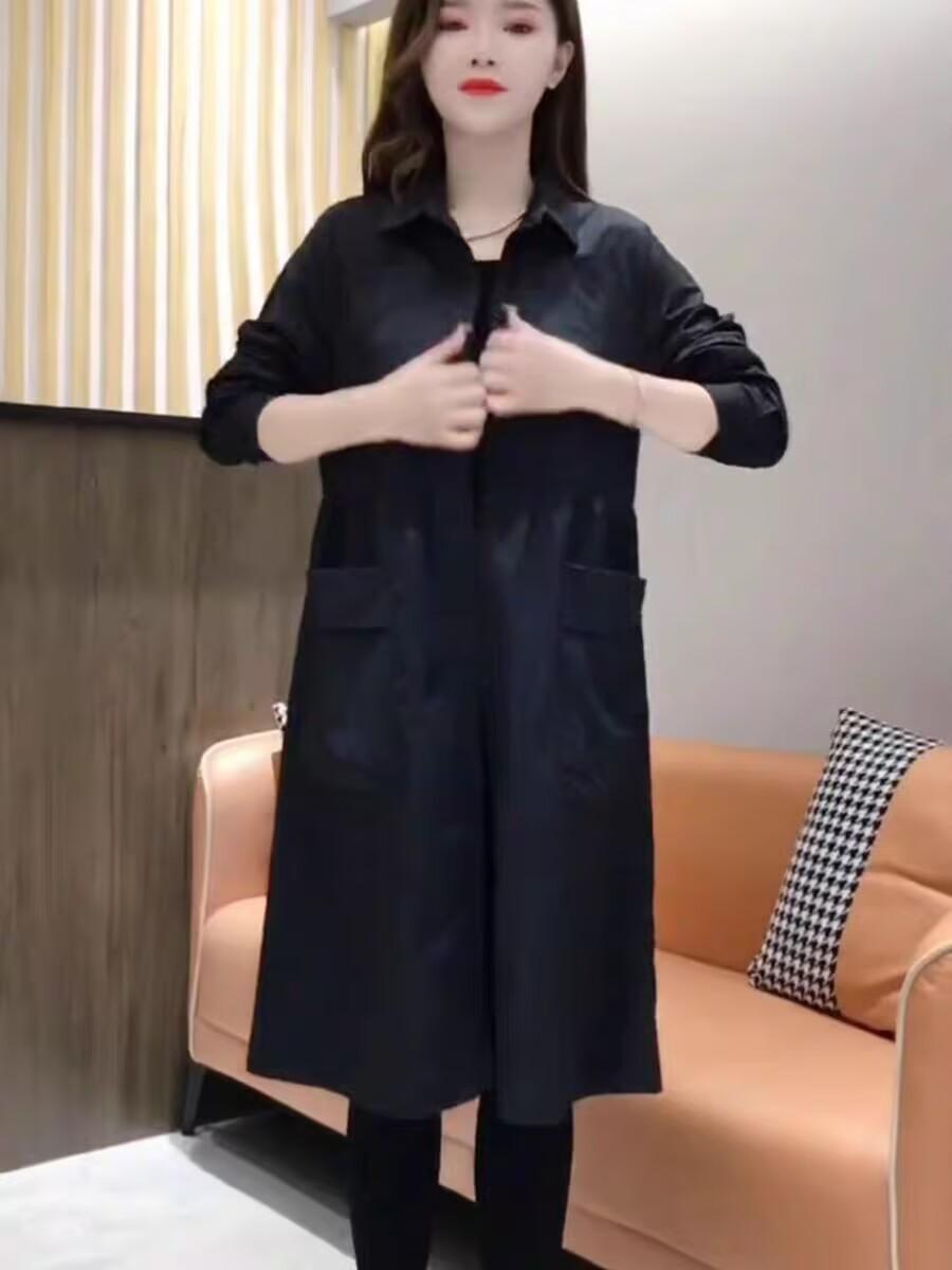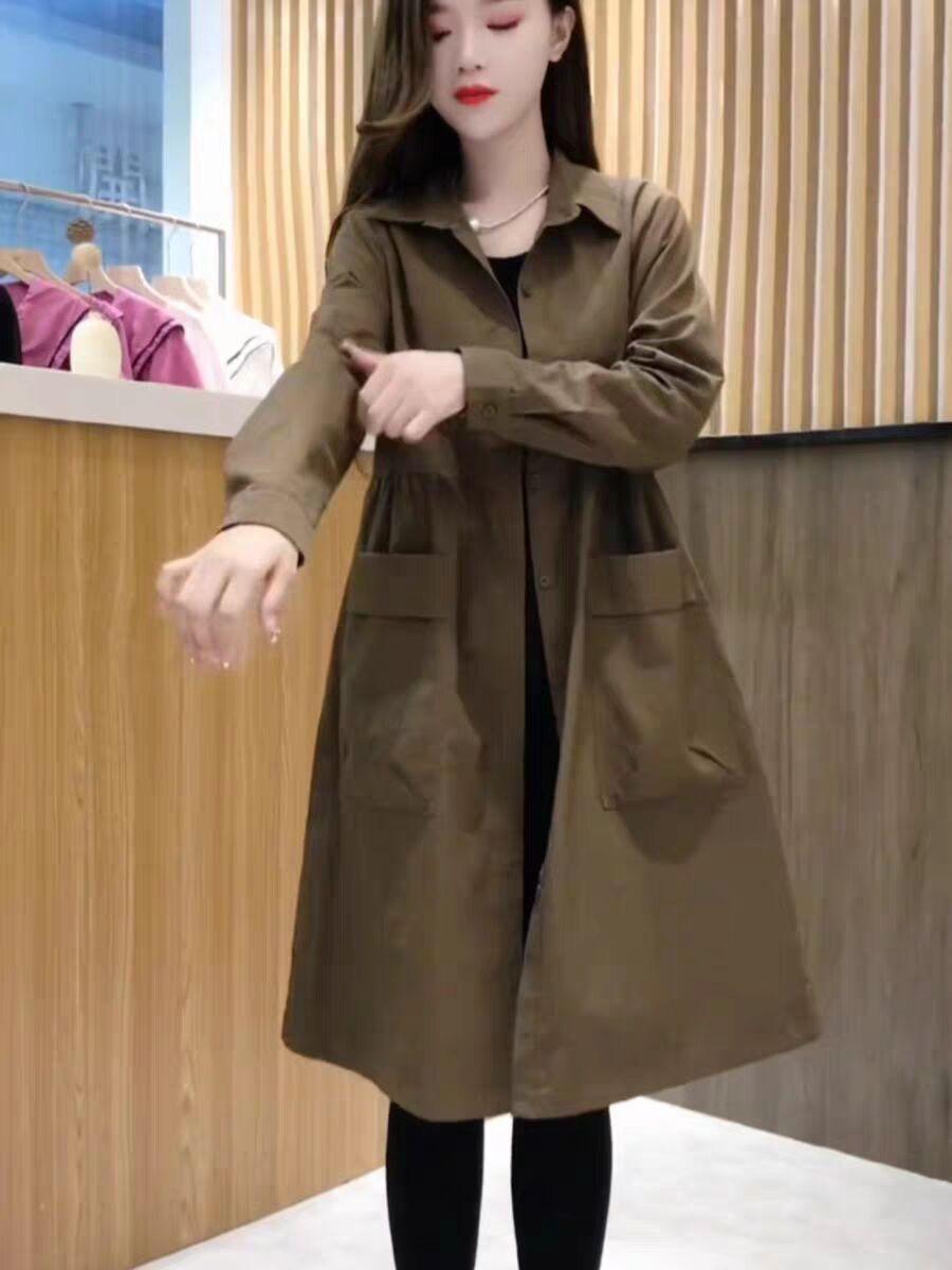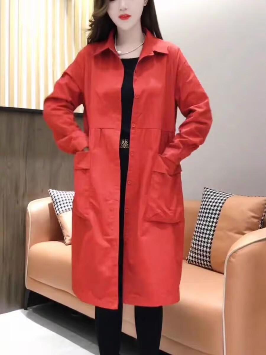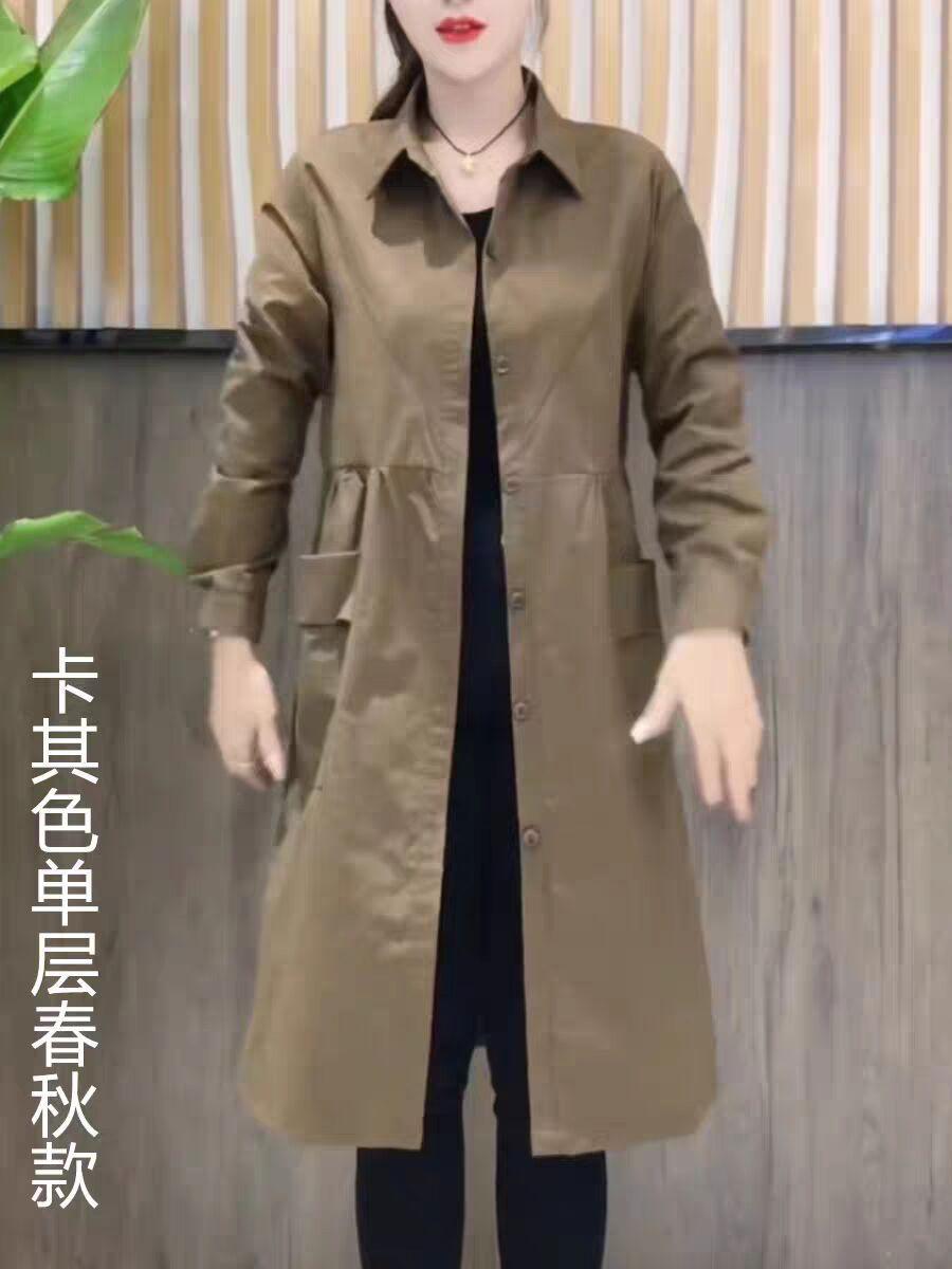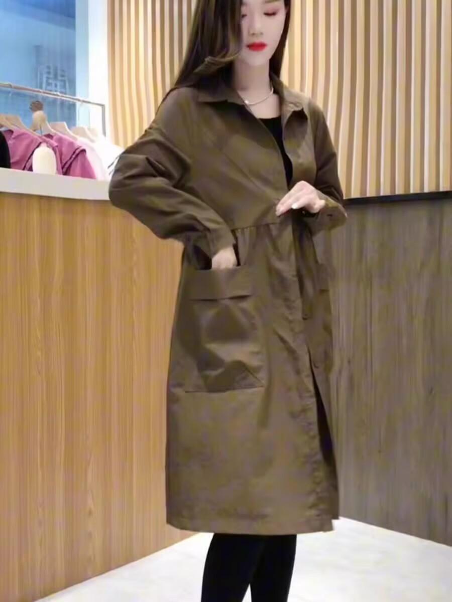 Abrigo trench de camisa de color sólido de longitud media 2025 nuevo estilo coreano suelto moda estilo extranjero versátil abrigo delgado para mujer moderno