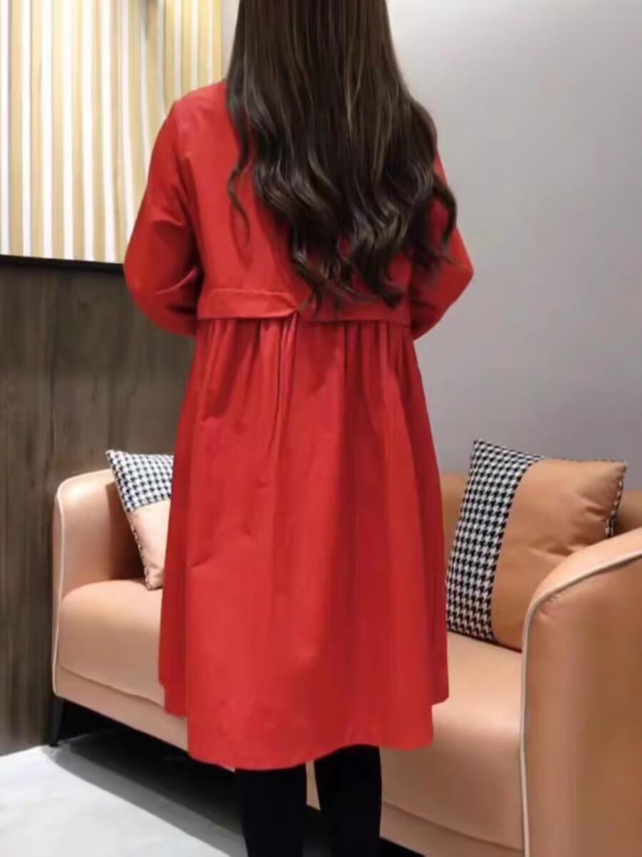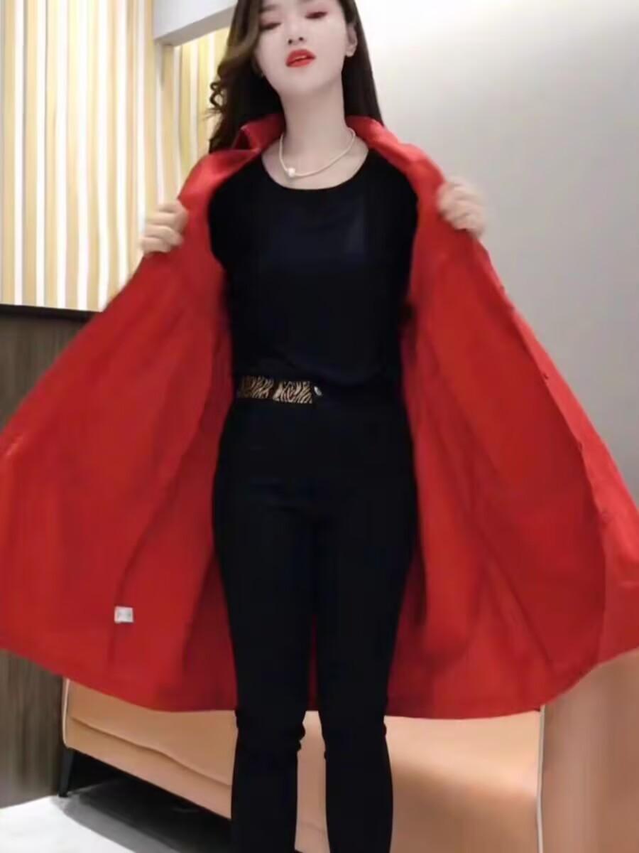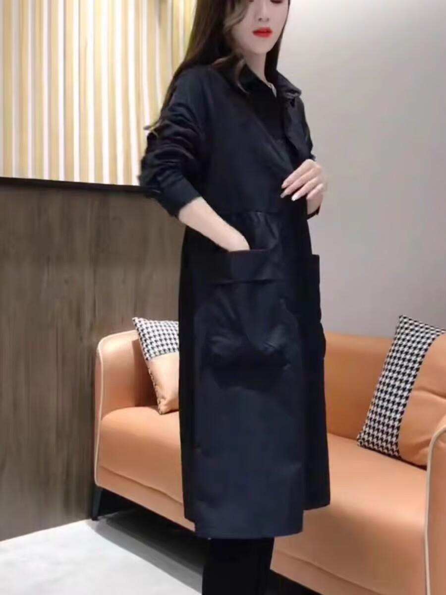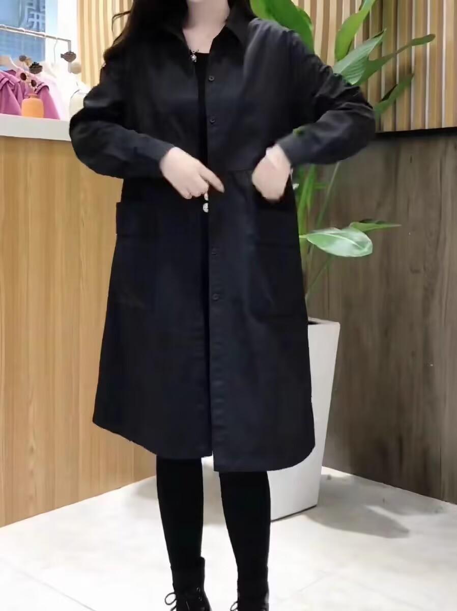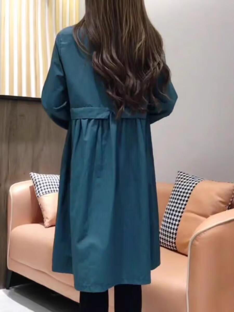 Abrigo trench de camisa de color sólido de longitud media 2025 nuevo estilo coreano suelto moda estilo extranjero versátil abrigo delgado para mujer moderno