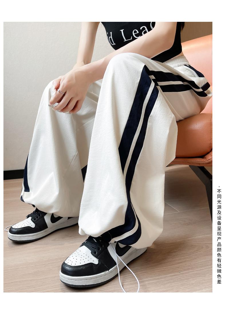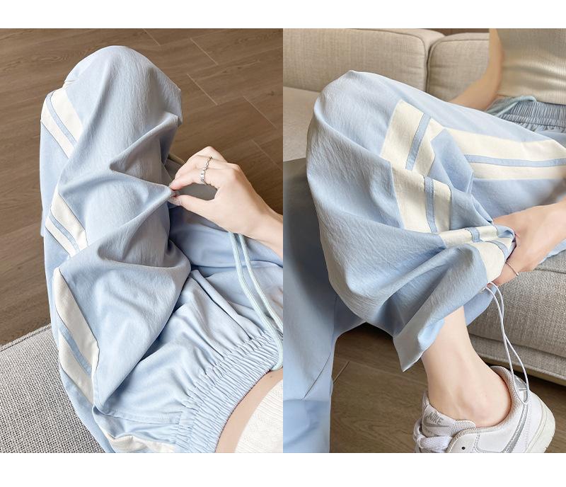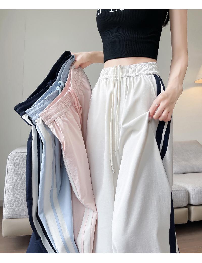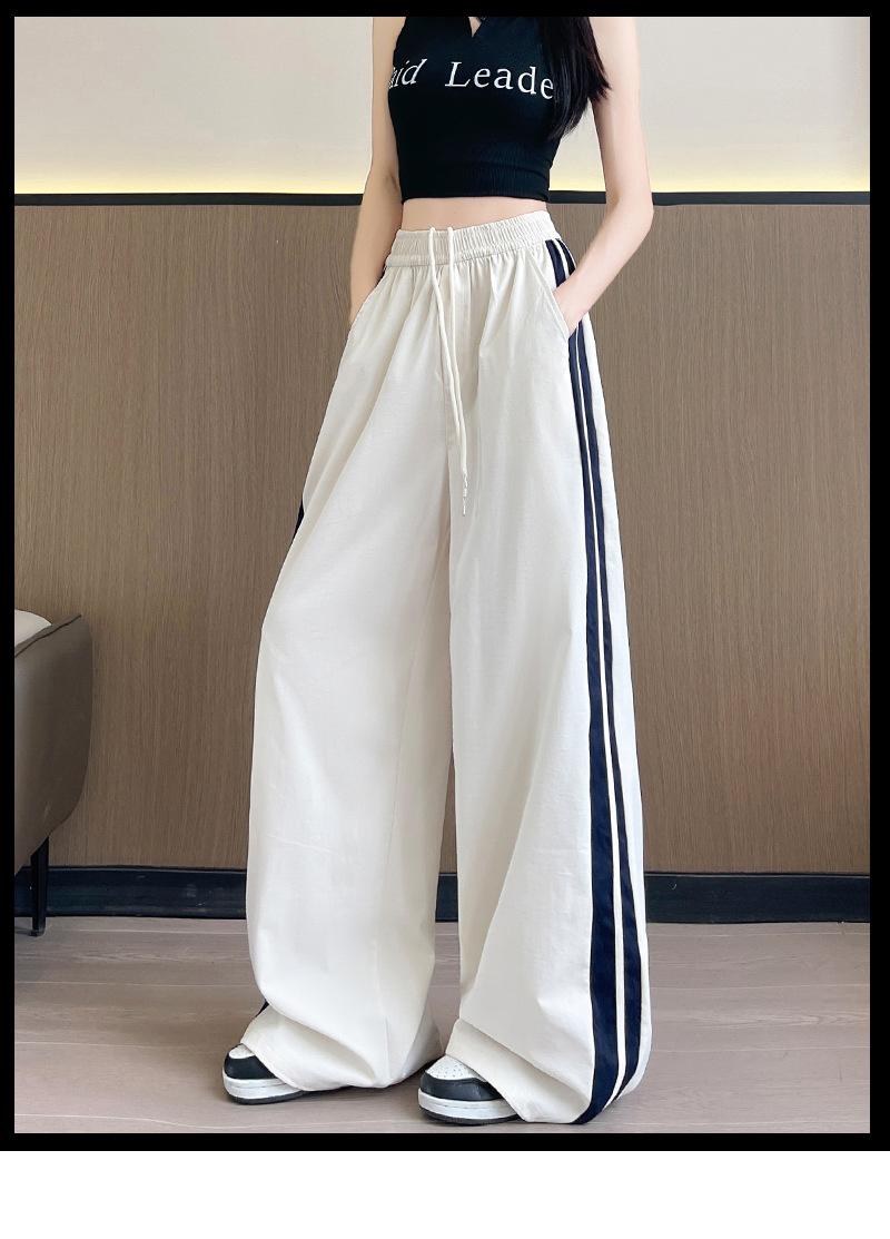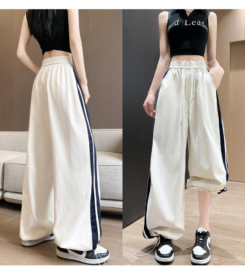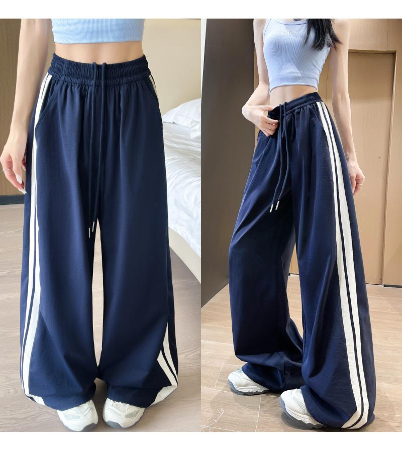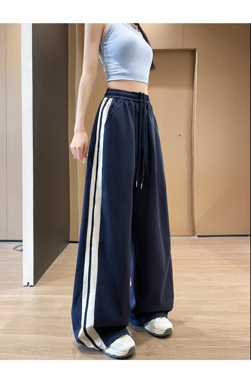 Pantalones Deportivos Rayados de Seda de Hielo para Mujer Verano Delgados 2025 Nuevos Caída Sueltos Pierna Recta Casual Joggers Pierna Ancha Pantalones Cargo