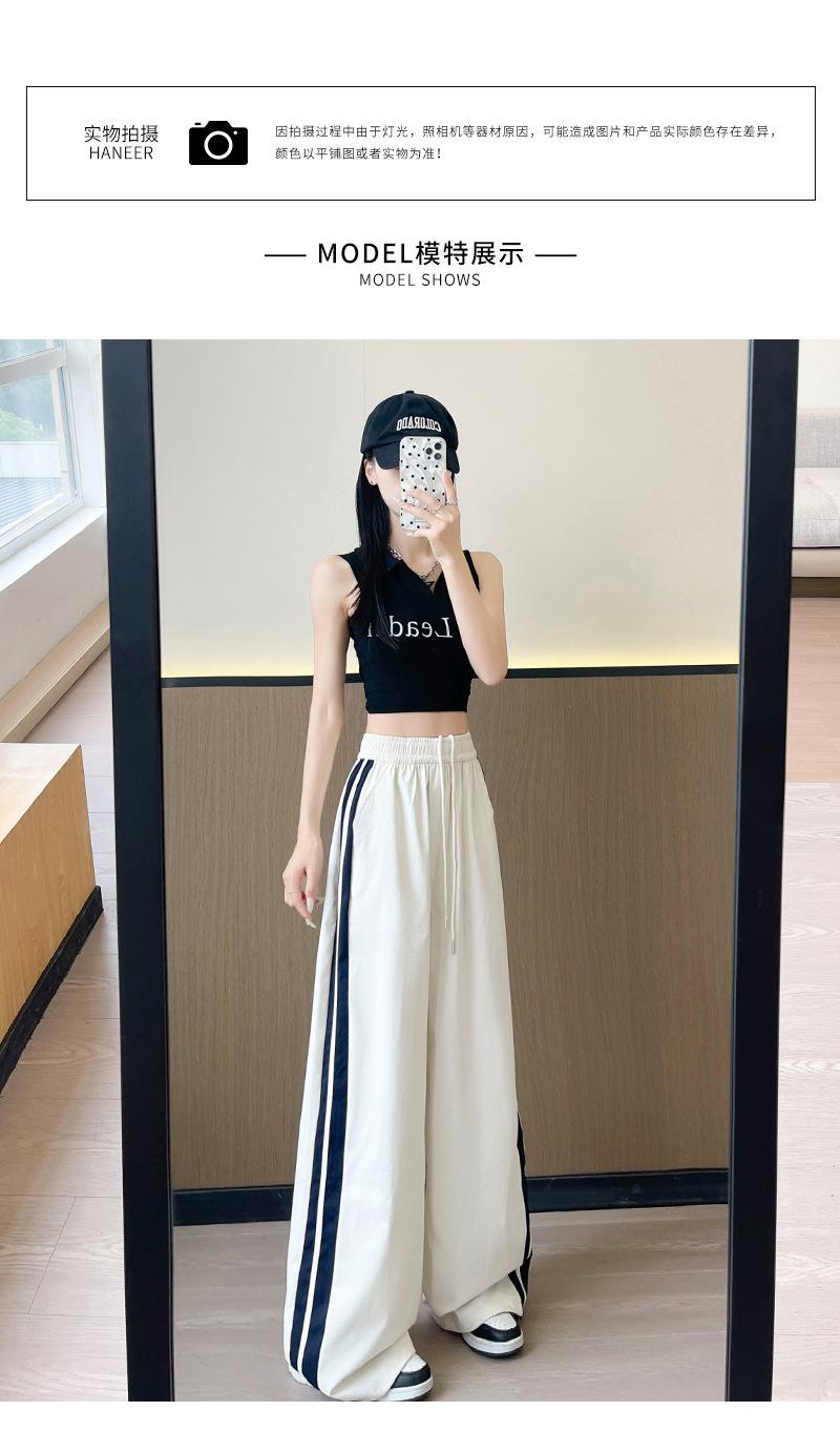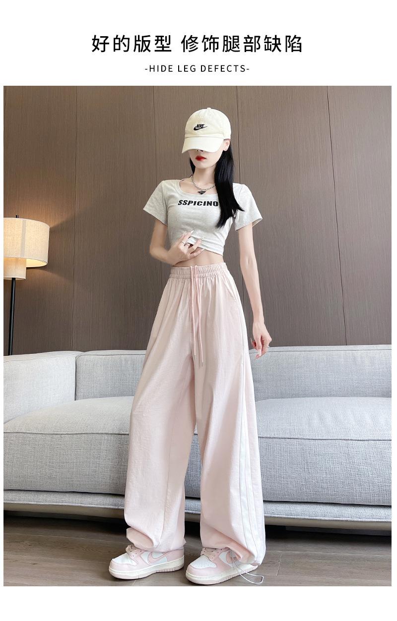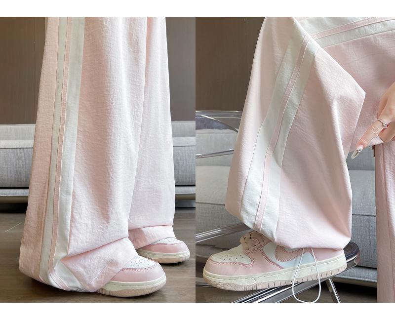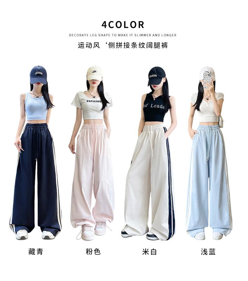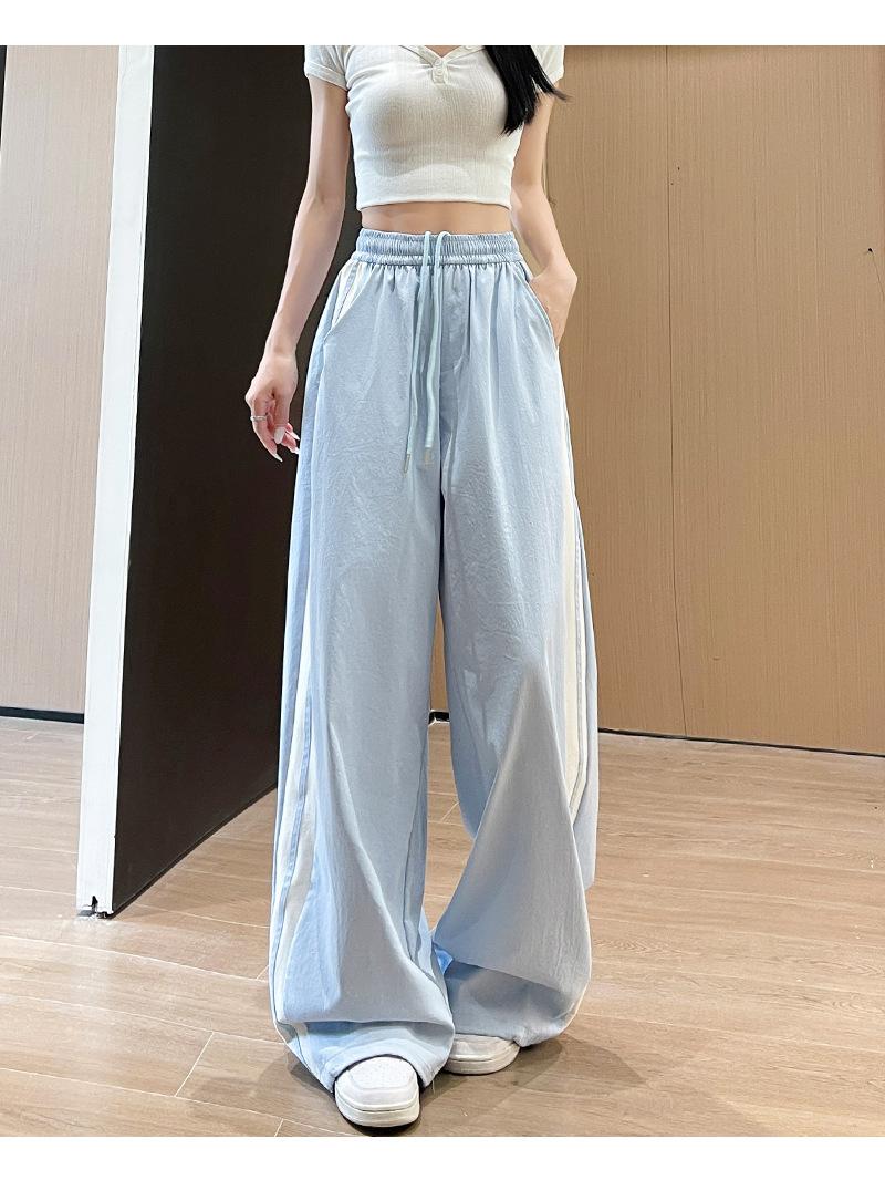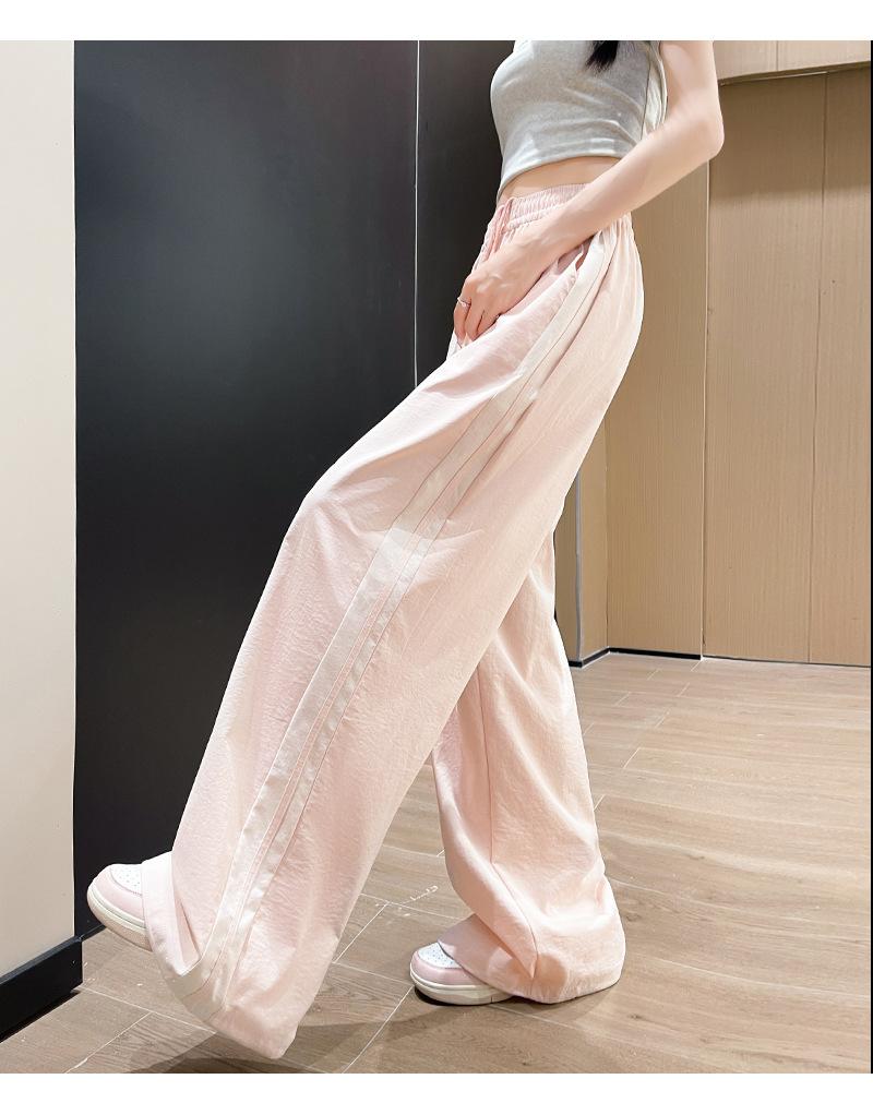 Pantalones Deportivos Rayados de Seda de Hielo para Mujer Verano Delgados 2025 Nuevos Caída Sueltos Pierna Recta Casual Joggers Pierna Ancha Pantalones Cargo