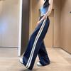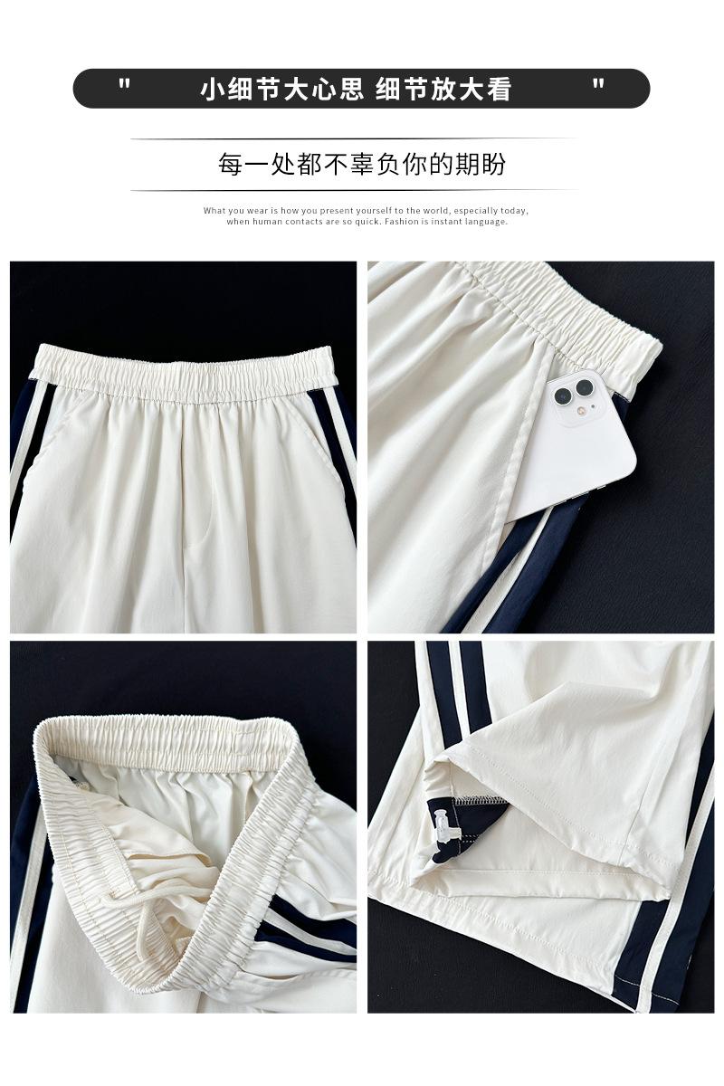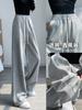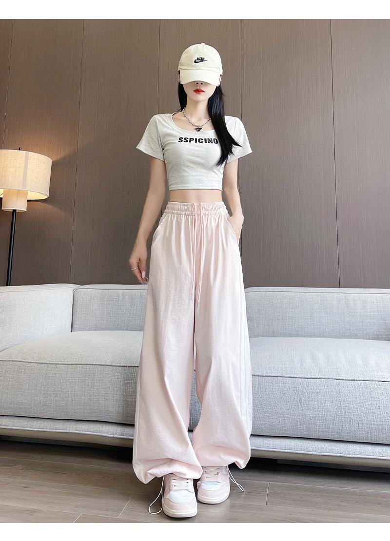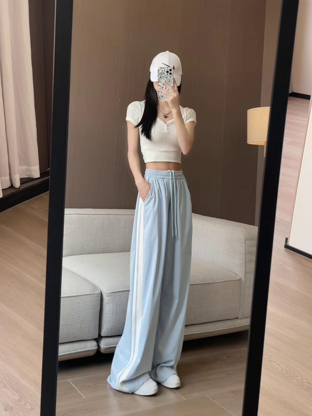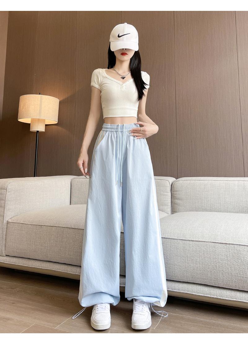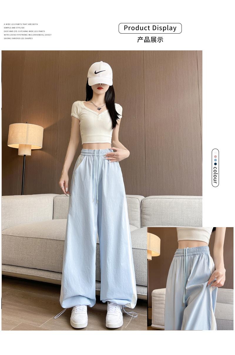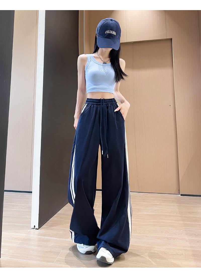 Pantalones Deportivos Rayados de Seda de Hielo para Mujer Verano Delgados 2025 Nuevos Caída Sueltos Pierna Recta Casual Joggers Pierna Ancha Pantalones Cargo