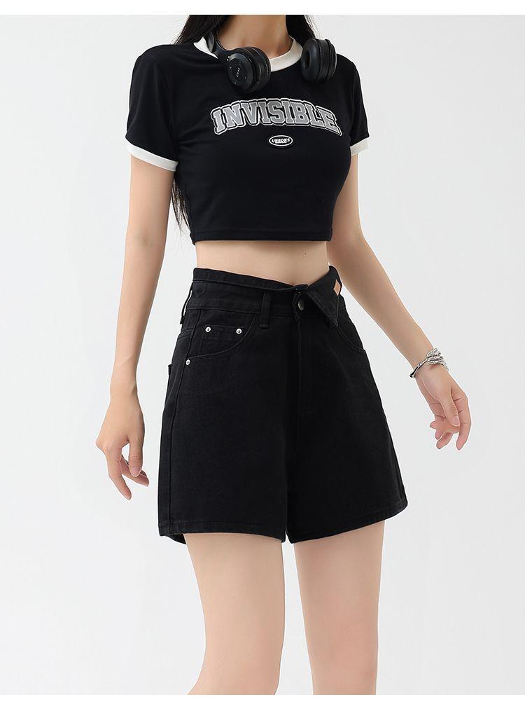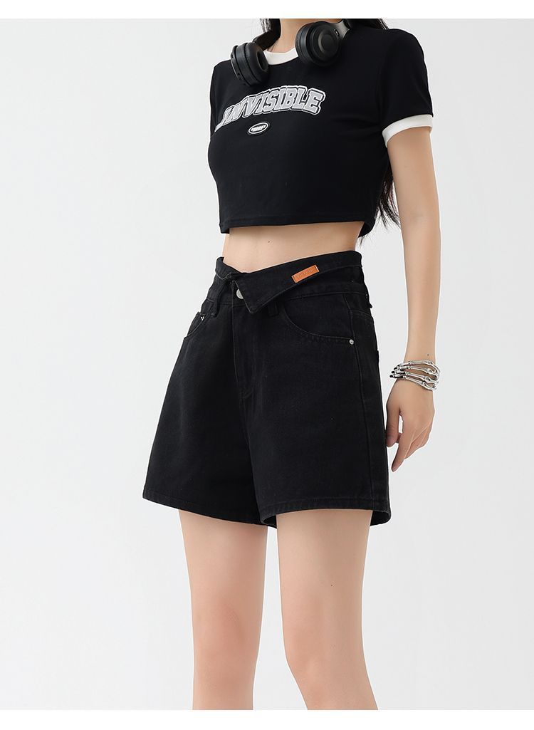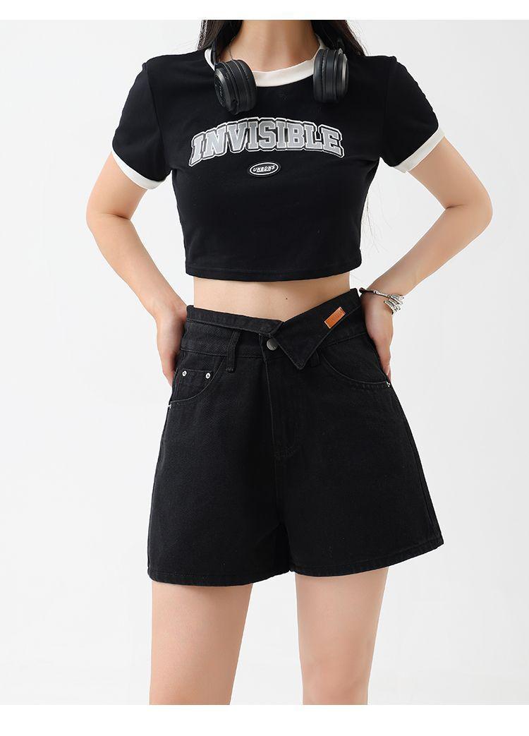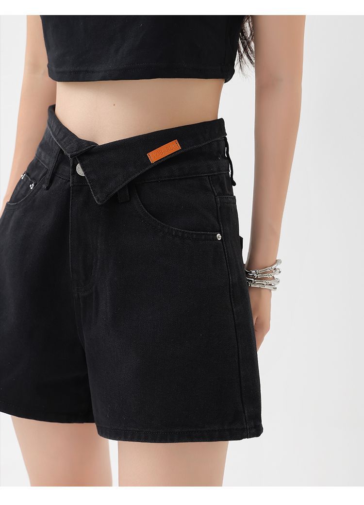 Shorts de Mezclilla Sexy de Cintura Alta y Corte Slim para Personas Pequeñas 2025 Asimétricos Sexy Delgados Línea A Pantalones Cortos Hot para Mujer con Elasticidad