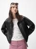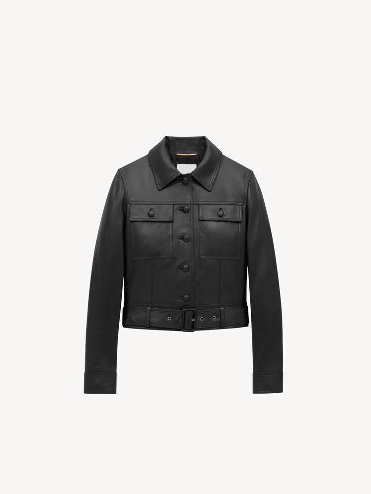 3184-1 Abrigo de Cuero Genuino Primavera Nuevo Solapa de Piel de Oveja Ropa de Trabajo Corta Bolsillo Grande Cinturón Chaqueta Abrigo Mujer