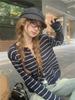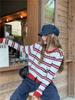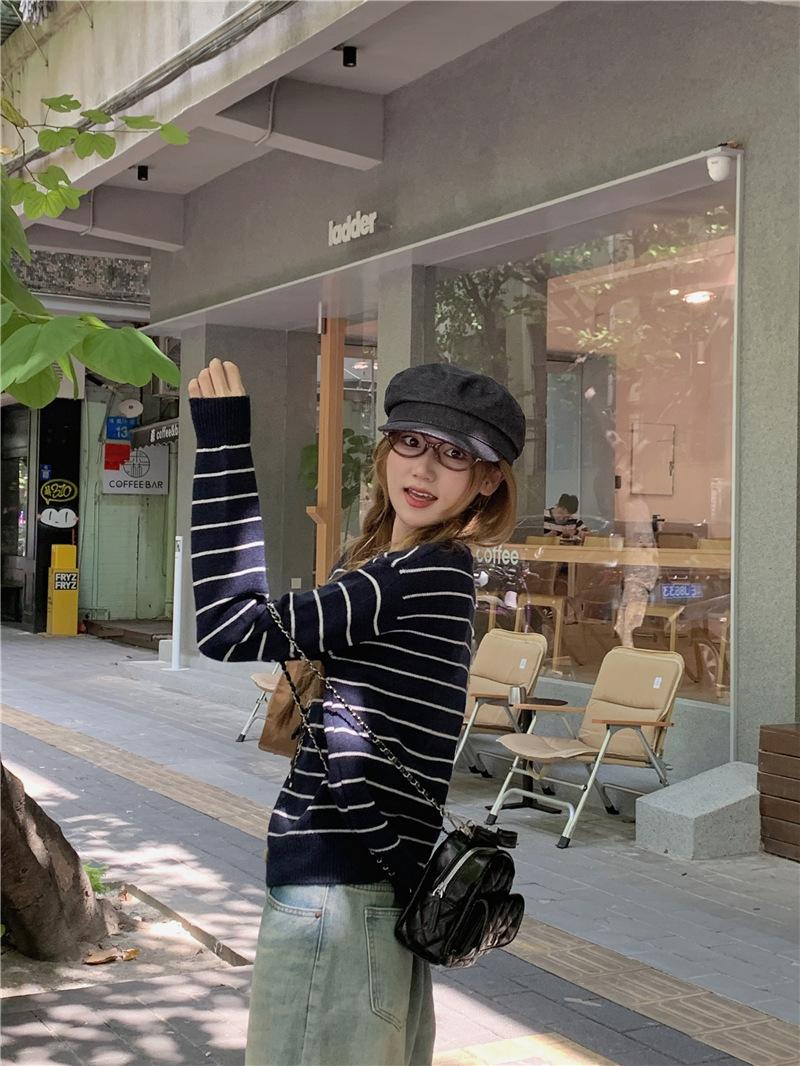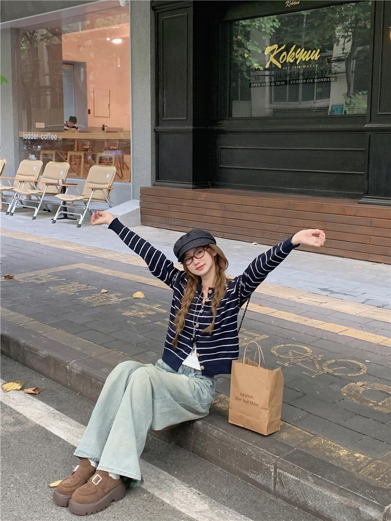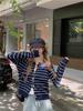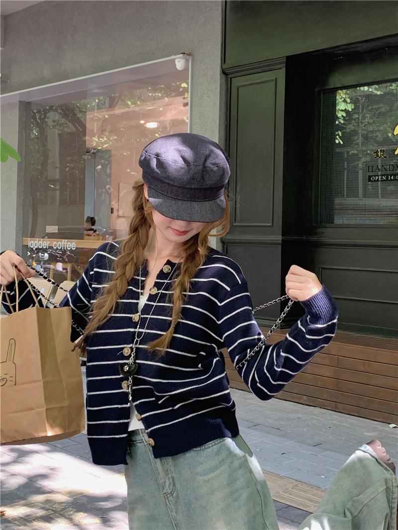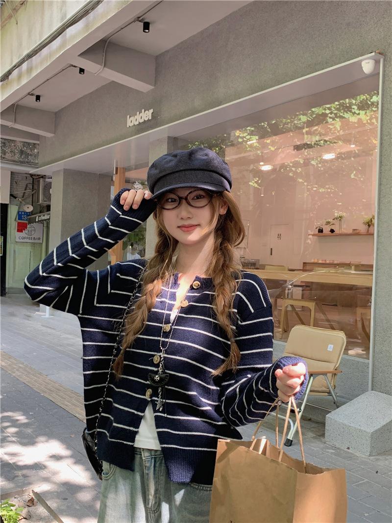 Foto Real Primavera y Otoño Nuevo Estilo Coreano Casual Versátil Cárdigan de Punto Rayado Ropa de Mujer