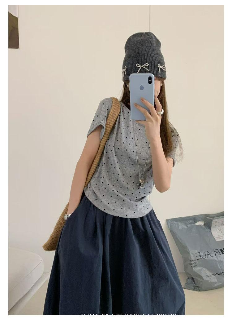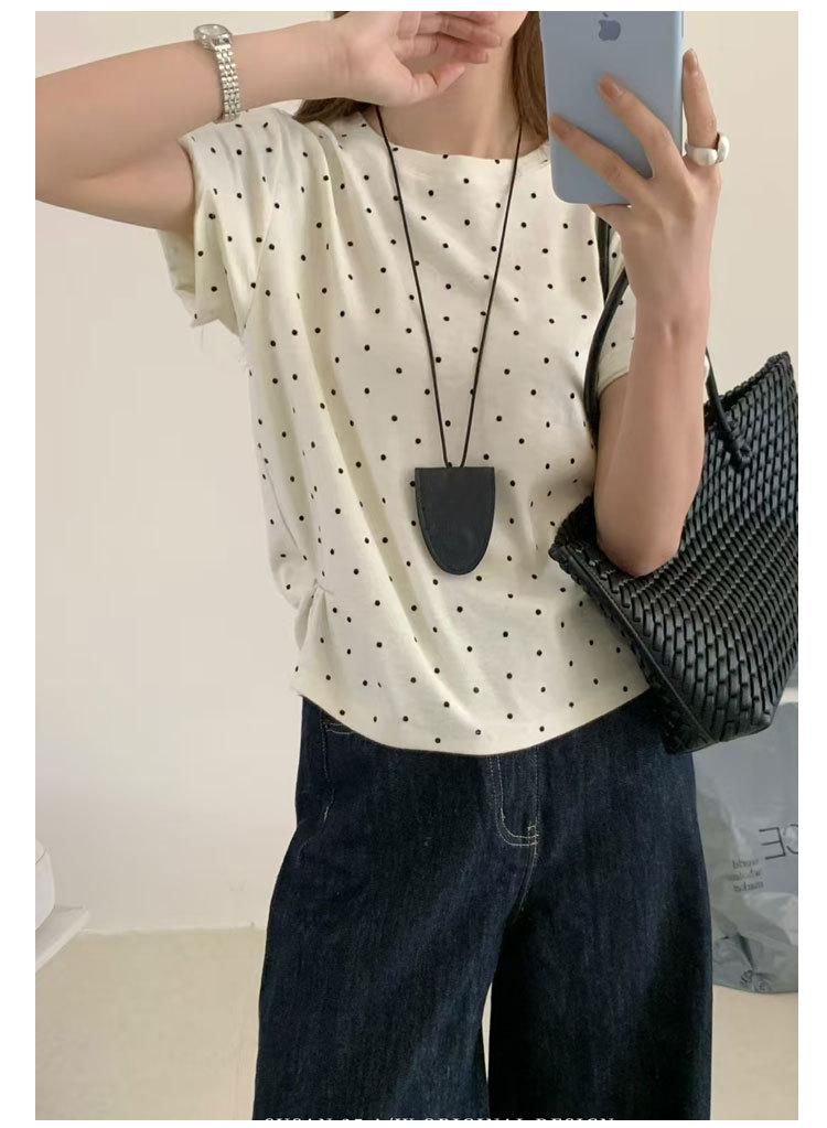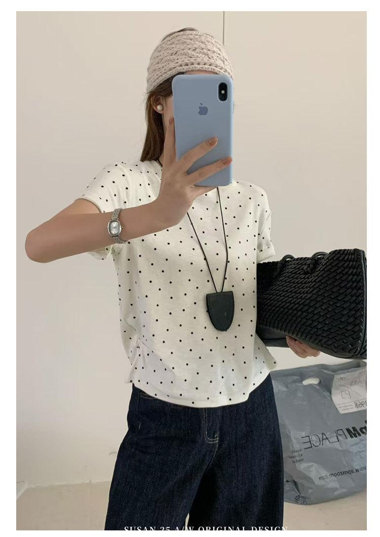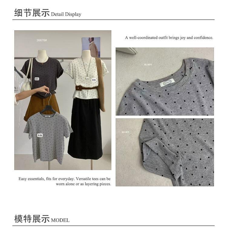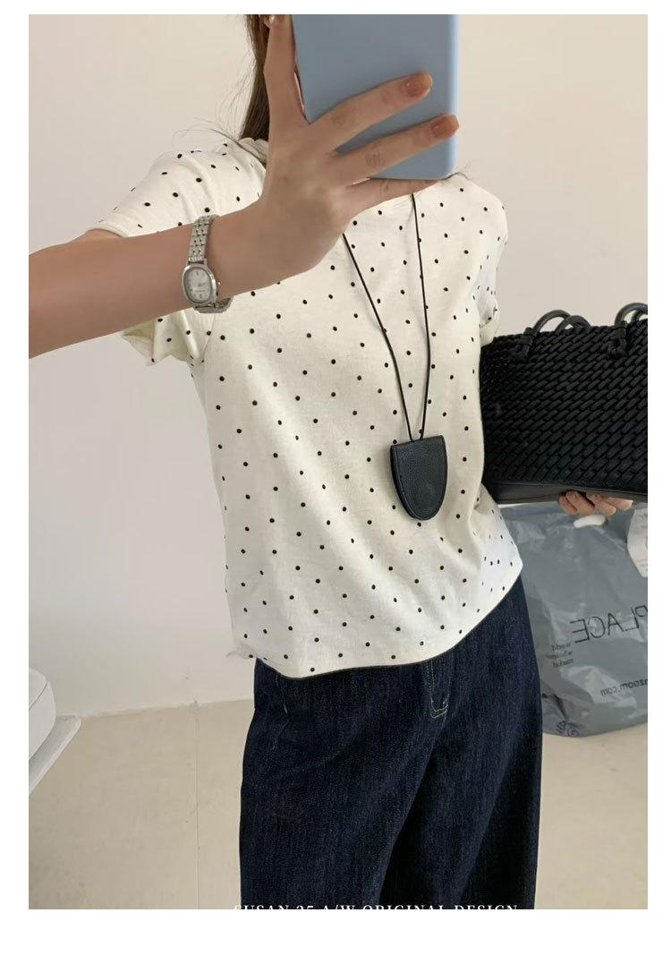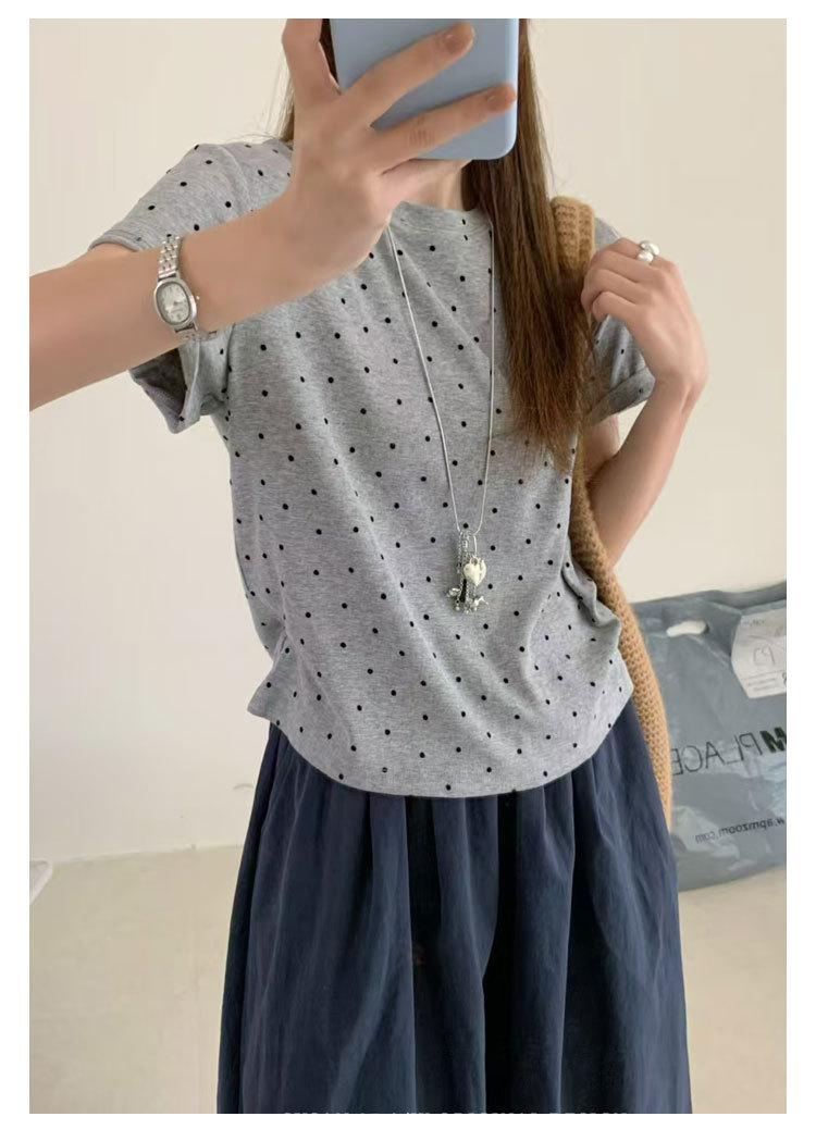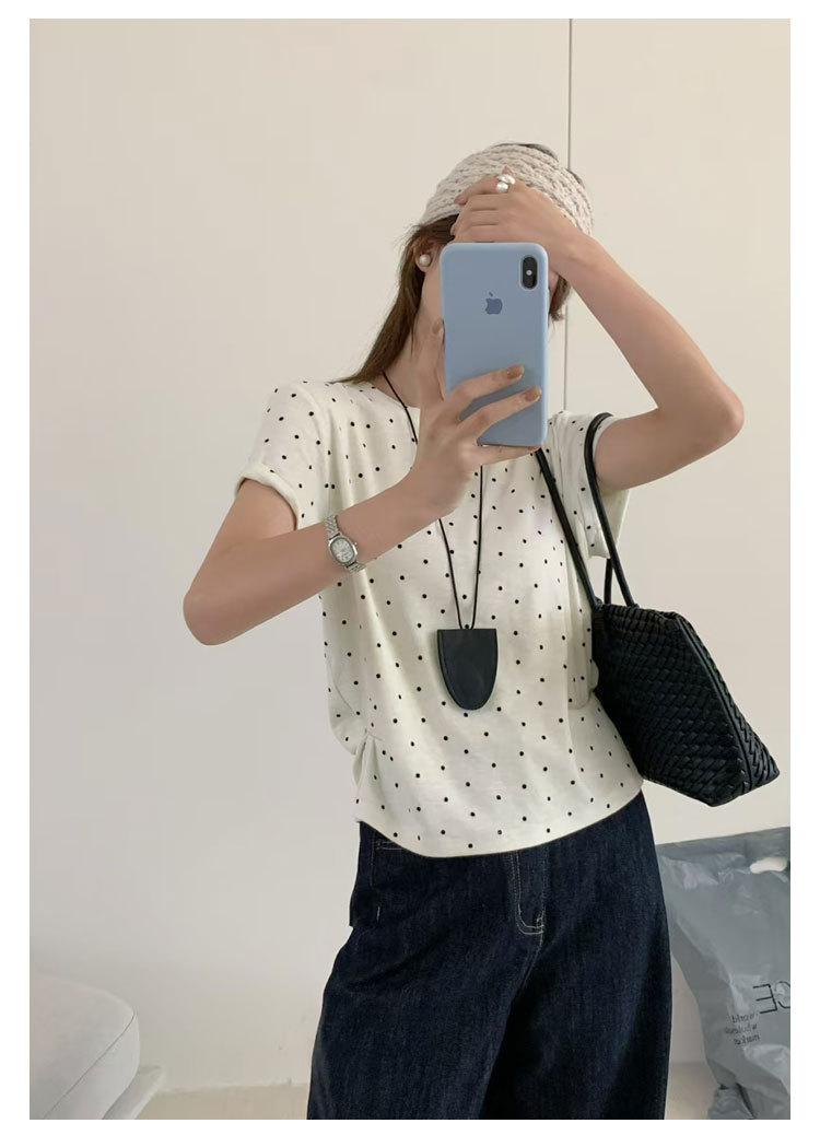 8.13 Camiseta Coreana Retro de Lunares de Manga Corta Mujer 2025 Principios de Otoño Nuevo Top Casual Versátil 26678