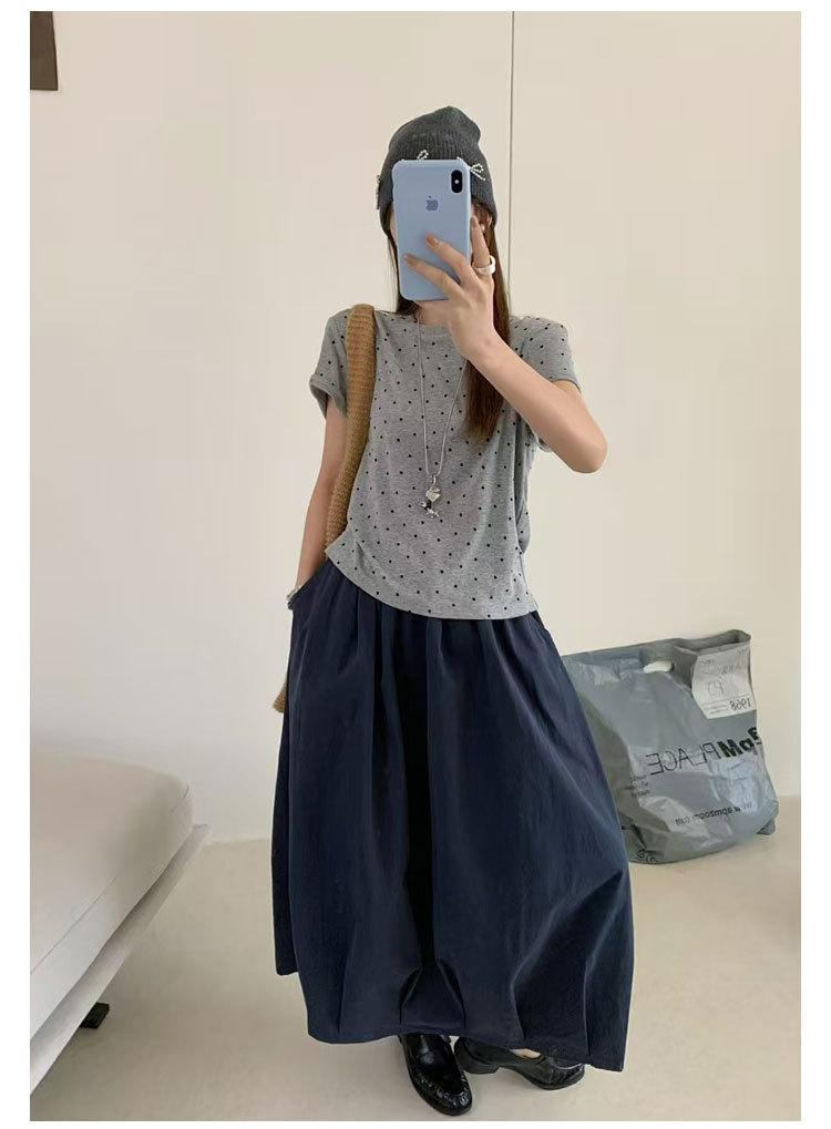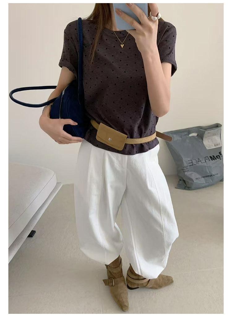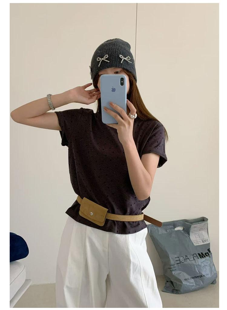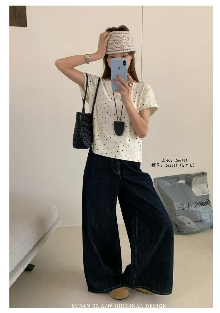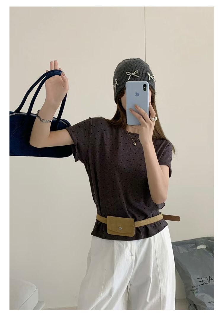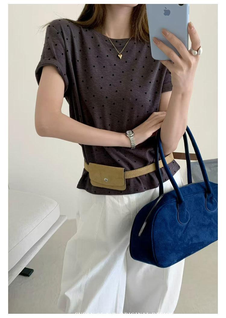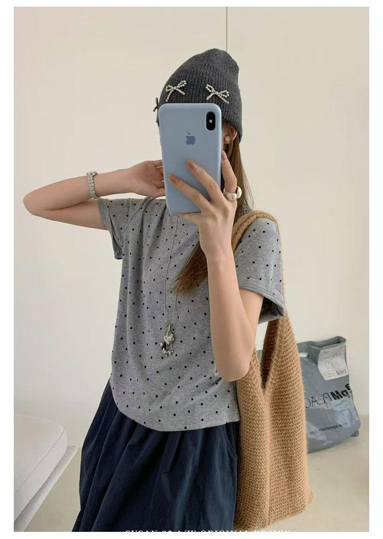 8.13 Camiseta Coreana Retro de Lunares de Manga Corta Mujer 2025 Principios de Otoño Nuevo Top Casual Versátil 26678