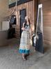 Foto real primavera y verano 2025 nuevo estilo vintage vacacional blusa de crochet calado traje de vestido con tirantes azul pavo