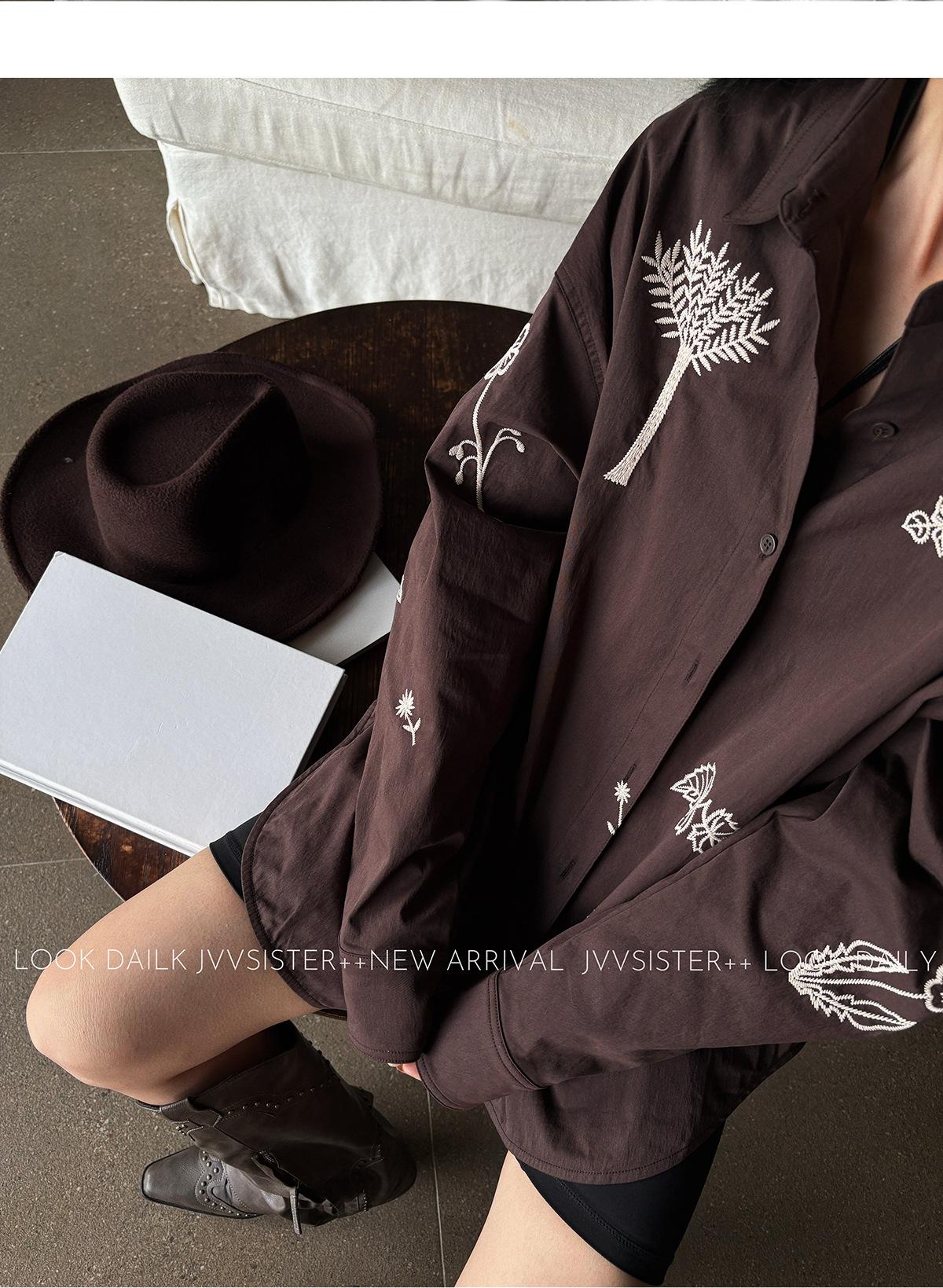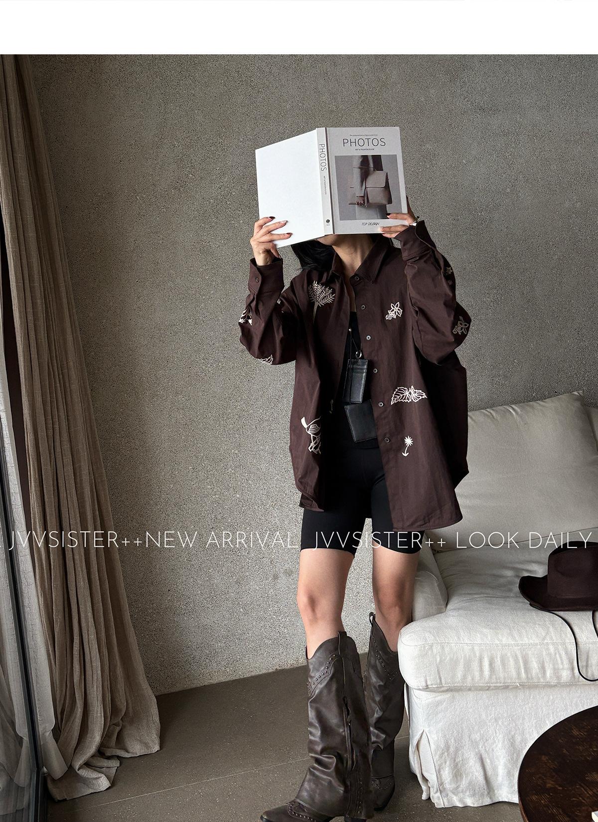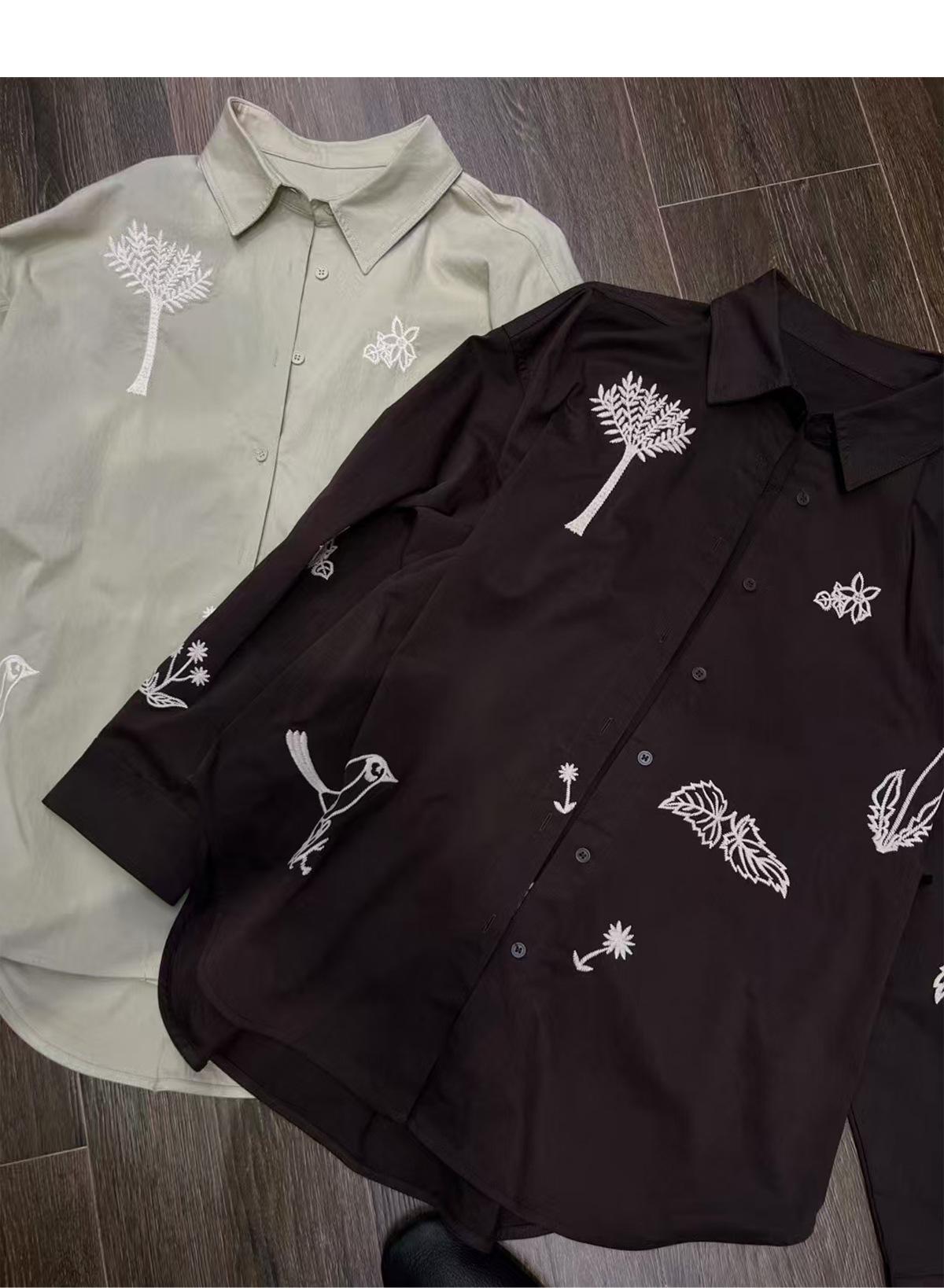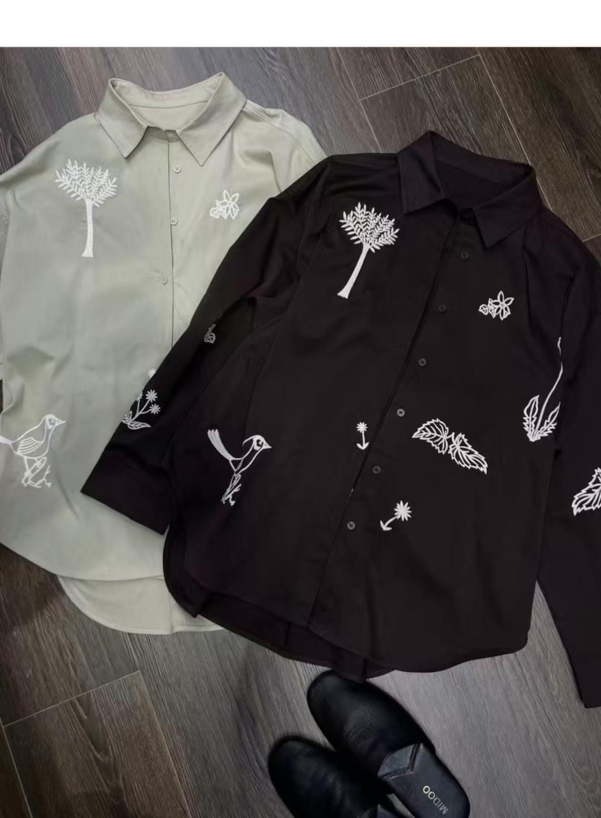 JVV Trece Líneas 2025 Otoño Nuevo Sentido del Diseño Patrón Bordado Camisa Holgada Camisa Casual de Manga Larga 90587