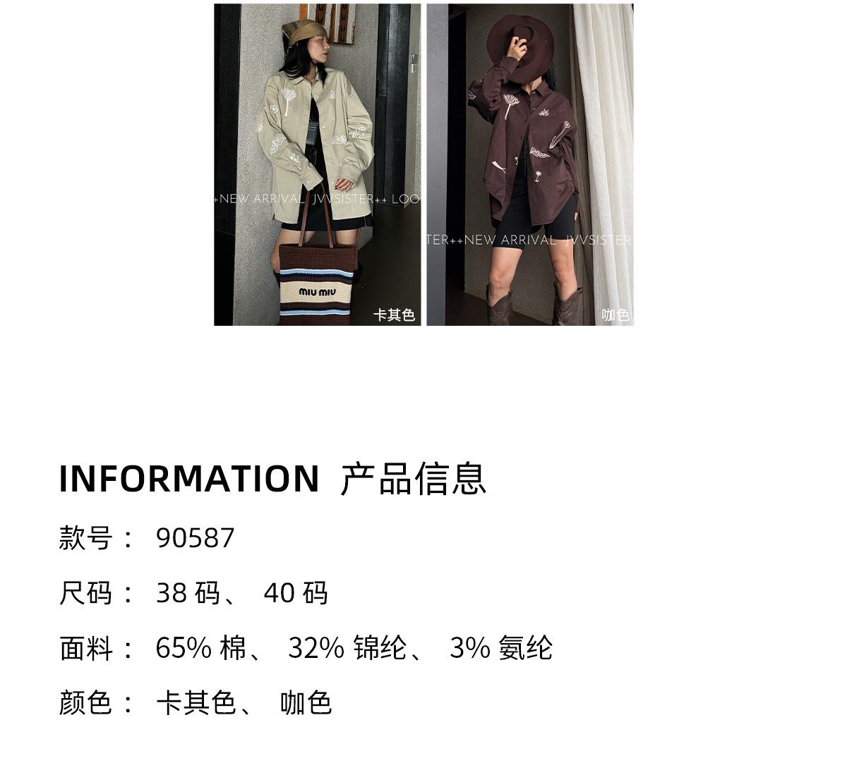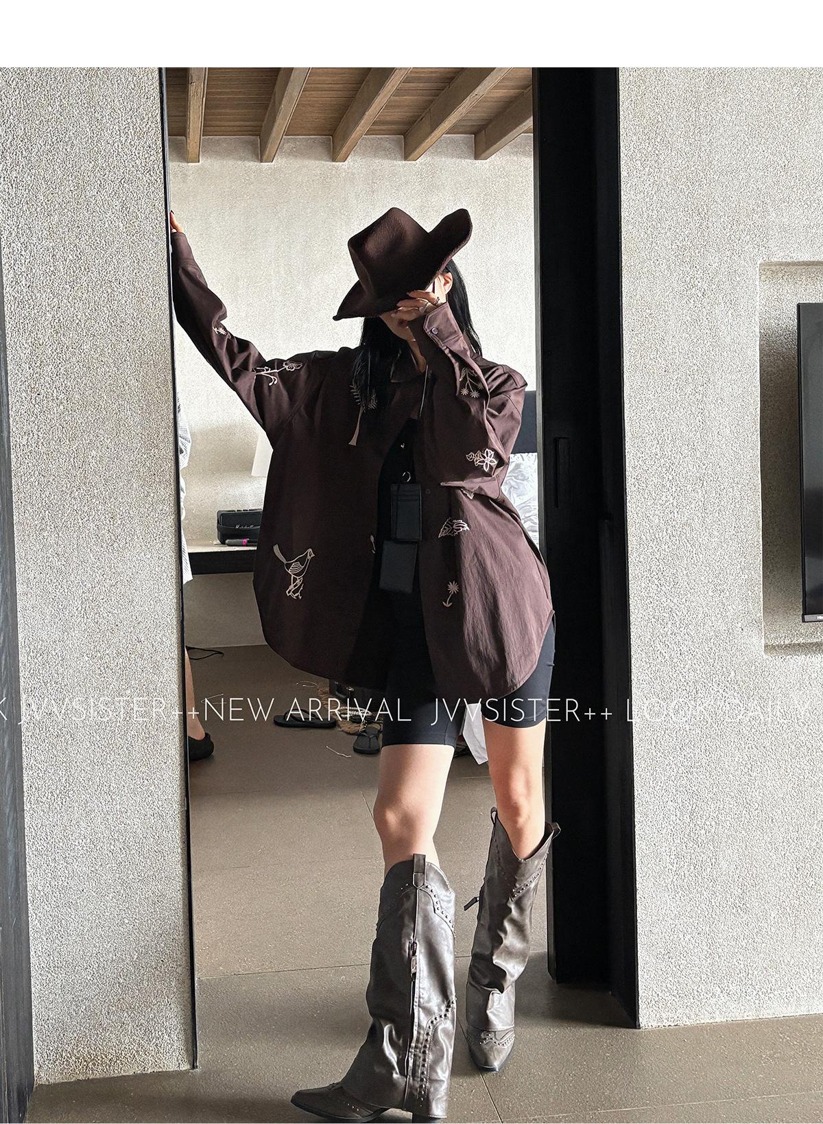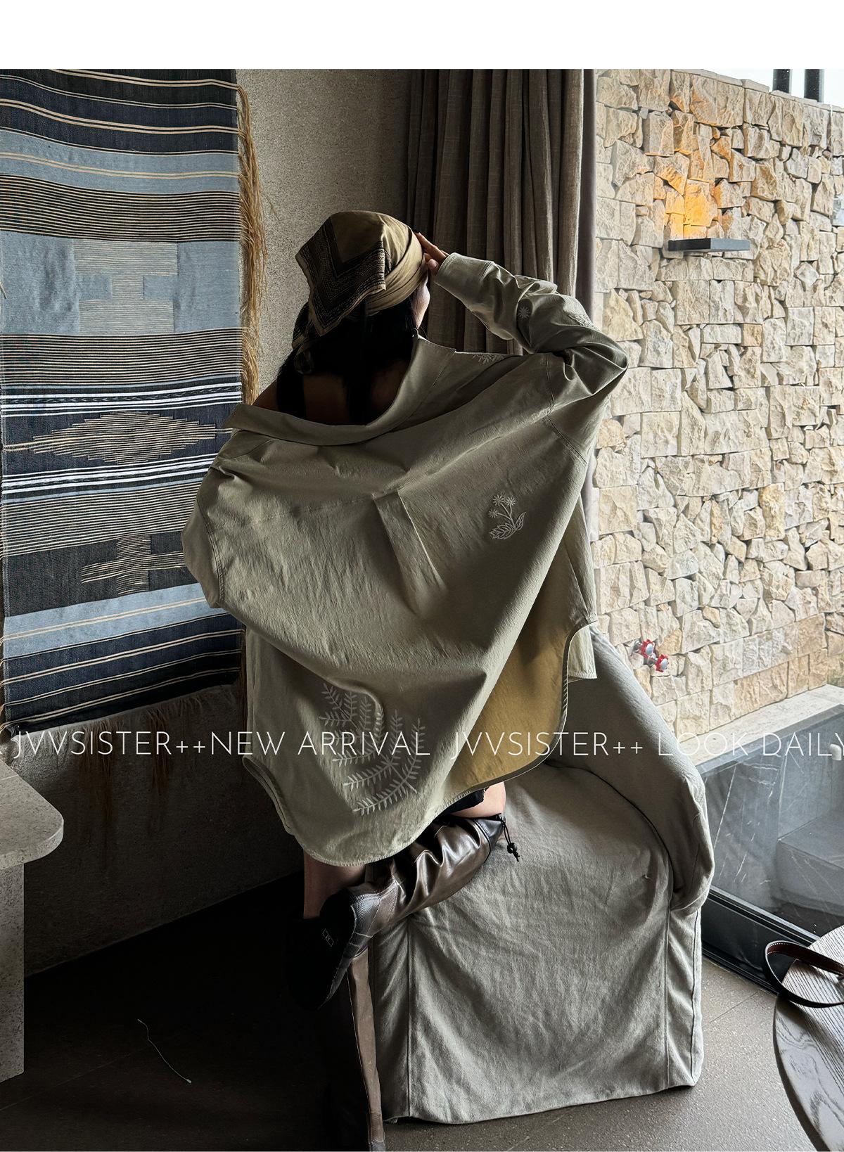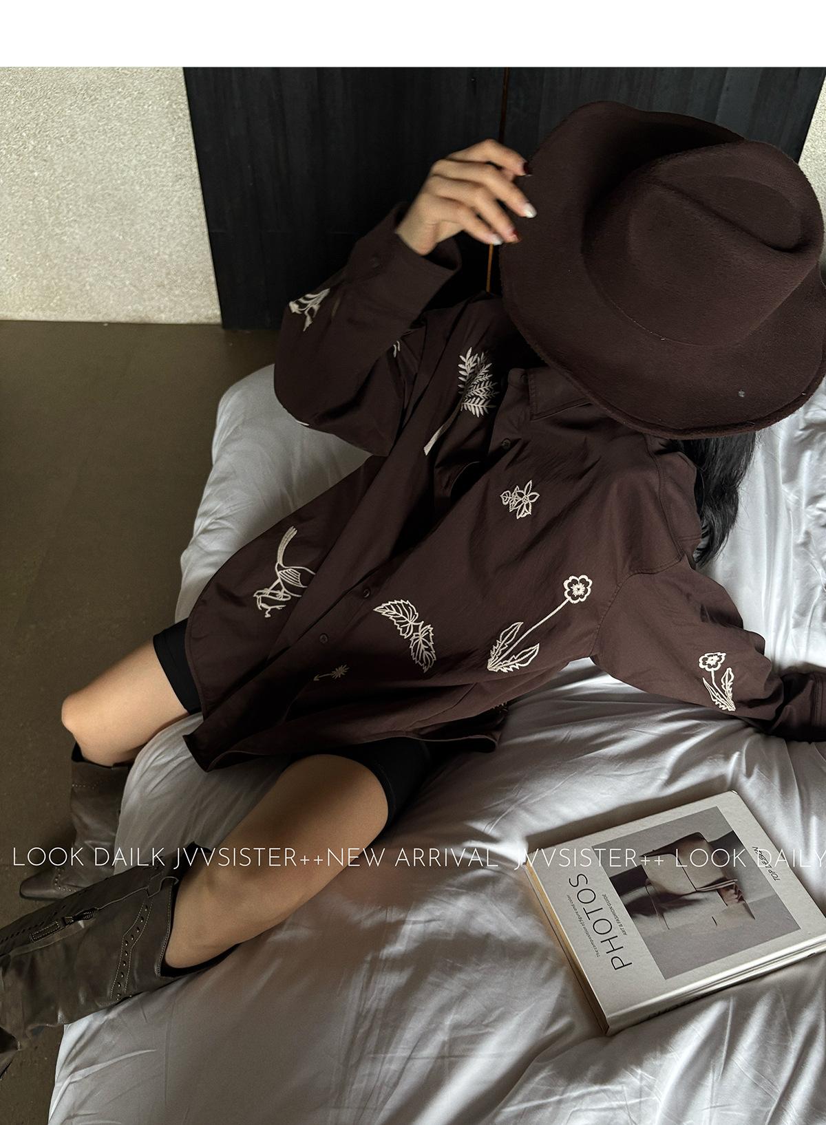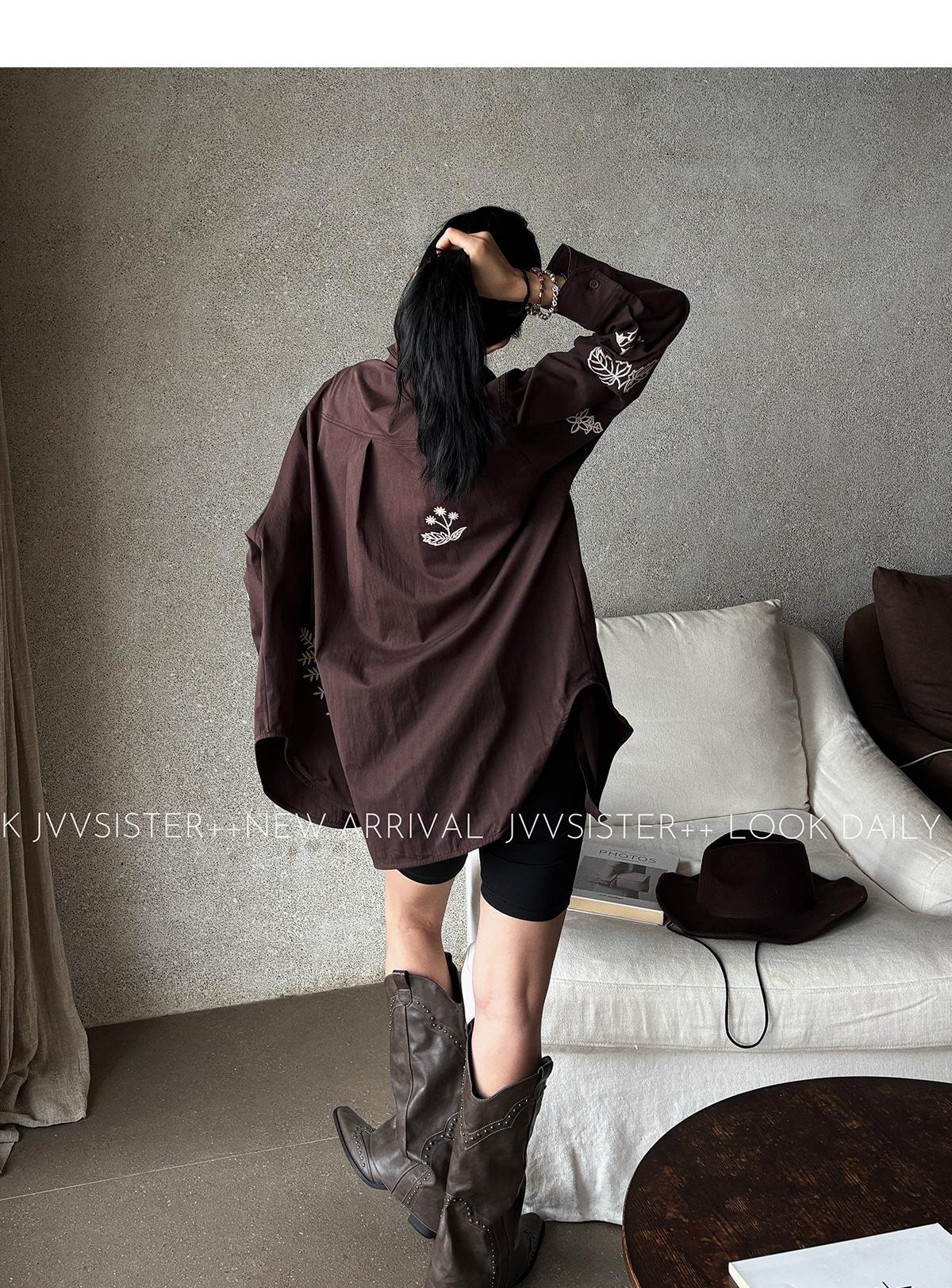 JVV Trece Líneas 2025 Otoño Nuevo Sentido del Diseño Patrón Bordado Camisa Holgada Camisa Casual de Manga Larga 90587