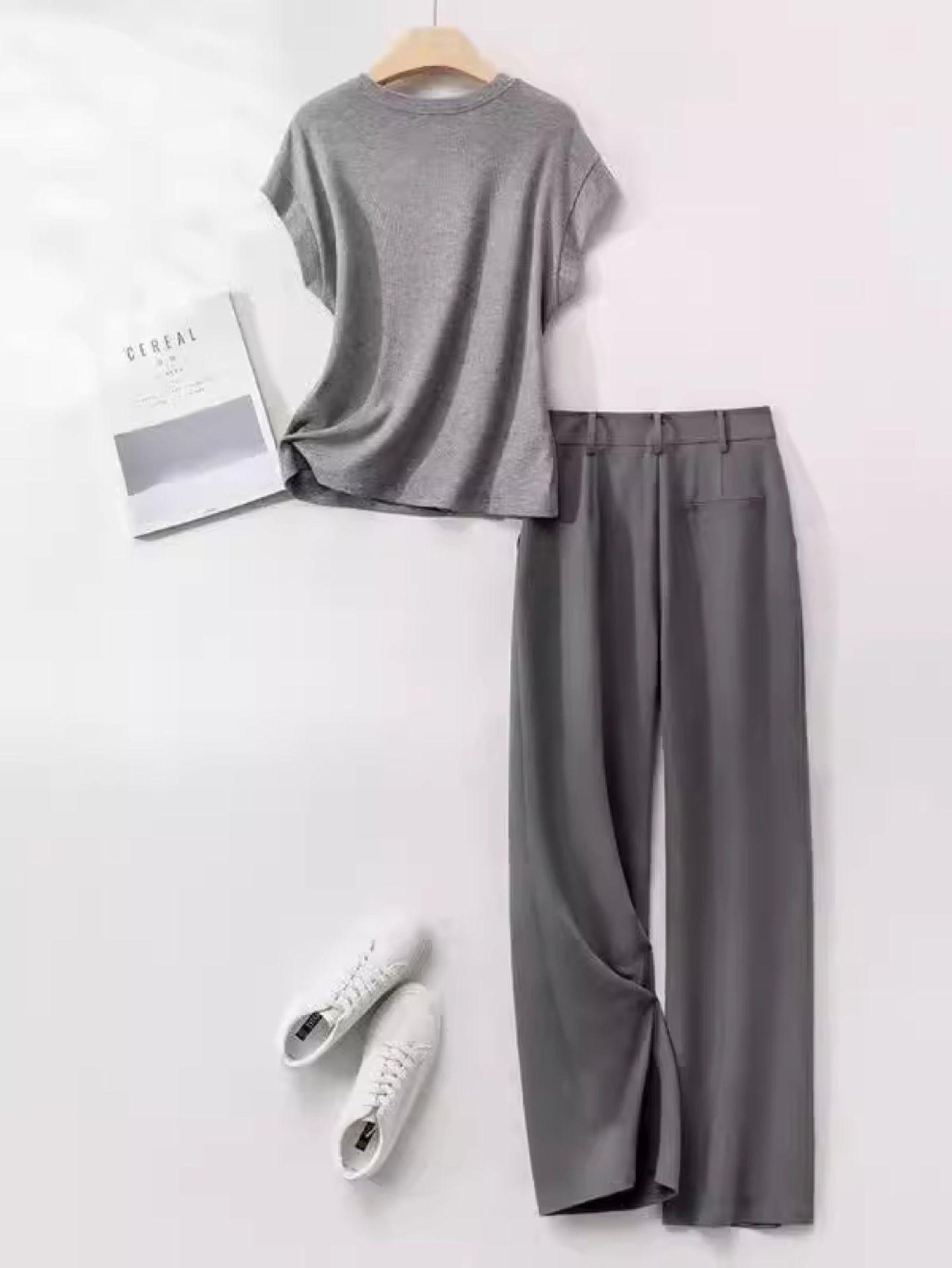 Traje de Moda de Verano 2025 Traje de Pantalón Casual Camiseta de Manga Corta de Alta Gama Pantalones de Pierna Ancha Conjunto de Dos Piezas para Mujer