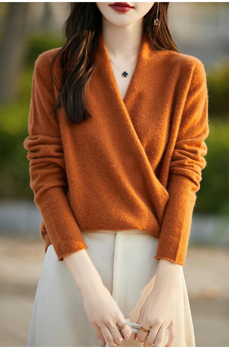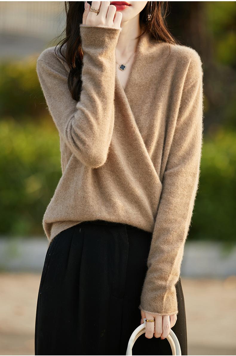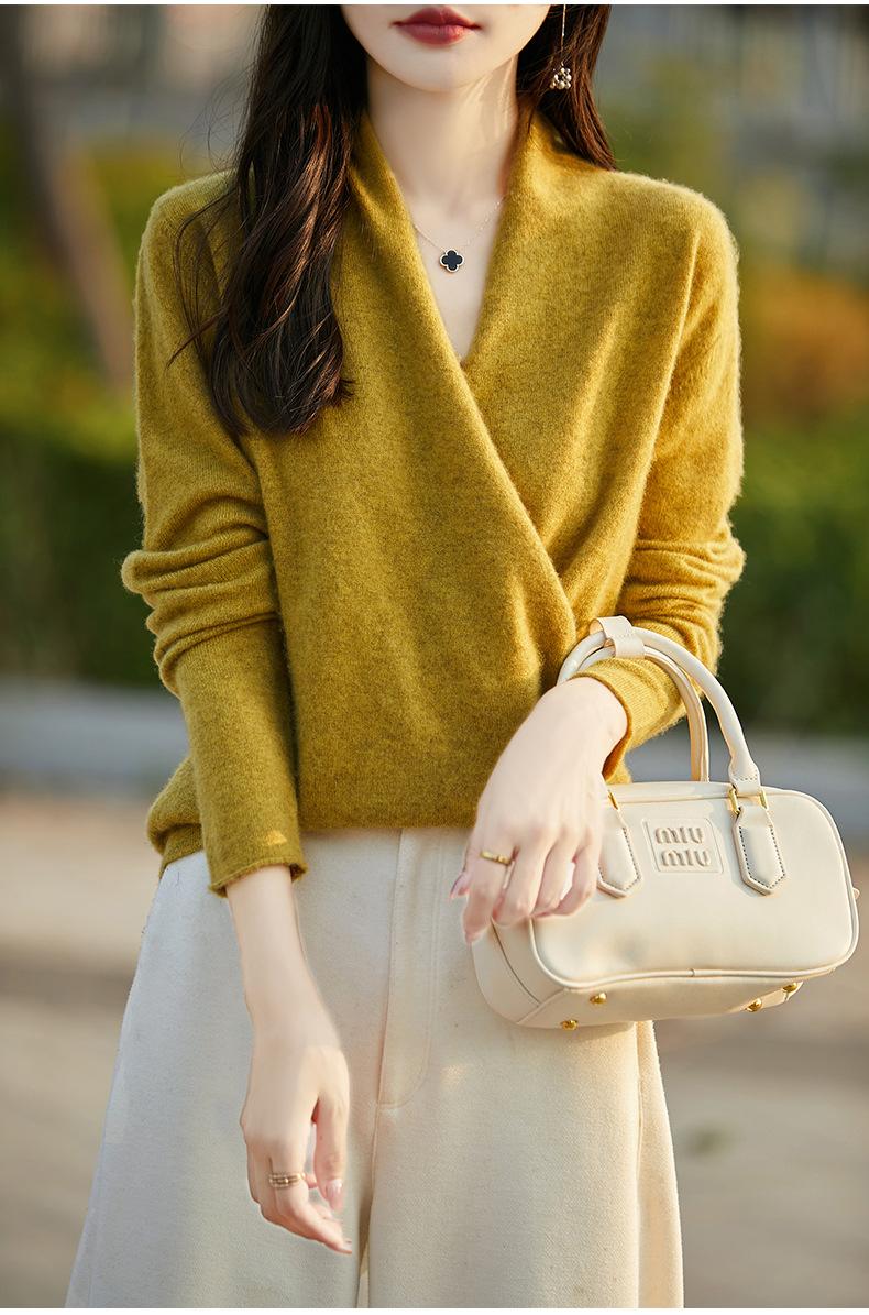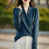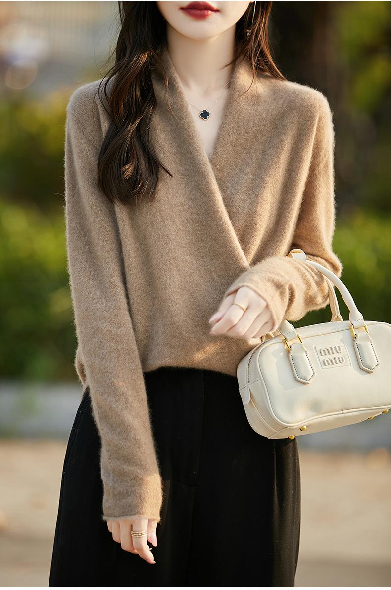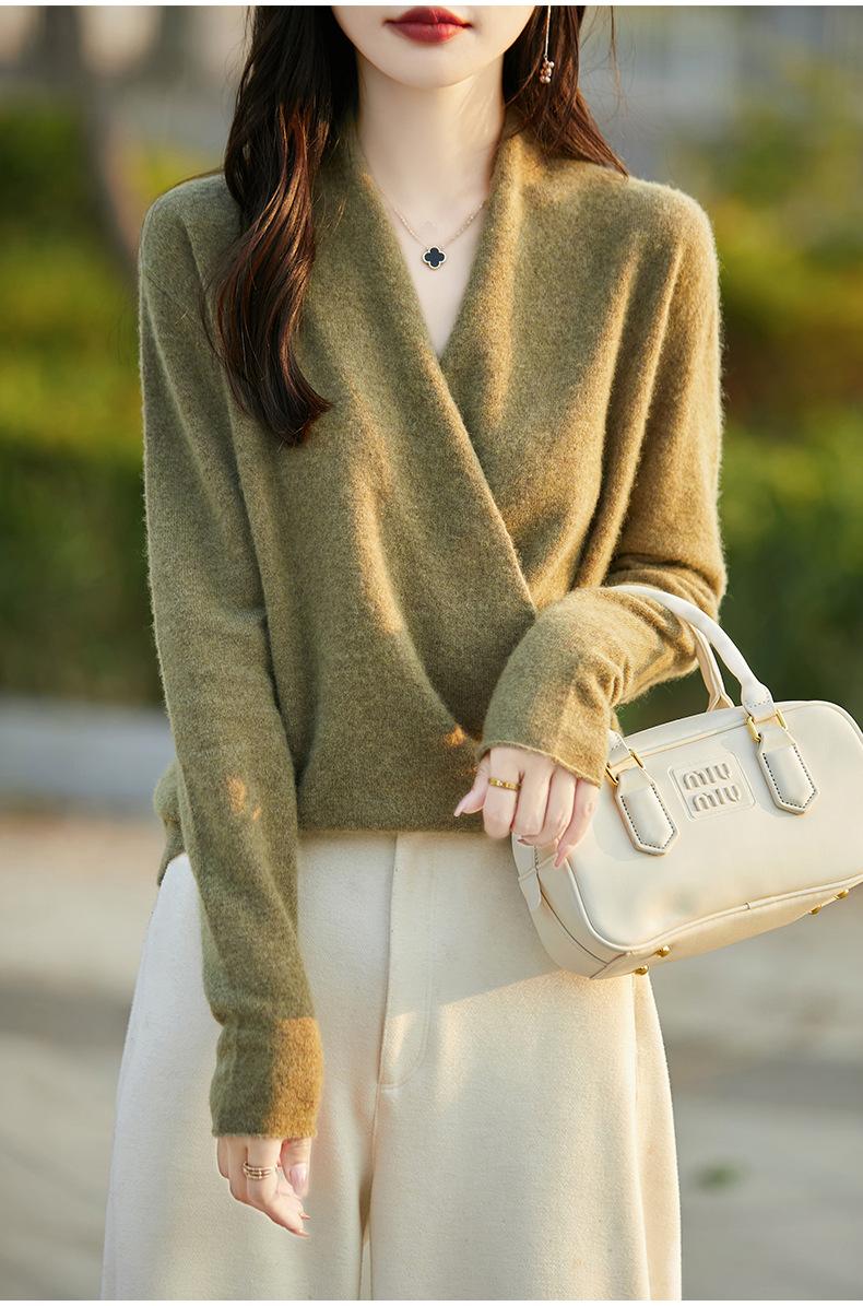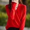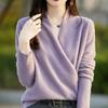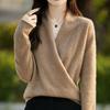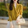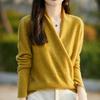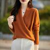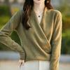 Suéter cárdigan de punto 100% lana pura otoño/invierno 2025 nuevo para mujer corto con cuello en V manga larga suelto cruzado