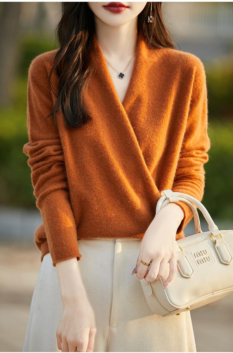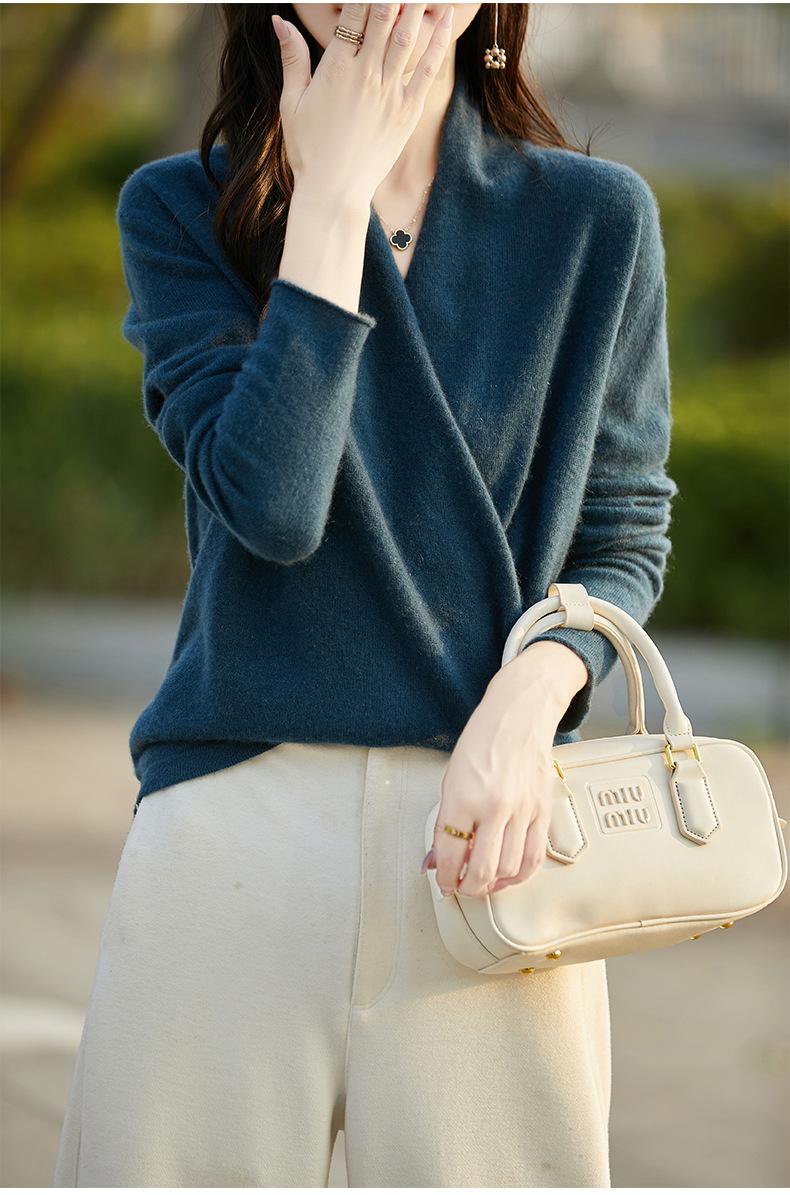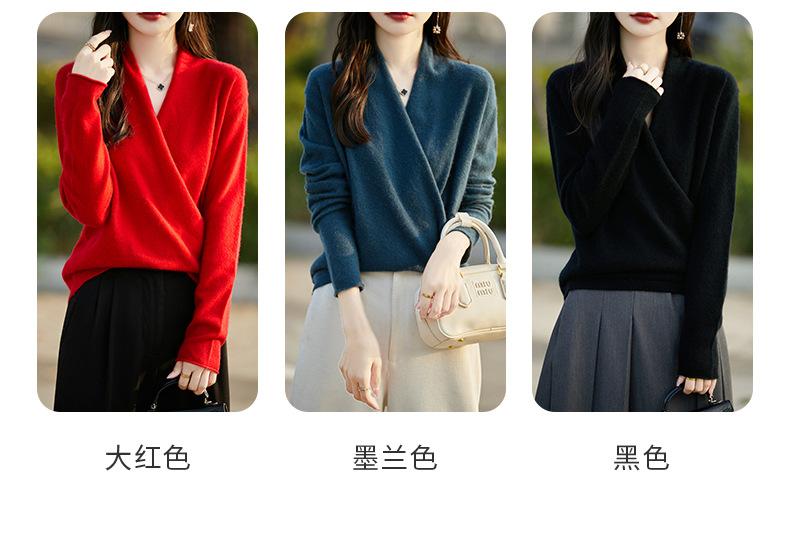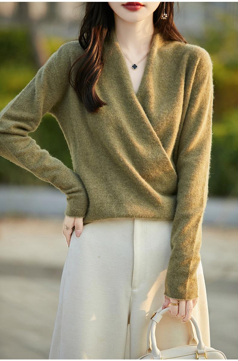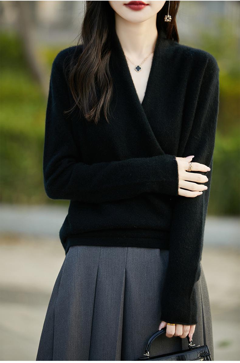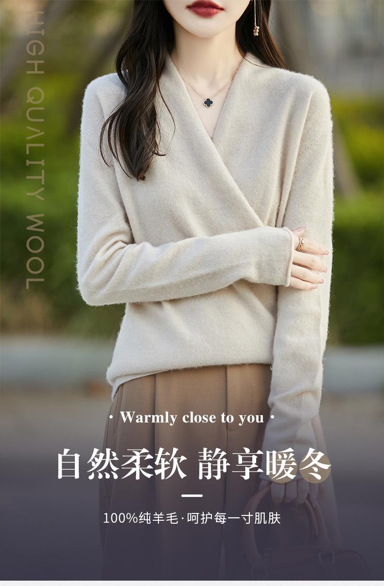 Suéter cárdigan de punto 100% lana pura otoño/invierno 2025 nuevo para mujer corto con cuello en V manga larga suelto cruzado