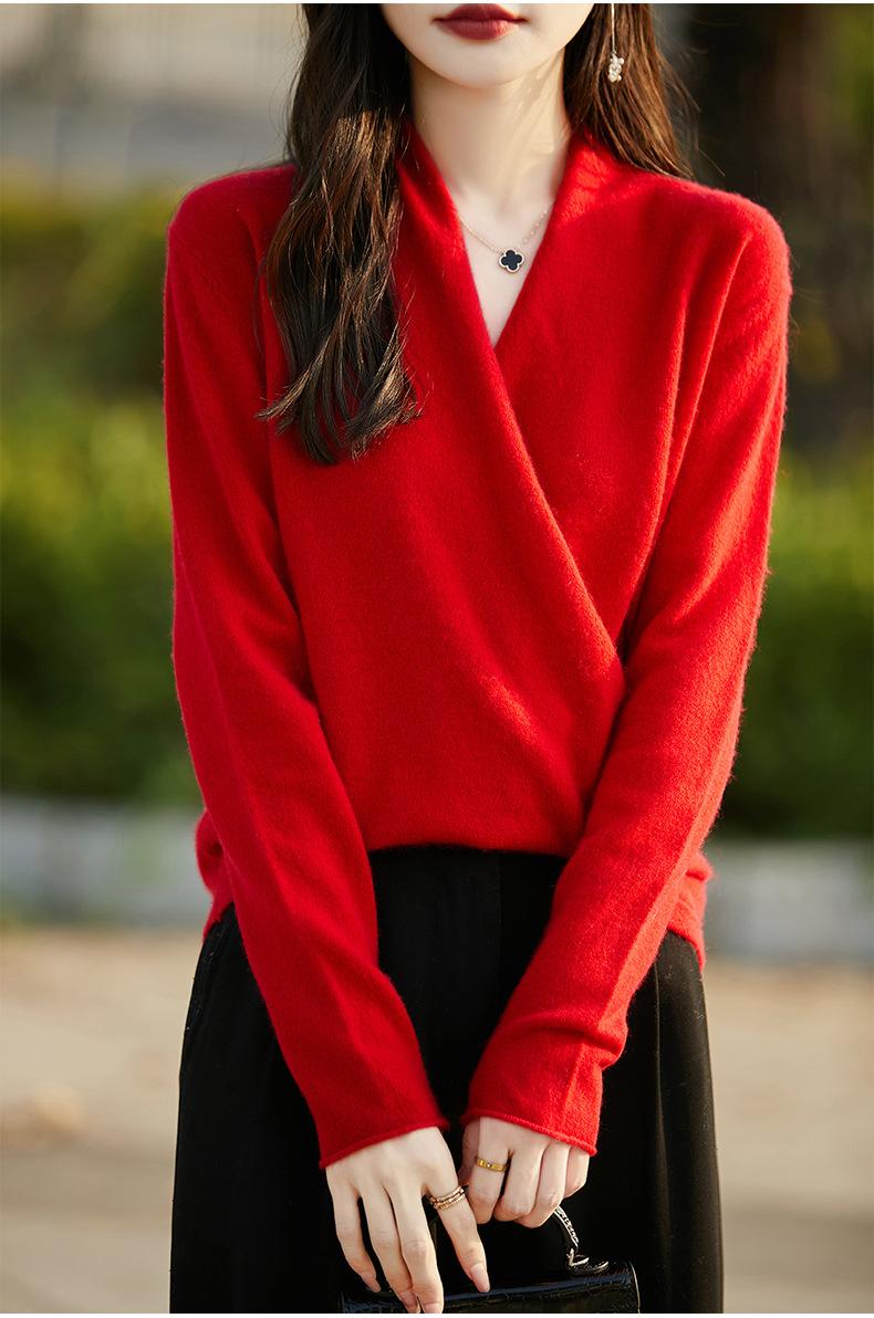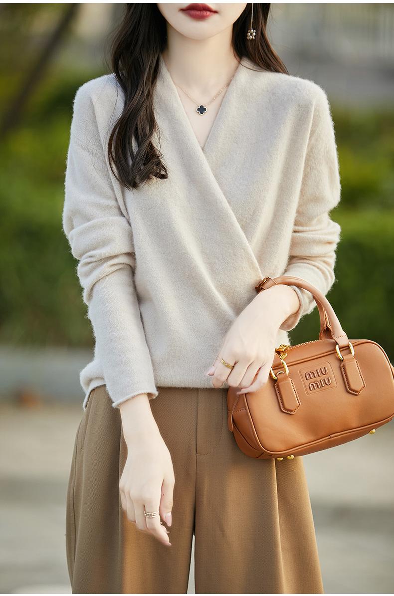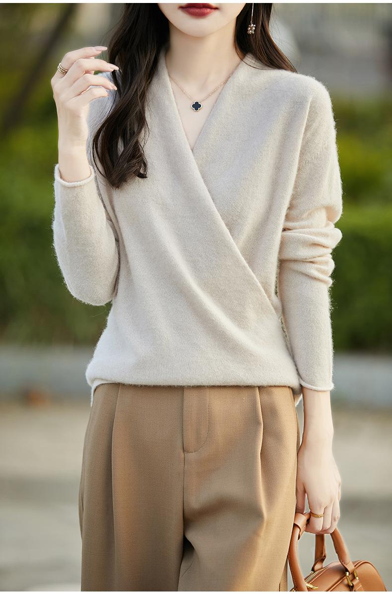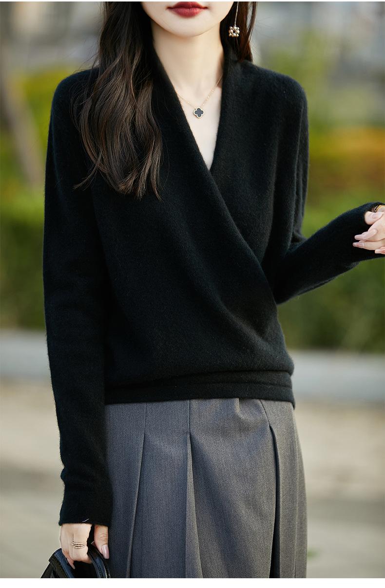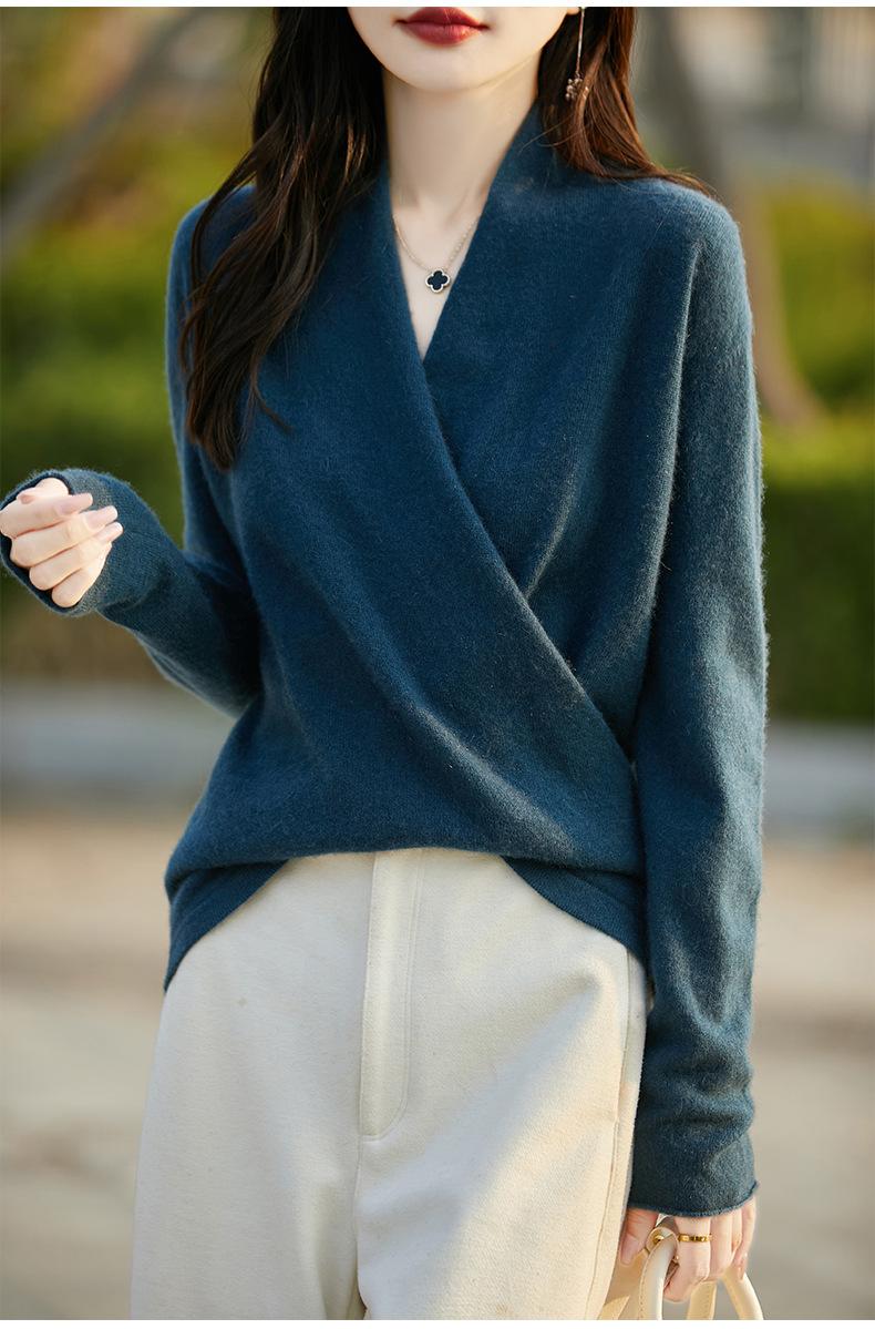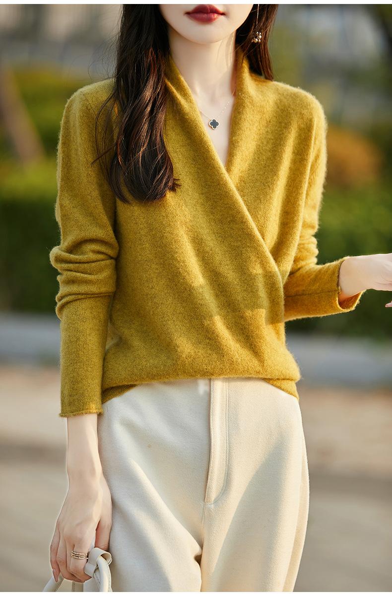 Suéter cárdigan de punto 100% lana pura otoño/invierno 2025 nuevo para mujer corto con cuello en V manga larga suelto cruzado