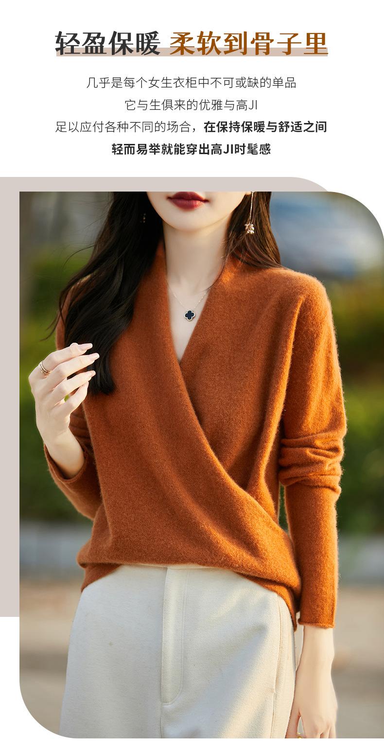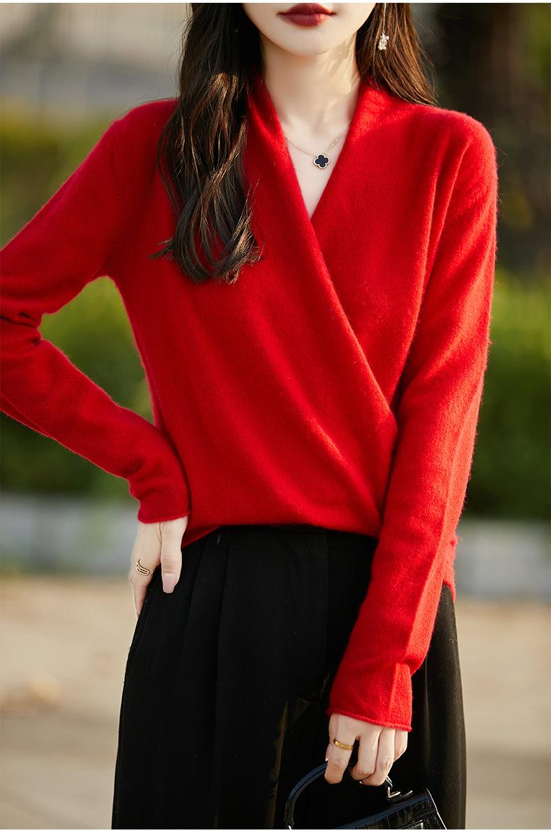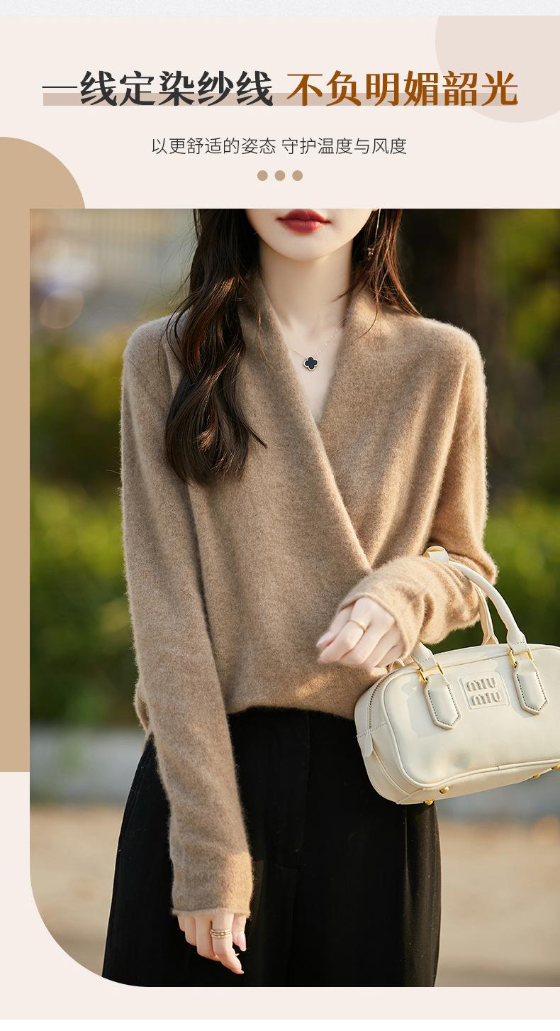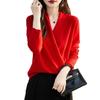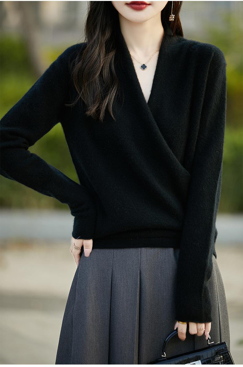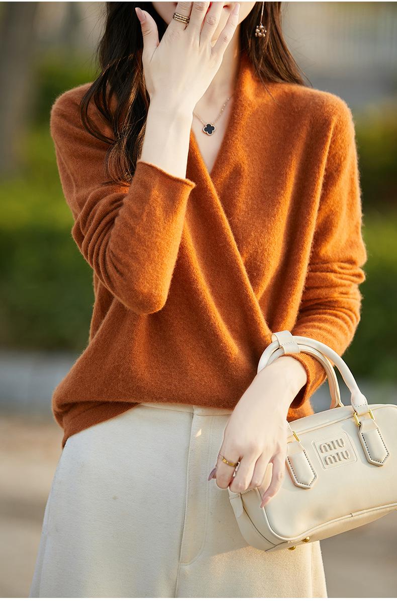 Suéter cárdigan de punto 100% lana pura otoño/invierno 2025 nuevo para mujer corto con cuello en V manga larga suelto cruzado