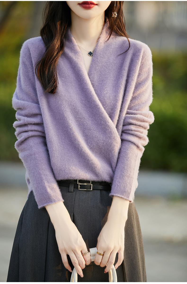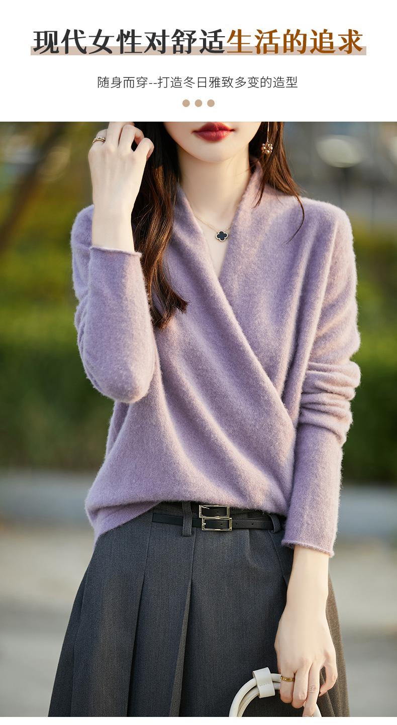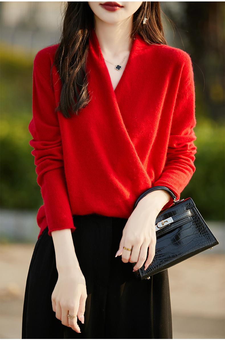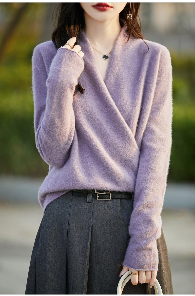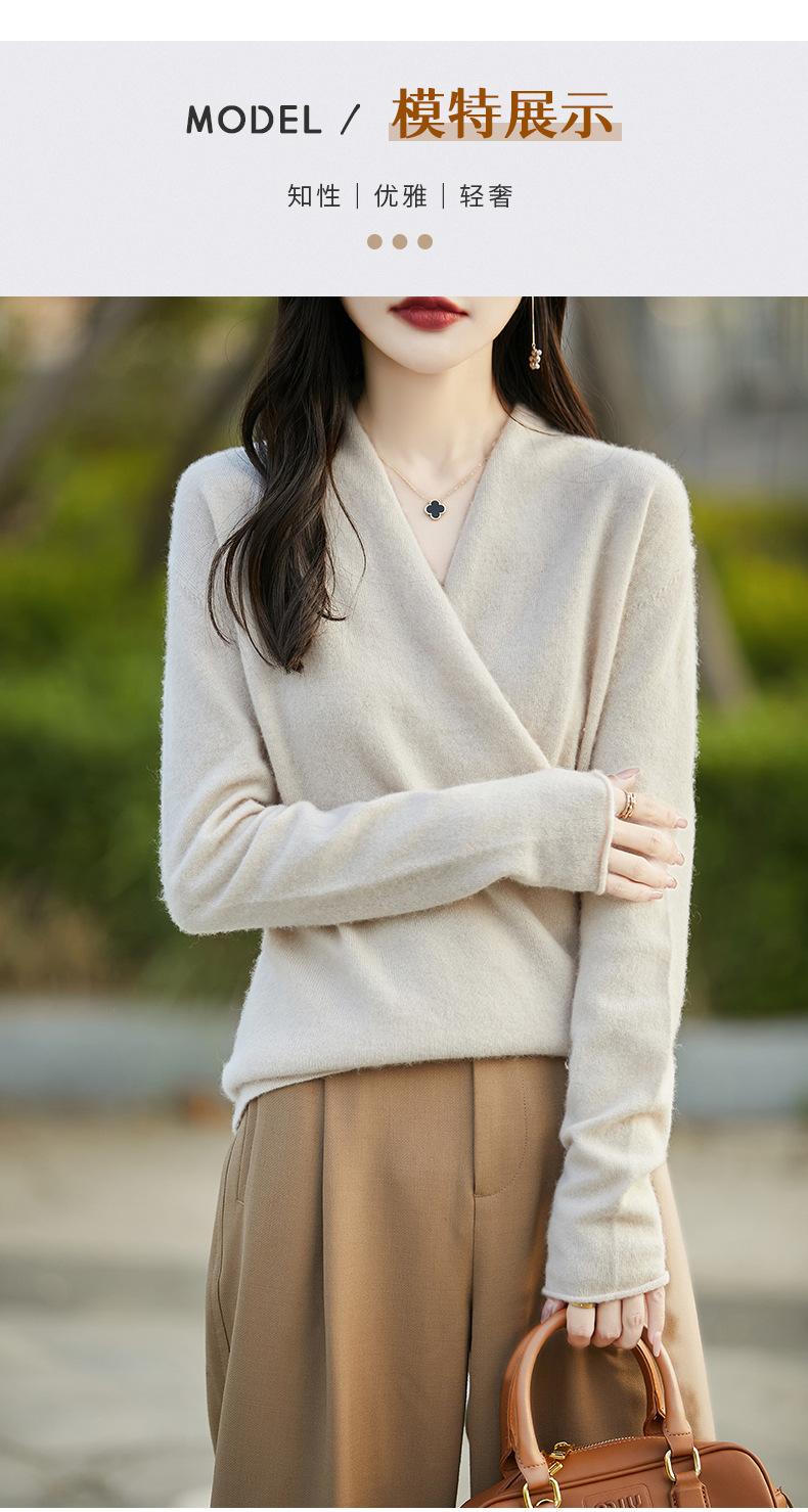 Suéter cárdigan de punto 100% lana pura otoño/invierno 2025 nuevo para mujer corto con cuello en V manga larga suelto cruzado