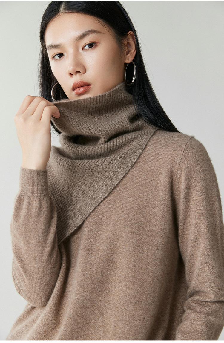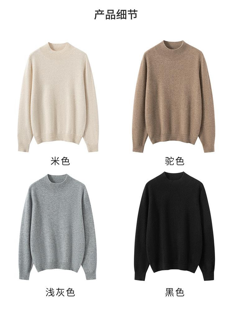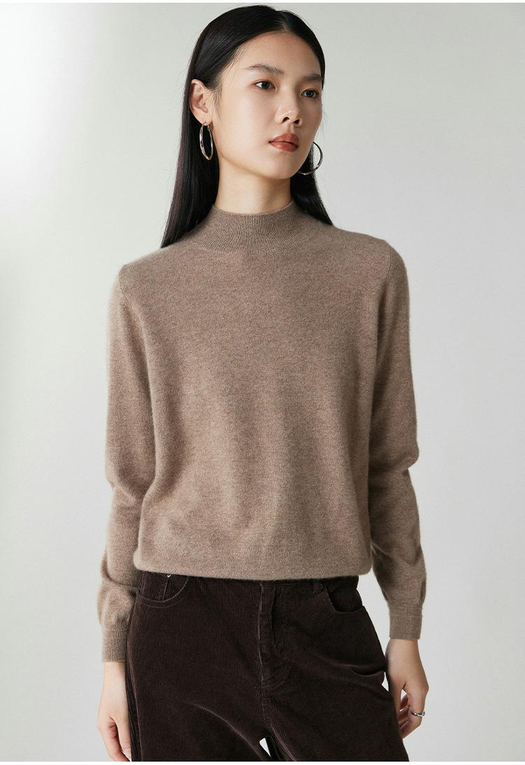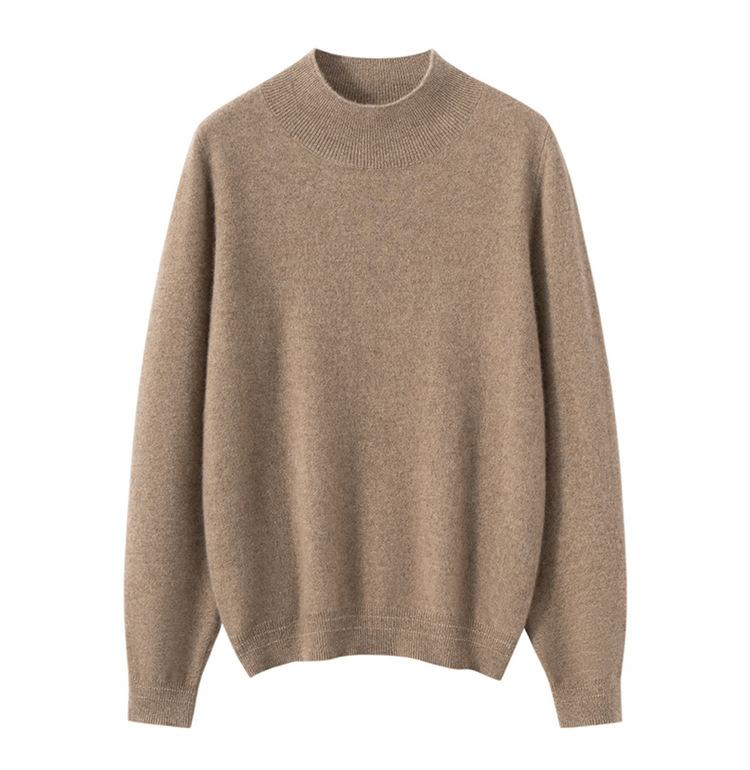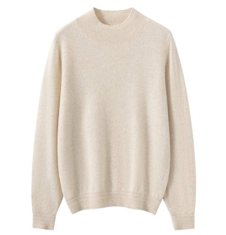 Suéter Nuevo 100% Cachemira para Mujer Cuello Semi-Alto Suelto Cachemira Adelgazante Tejido Suéter Jersey Tejido Capa Base
