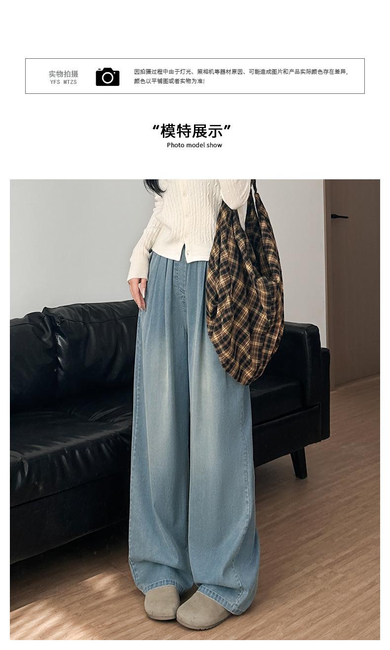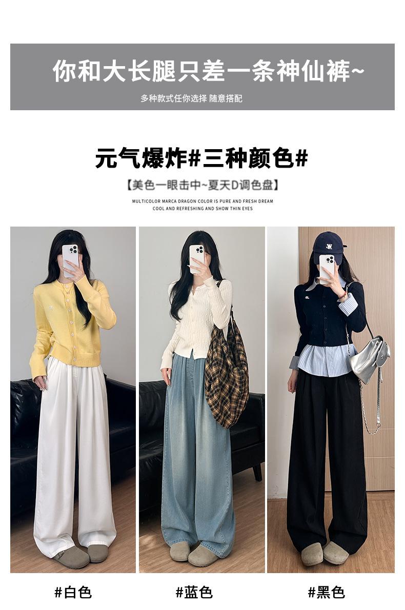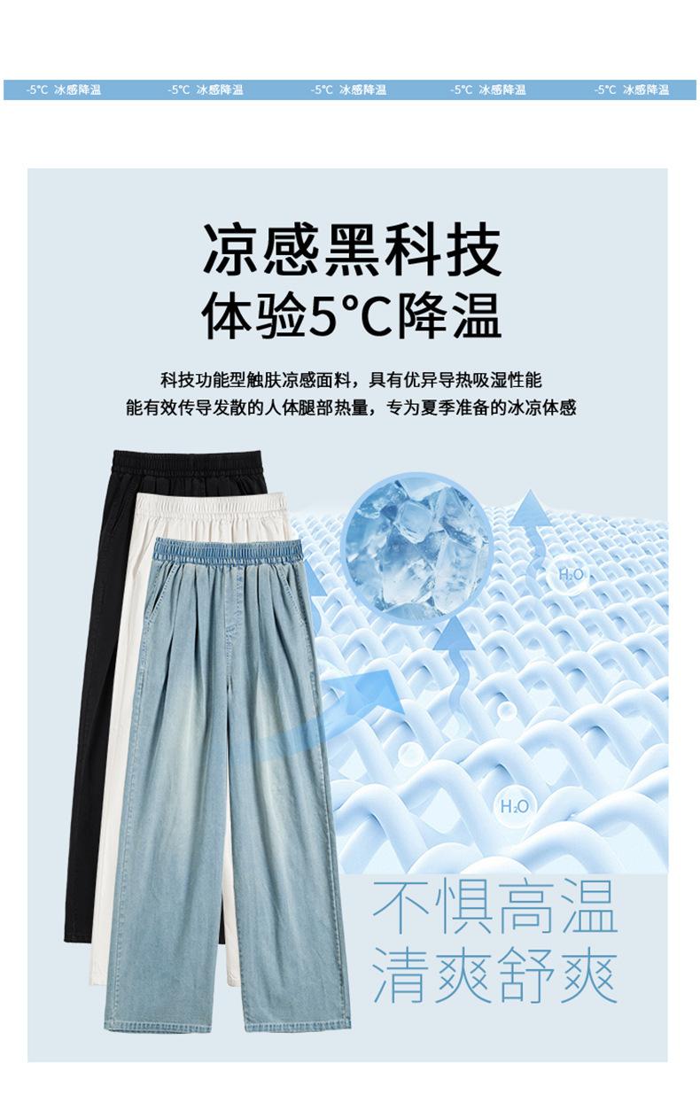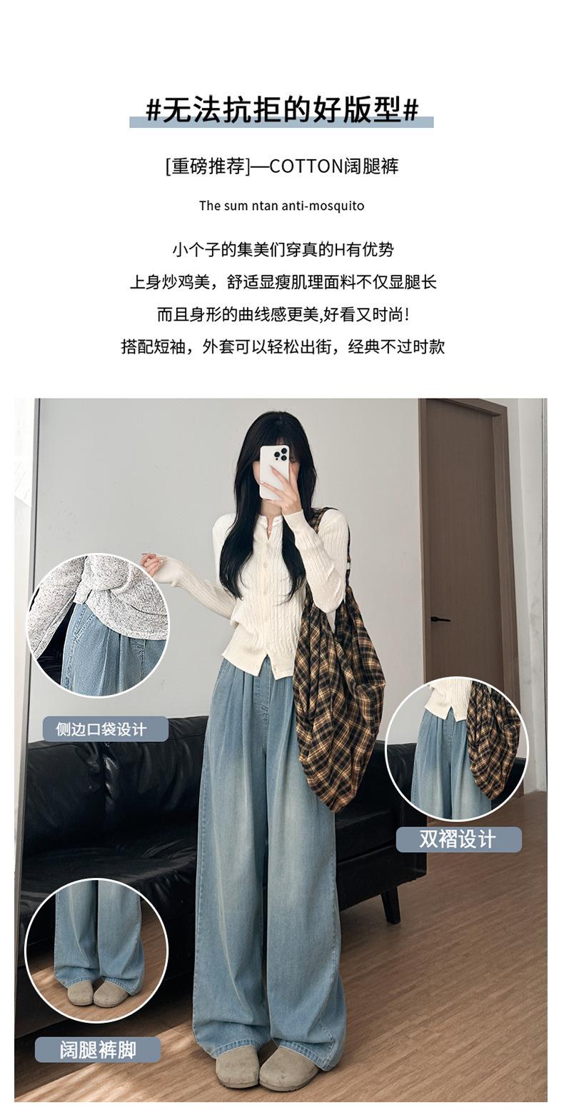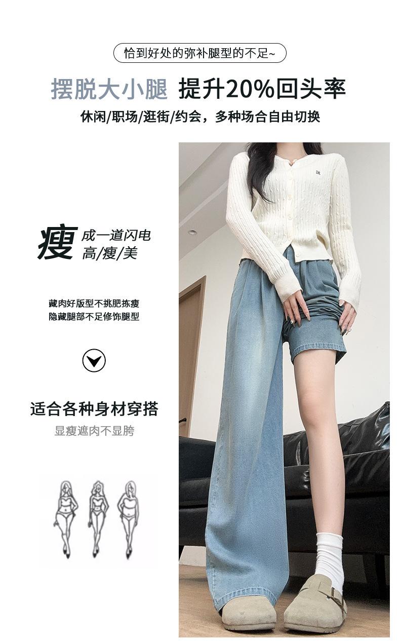 Jeans Retro Tencel Mujer 2025 Nuevo Verano Delgados Drapeados Pierna Recta Sueltos Petite Seda Helada Pantalones Pierna Ancha