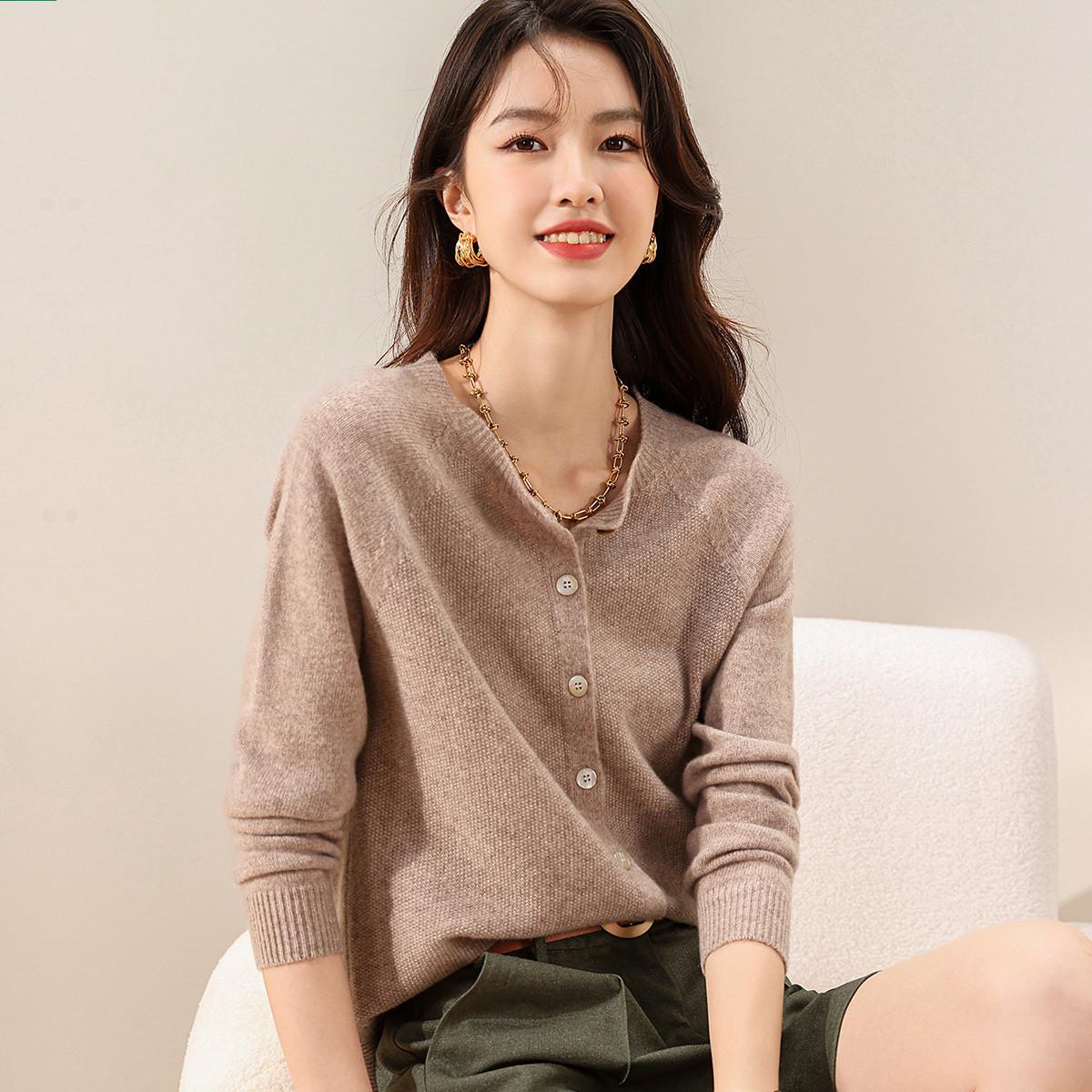 Abrigo de Punto 100% Lana Seamless One para Mujer, Cárdigan Fino con Botones, Suéter para Mujer