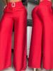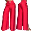 Pantalones acampanados decorativos de metal adelgazantes sueltos de cintura alta y pierna ancha de color sólido de moda para mujer de comercio exterior europeo y americano 2024