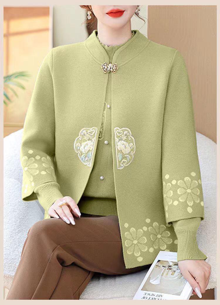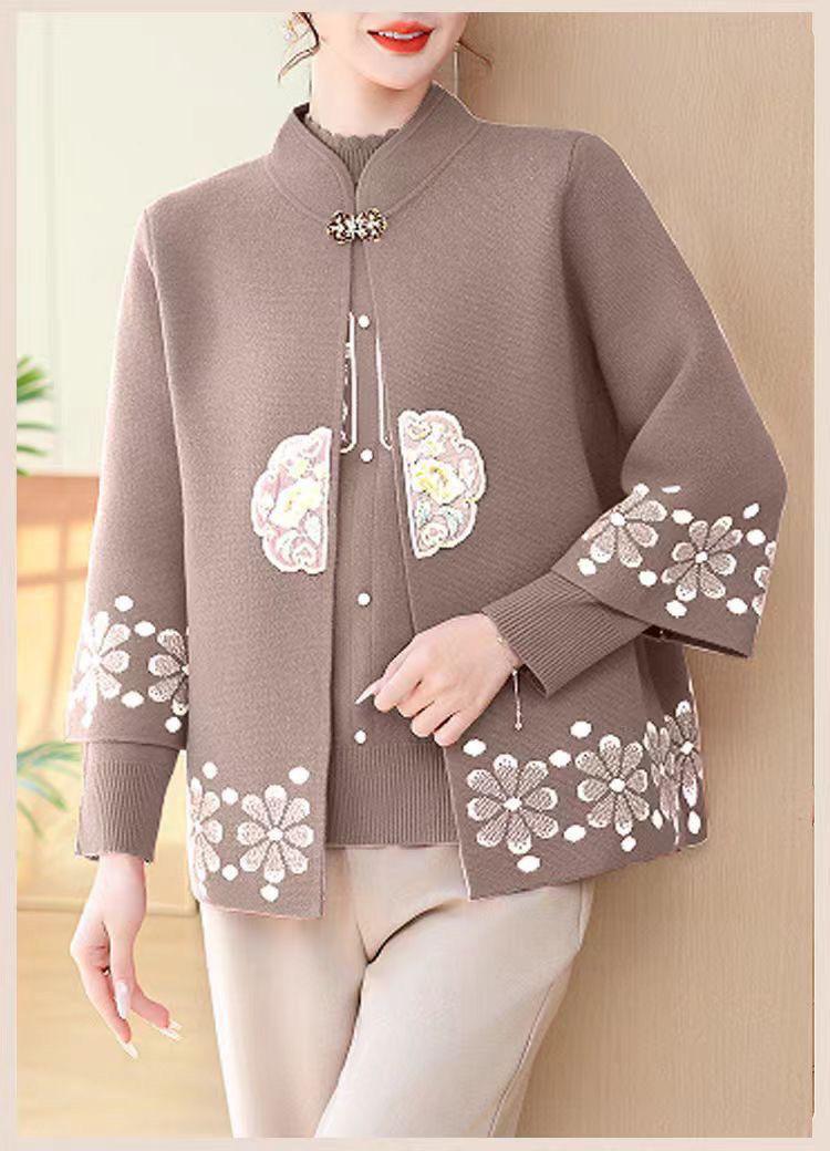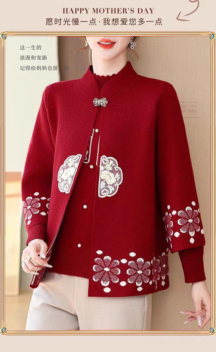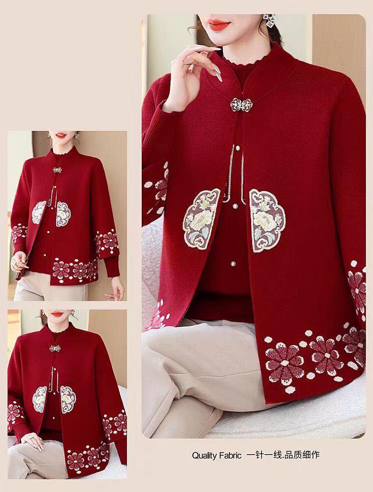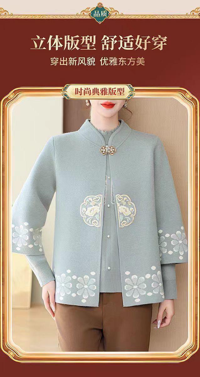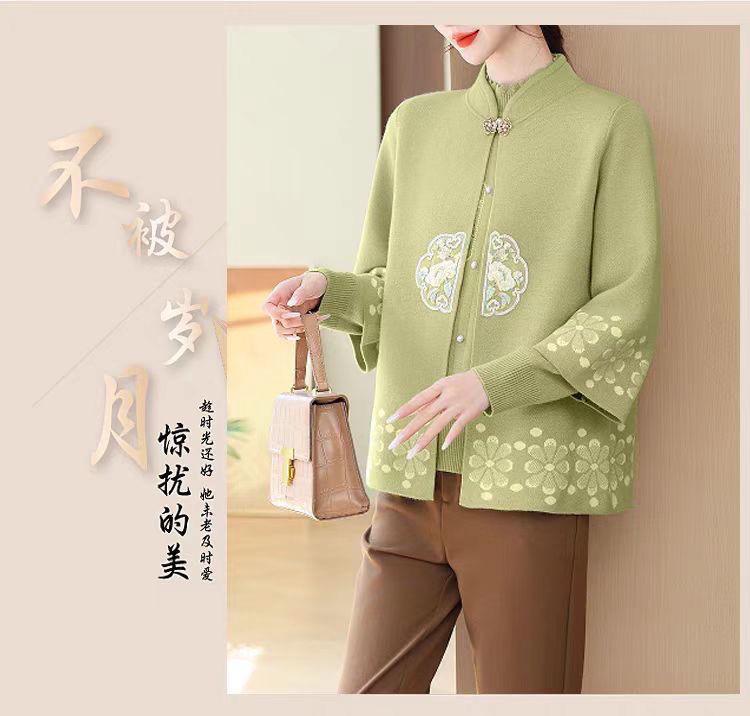 Conjunto de dos piezas estilo chino para mamá 2024 Ropa de otoño Estilo nacional Suéter de punto Cárdigan Abrigo Moda otoño/invierno para mediana edad y ancianos