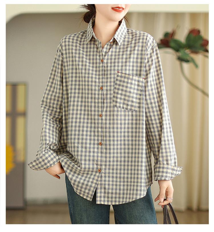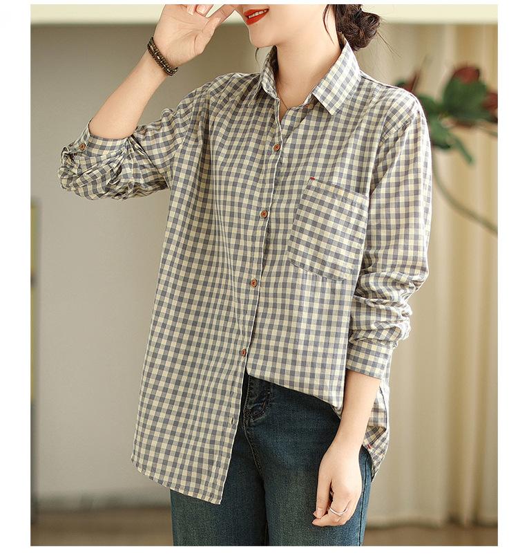 Nueva Camisa Casual de Cuadros Otoño 2025 de Manga Larga para Mujer Blusa Casual Cómoda
