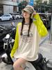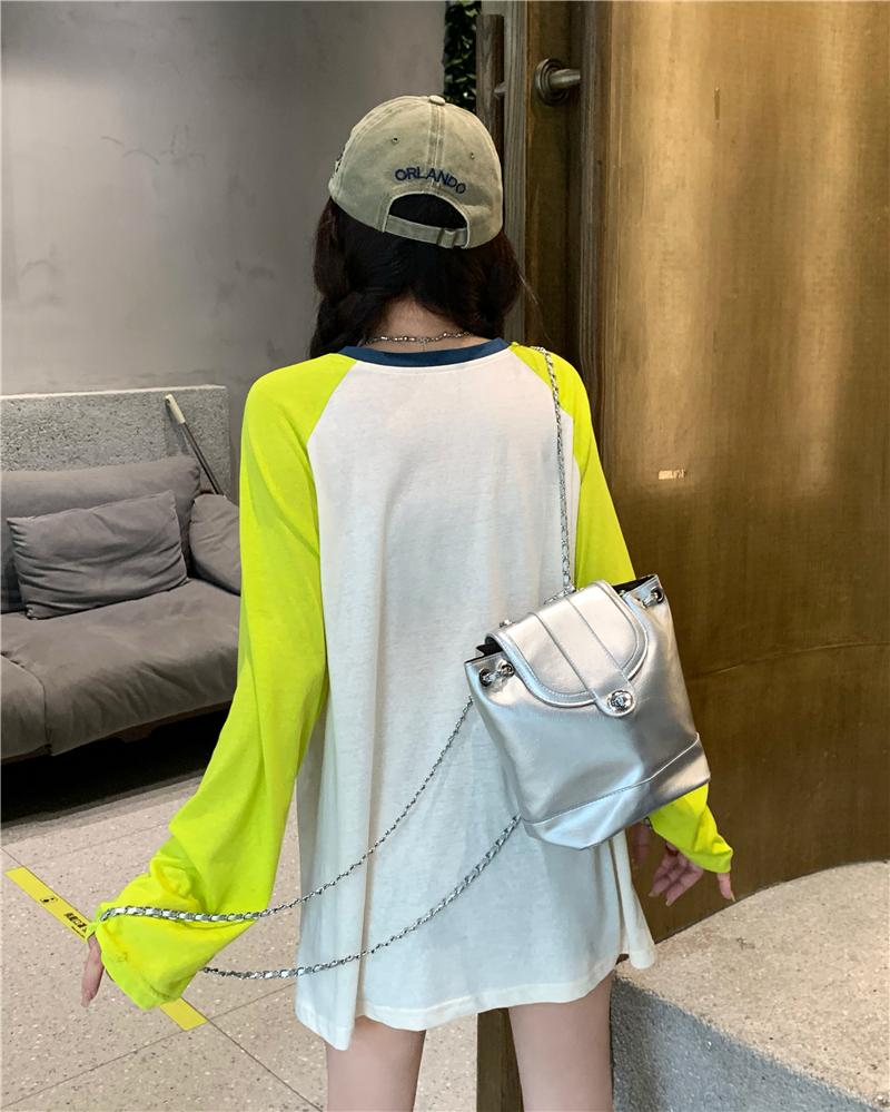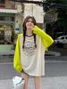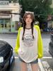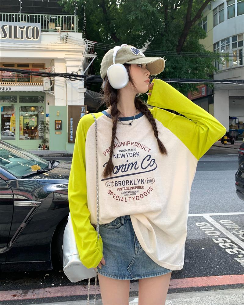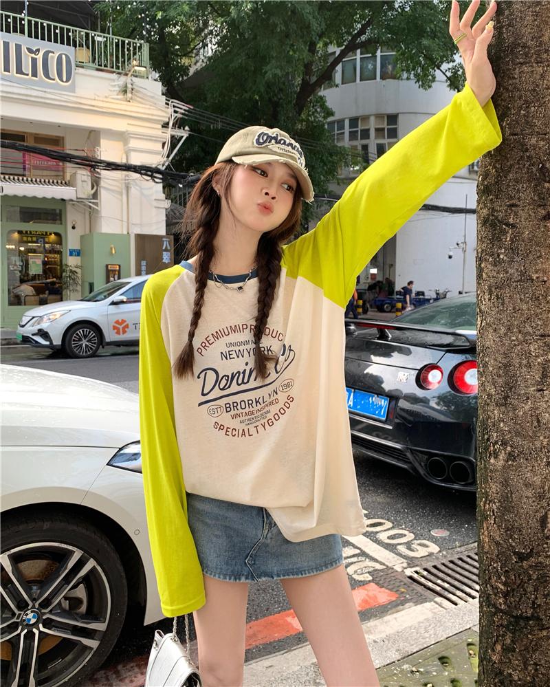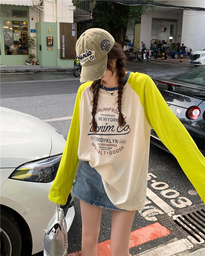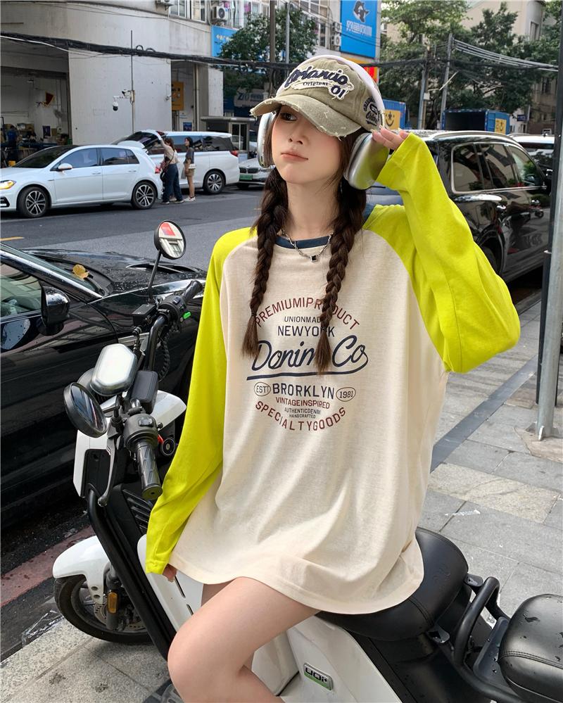 Playera de Manga Raglán Contrastante Estilo Coreano para Mujer, Blusa Holgada de Verano Estilo Lazy con Estampado de Letras, Top de Alta Gama