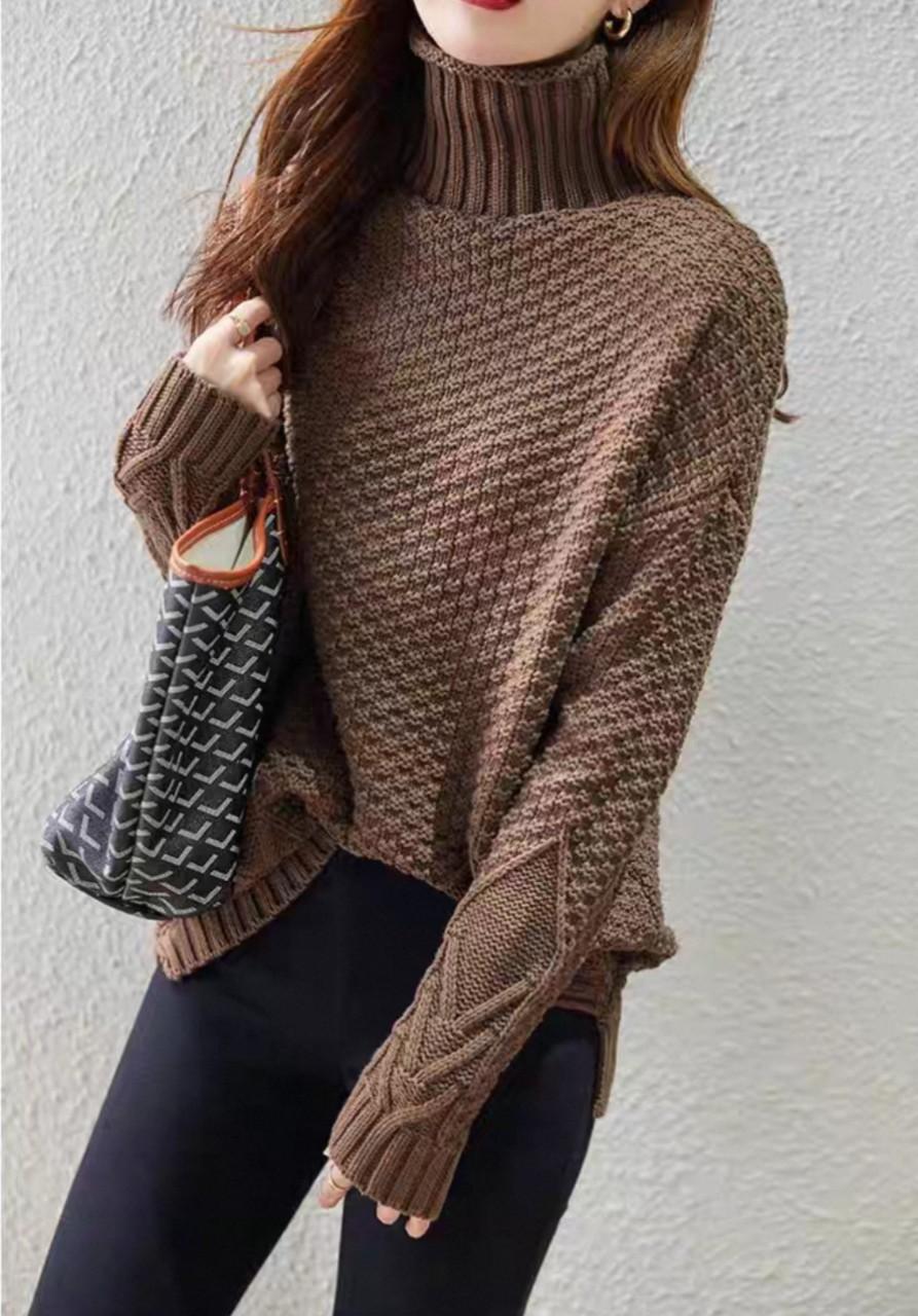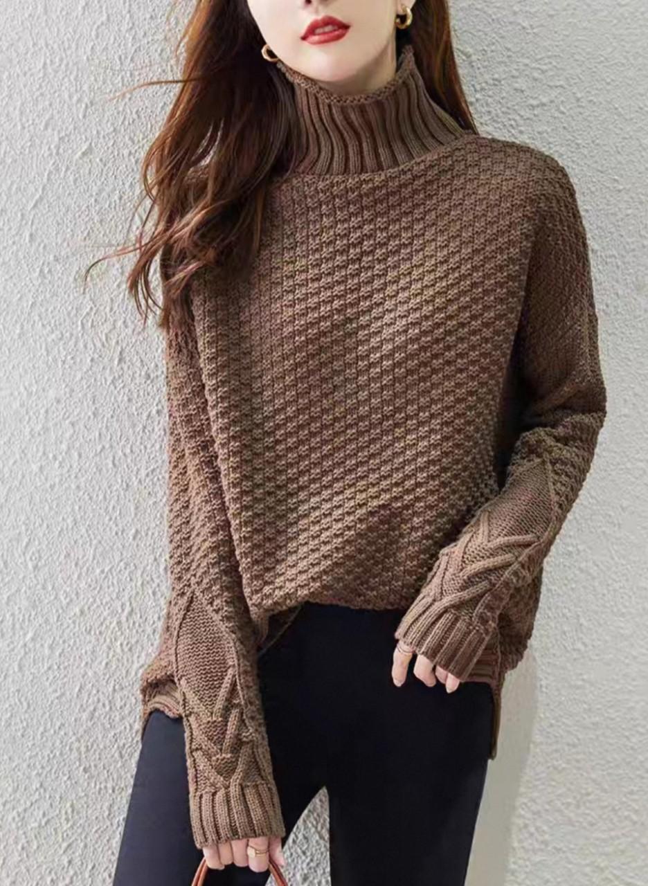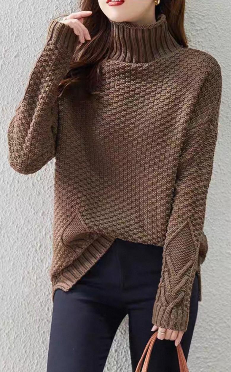 Suéter de cuello alto para mujer 2022 para otoño e invierno Nuevo estilo Retro Suéter holgado Versátil Jersey de manga larga Tejido Camiseta básica para mujer