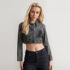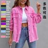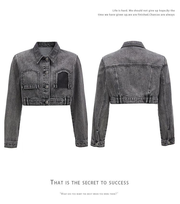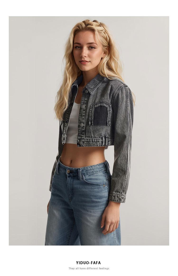 Chaqueta de mezclilla corta retro transfronteriza, elegante chaqueta holgada para mujer, chaqueta de mezclilla para principios de otoño, mangas largas casual de nicho europeo y americano